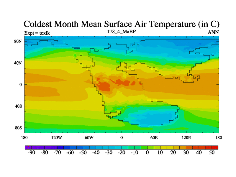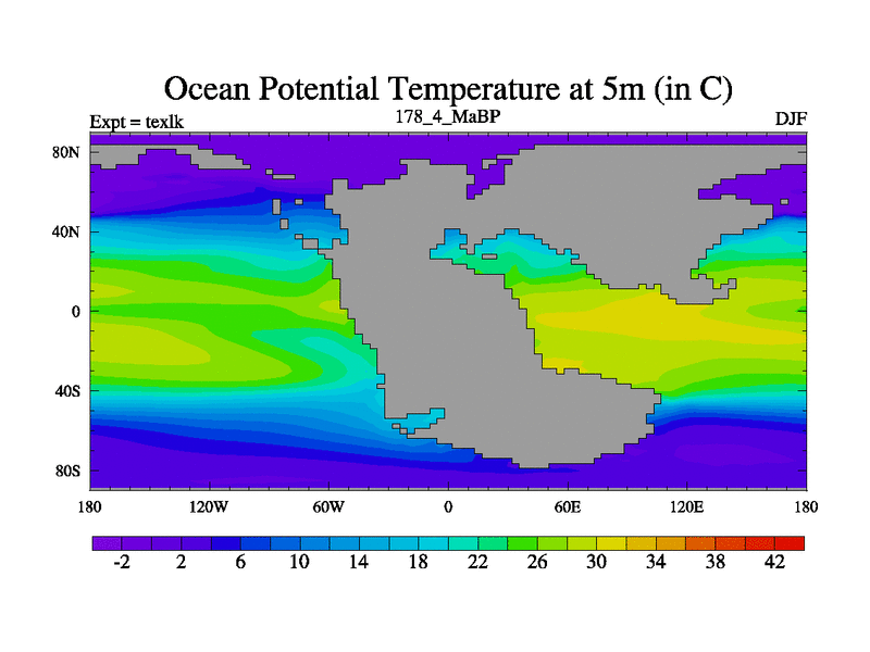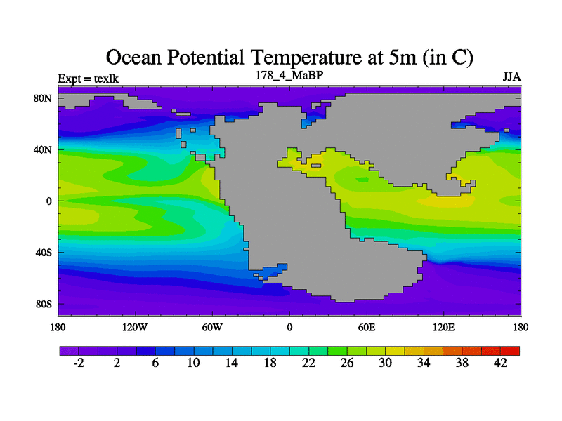 This is the 178.4 Ma simulation using the Scotese palaeogeographies. High output extension of the 5000 year spinup.