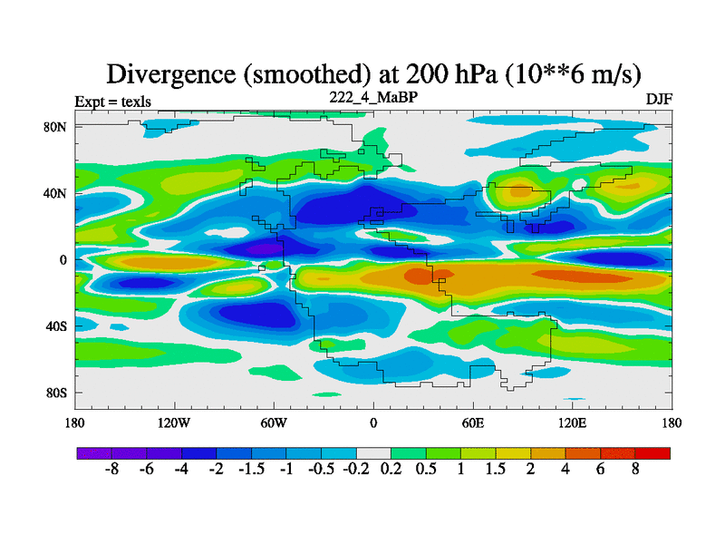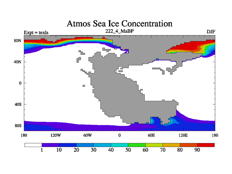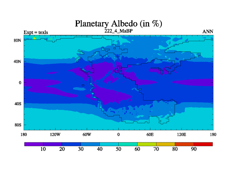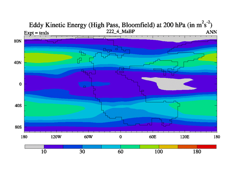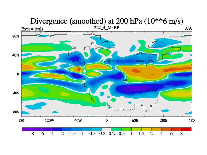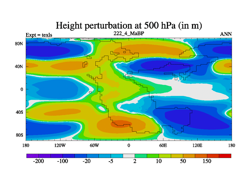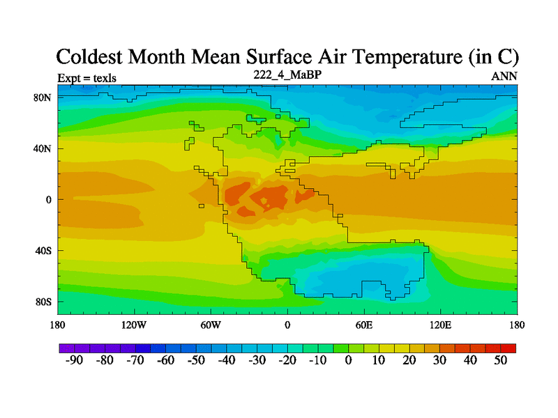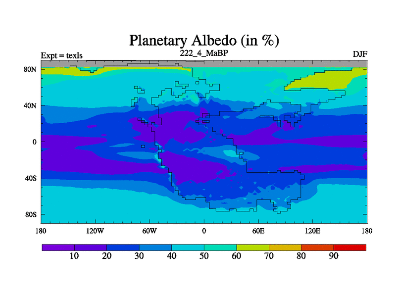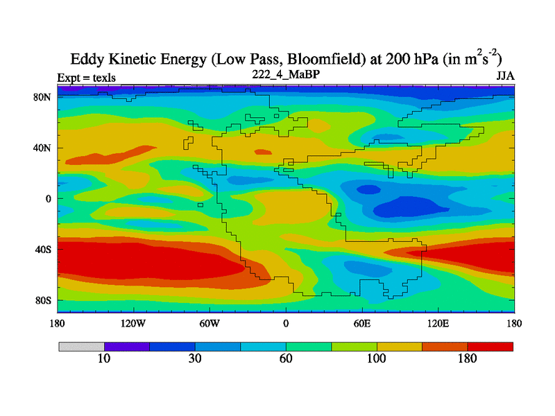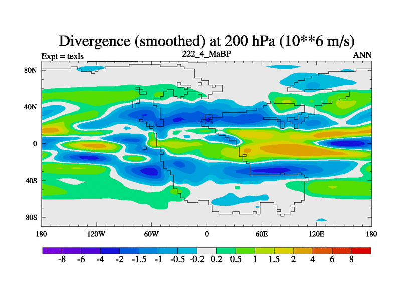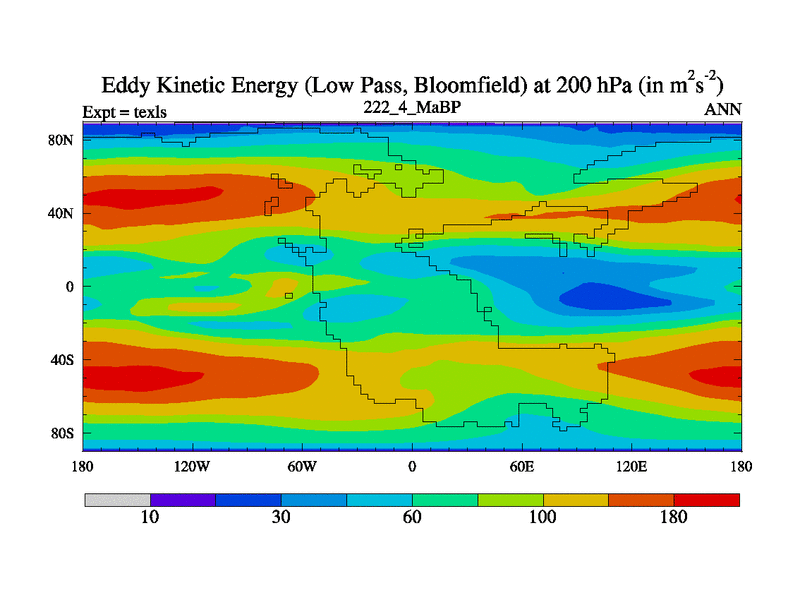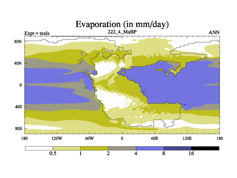 This is the 222.4 Ma simulation using the Scotese palaeogeographies. High output extension of the 5000 year spinup.