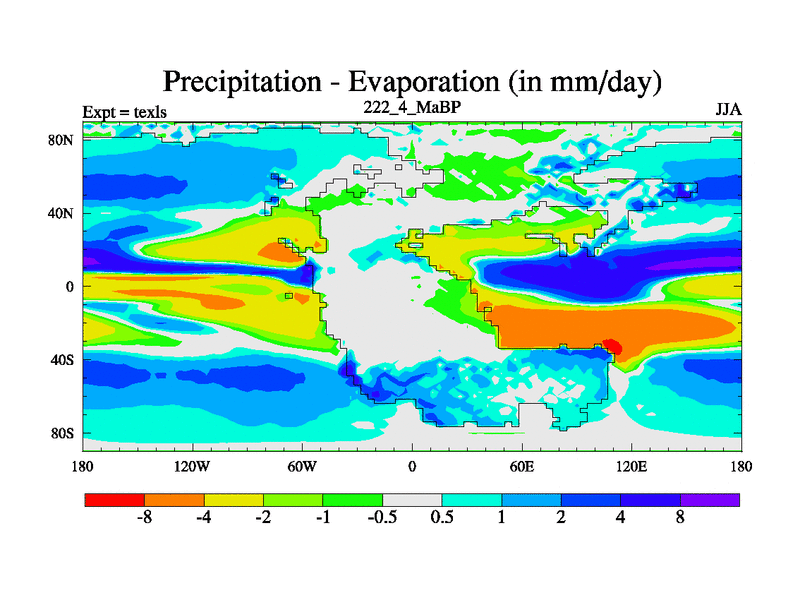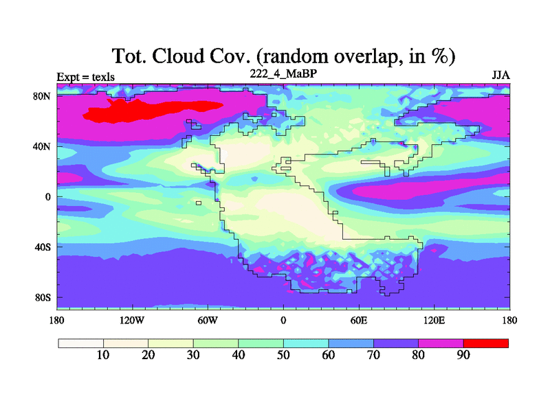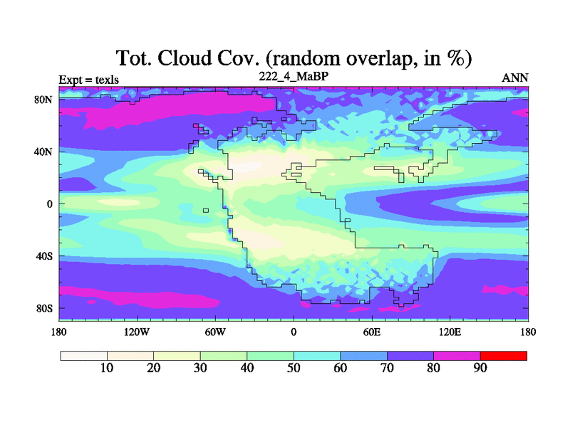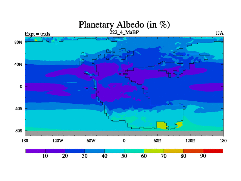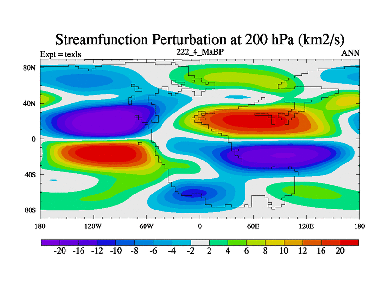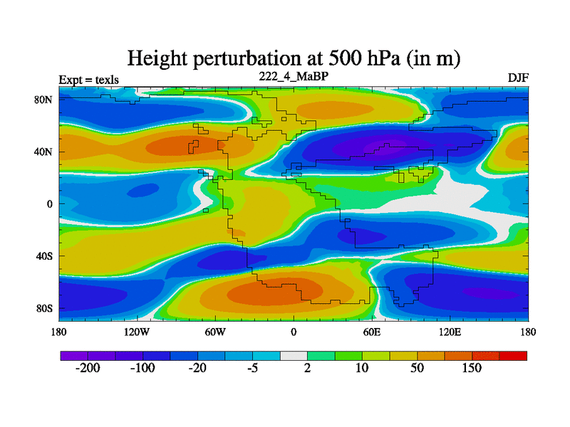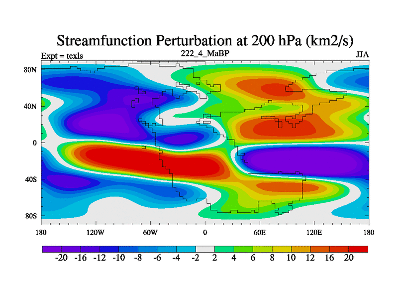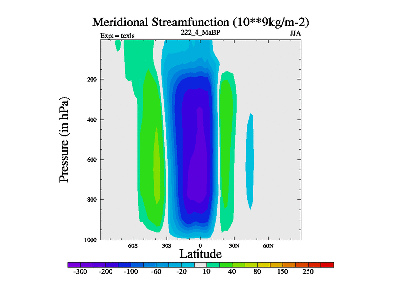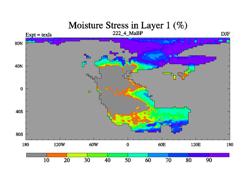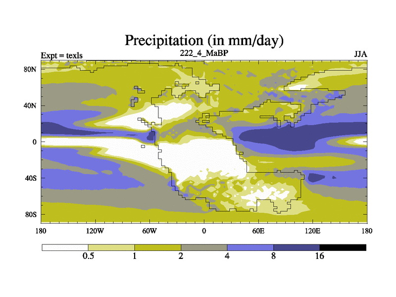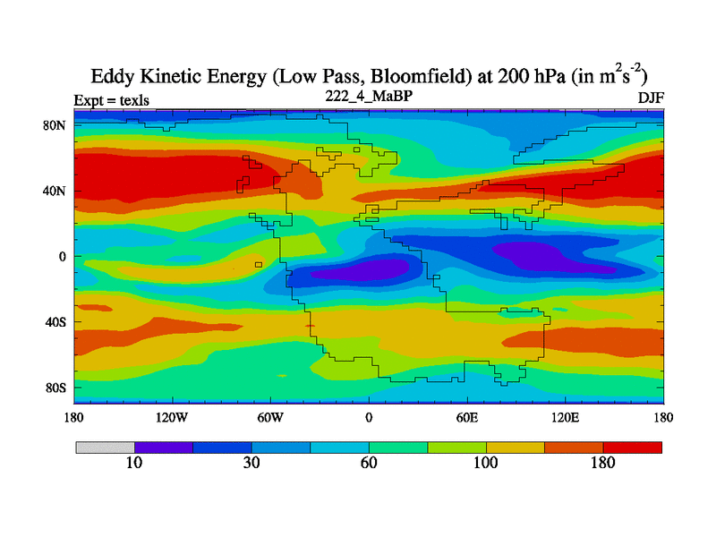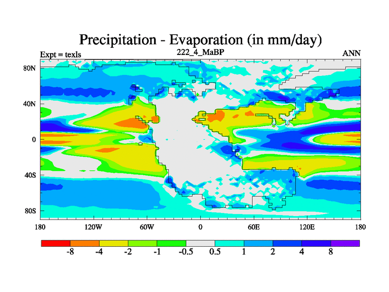 This is the 222.4 Ma simulation using the Scotese palaeogeographies. High output extension of the 5000 year spinup.