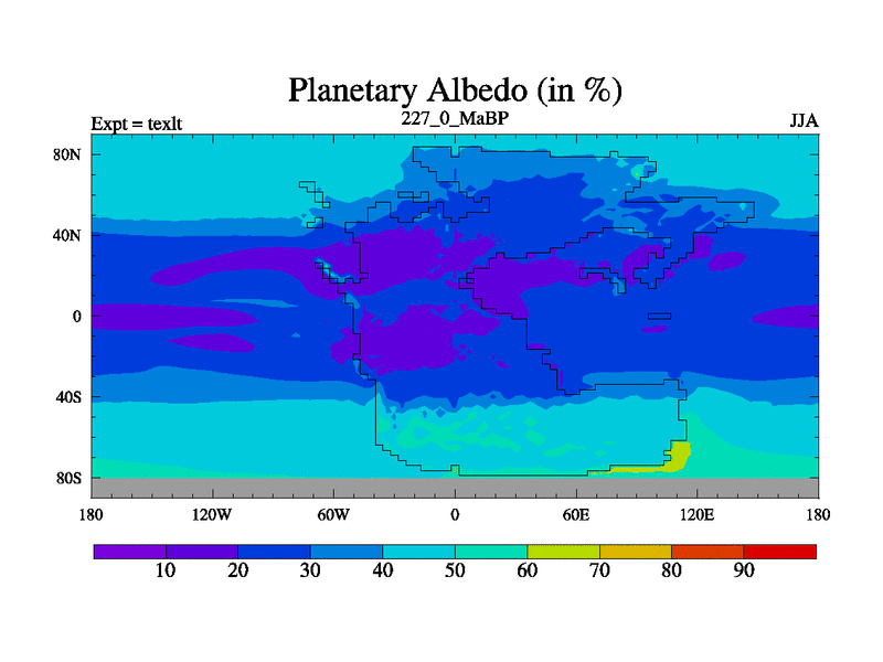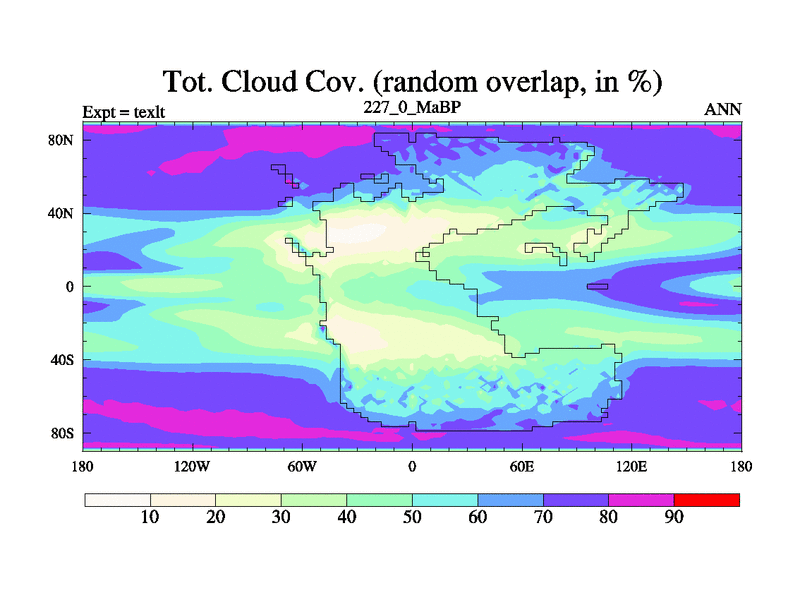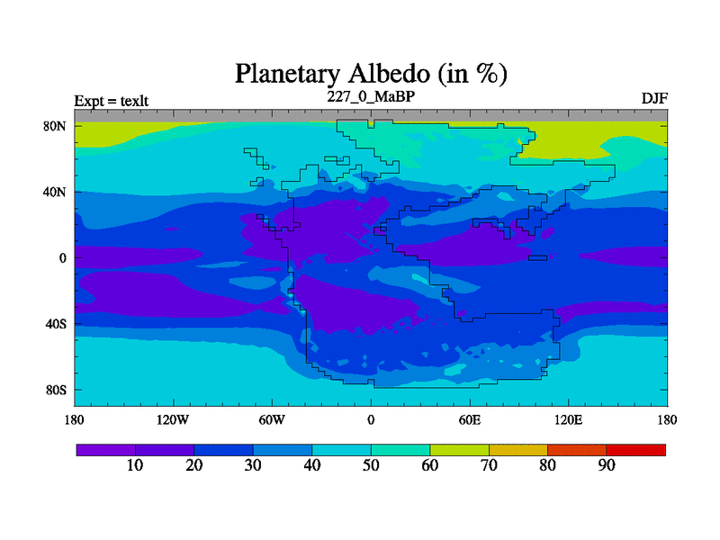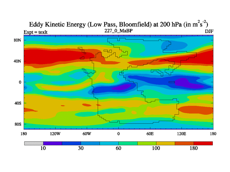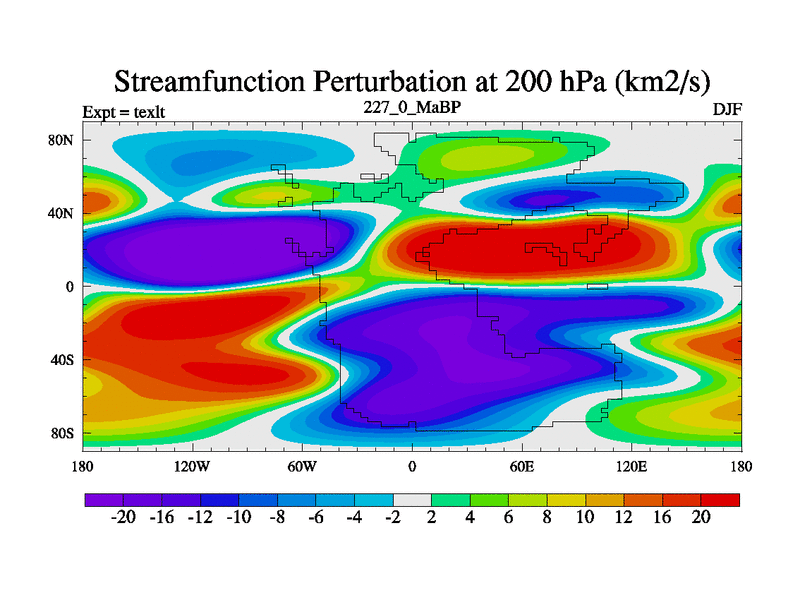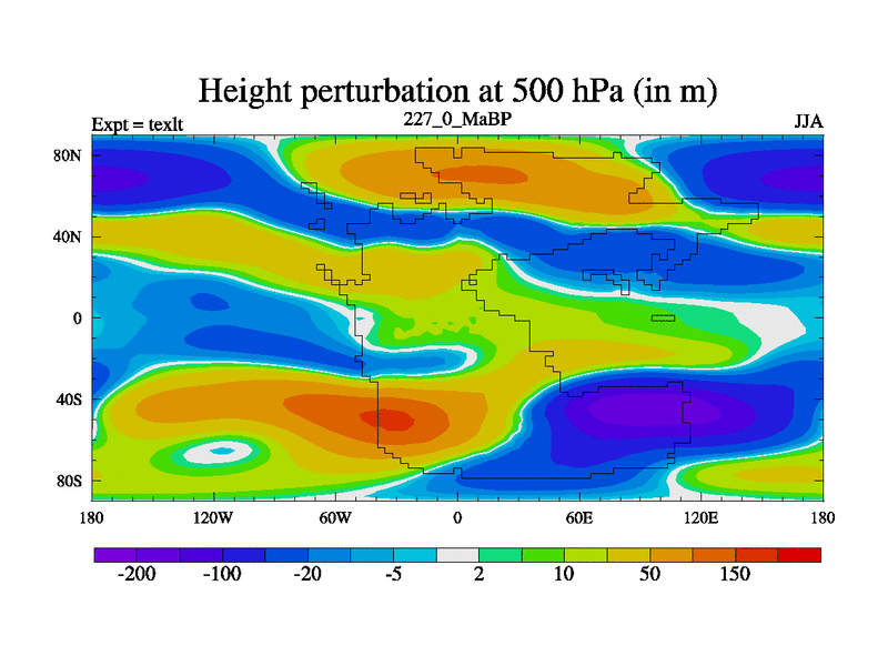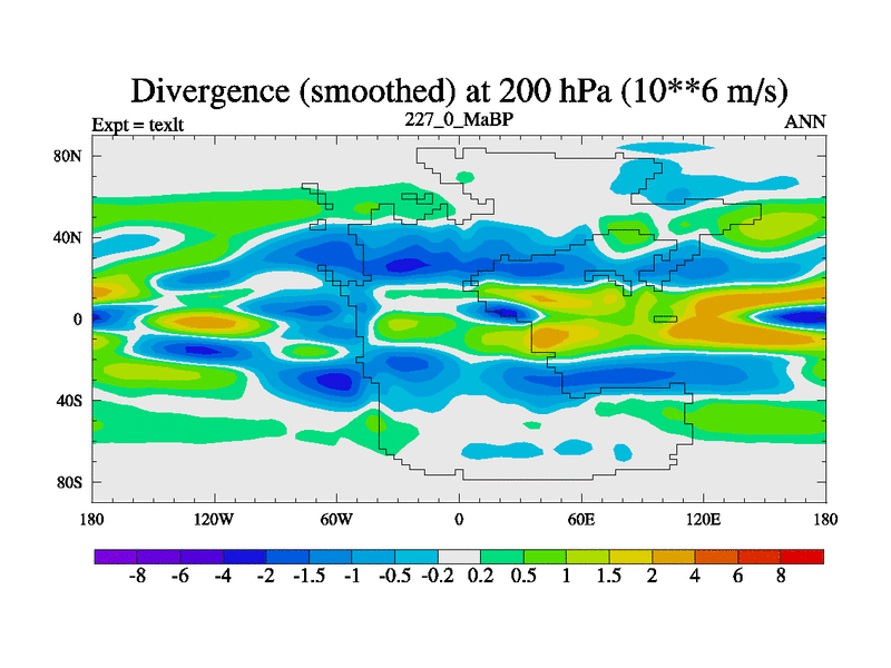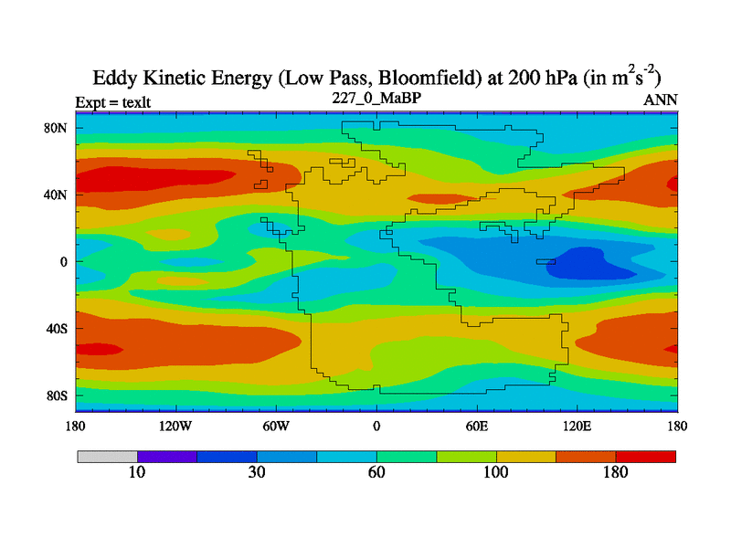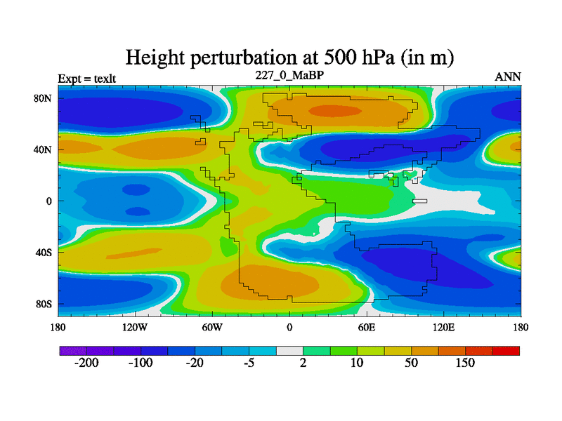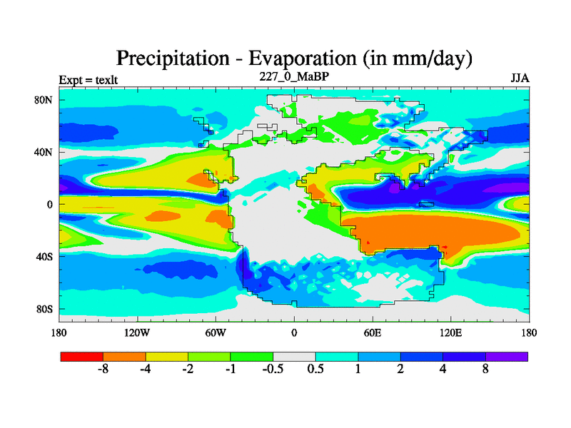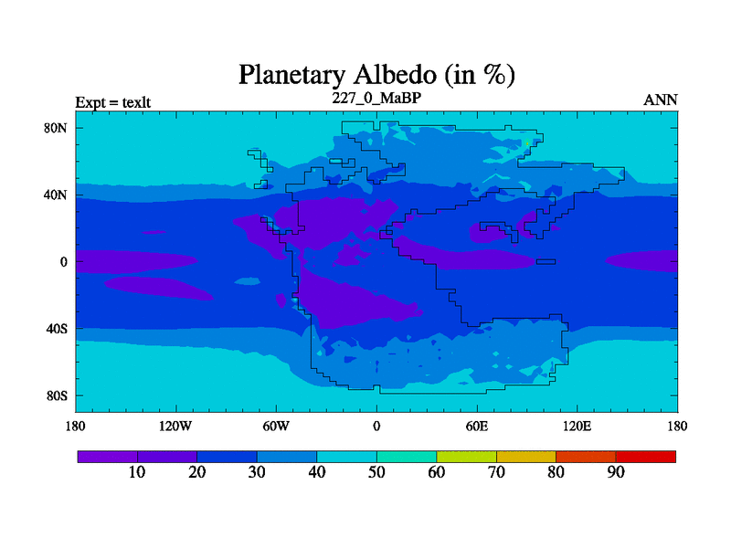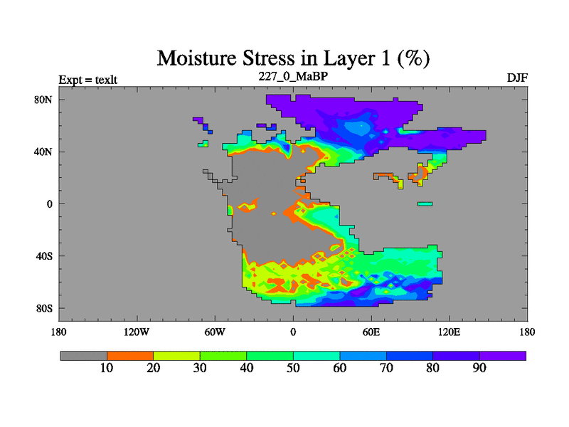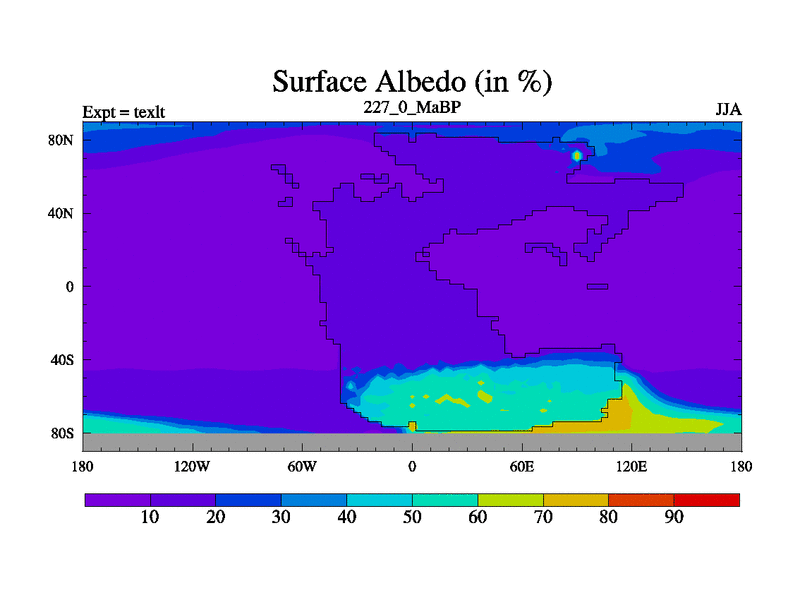This is the 227.0 Ma simulation using the Scotese palaeogeographies. High output extension of the 5000 year spinup.