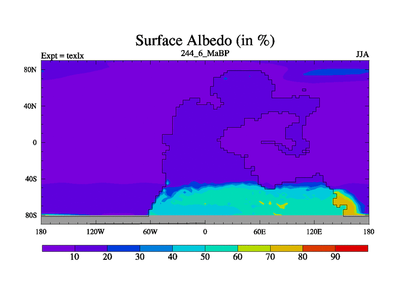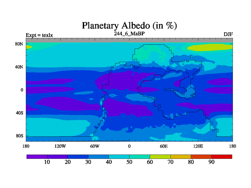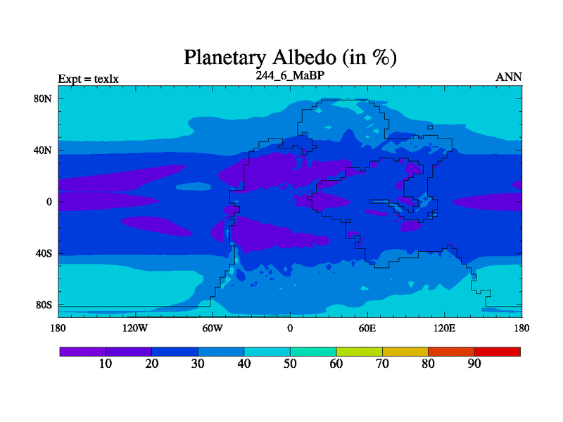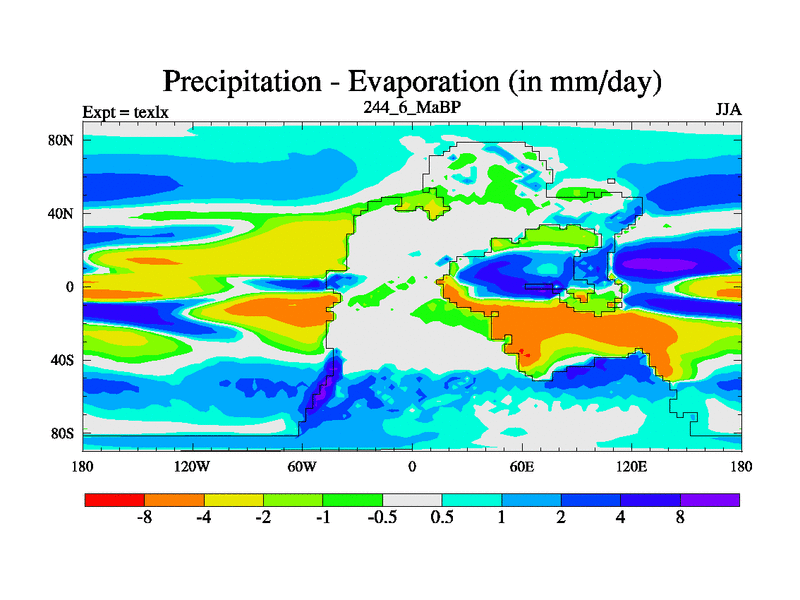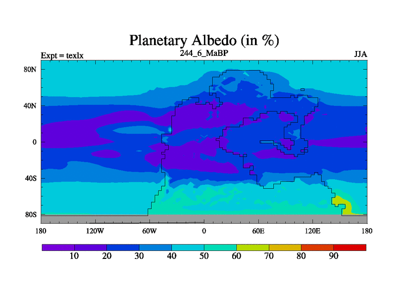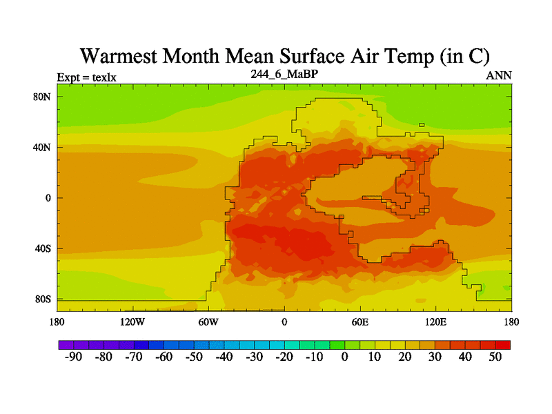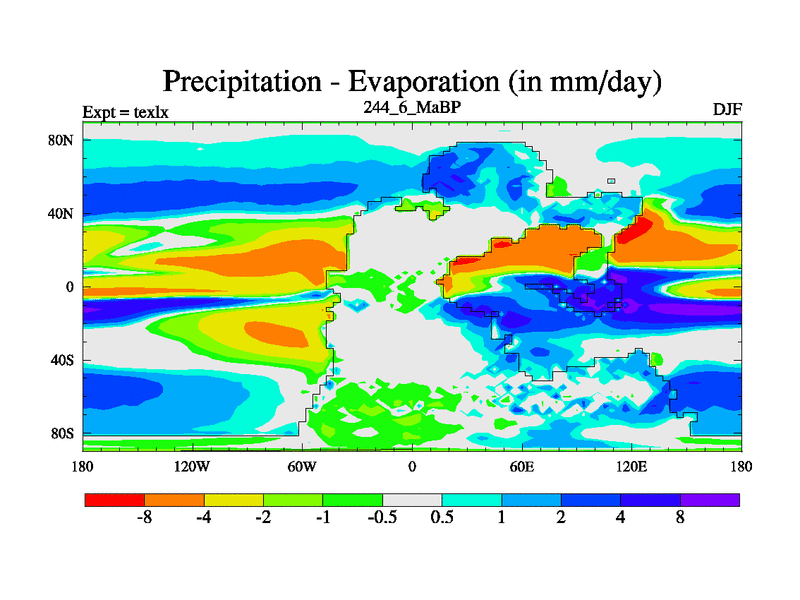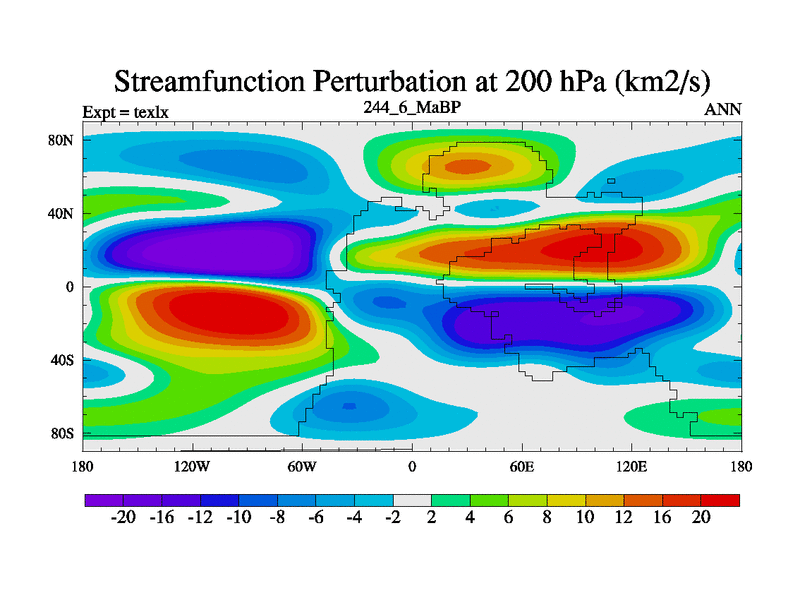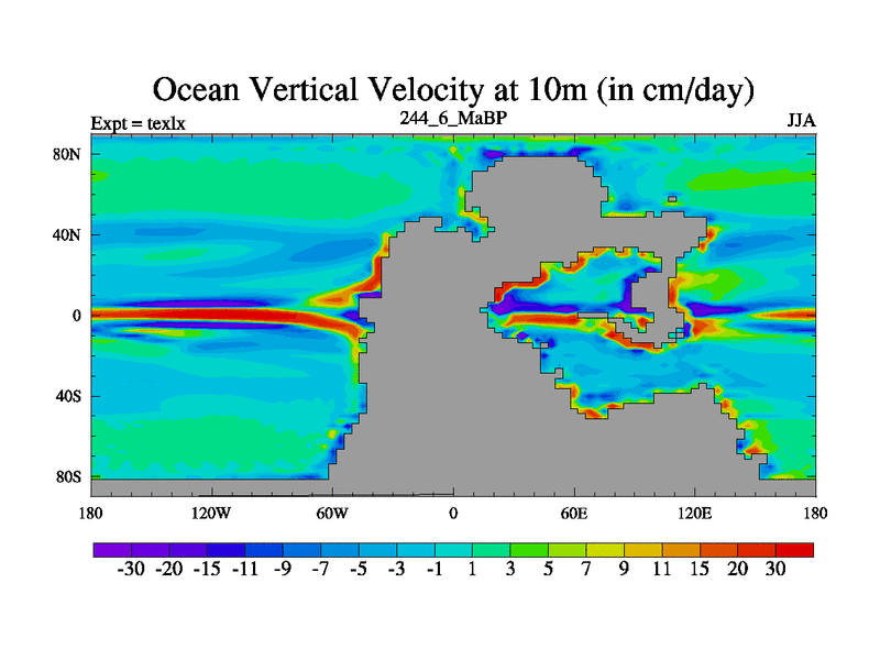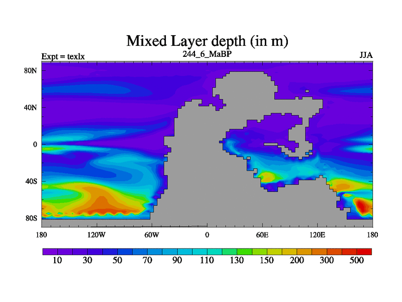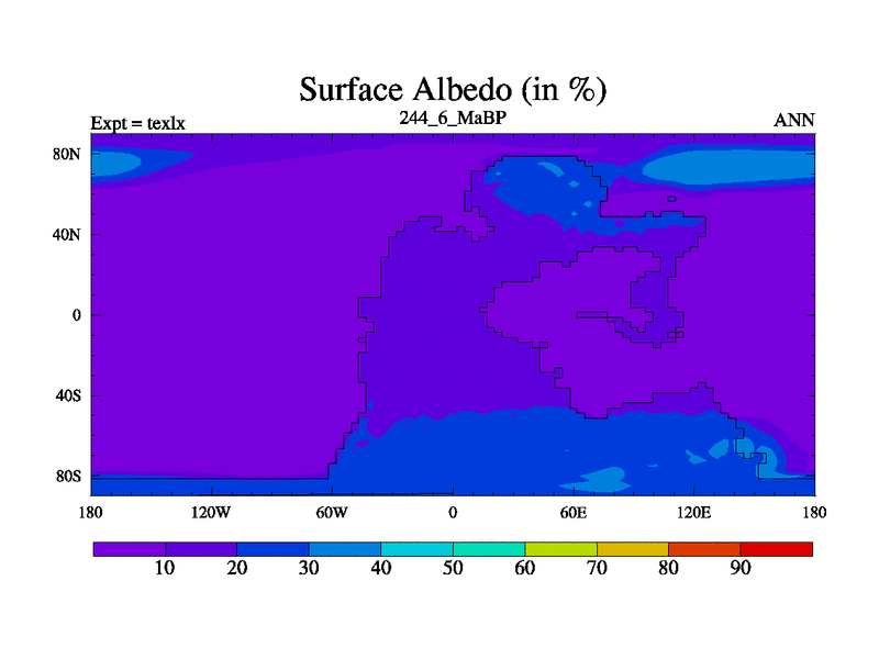This is the 244.6 Ma simulation using the Scotese palaeogeographies. High output extension of the 5000 year spinup.