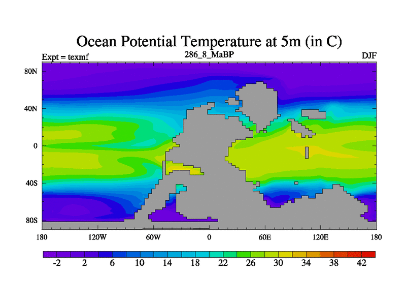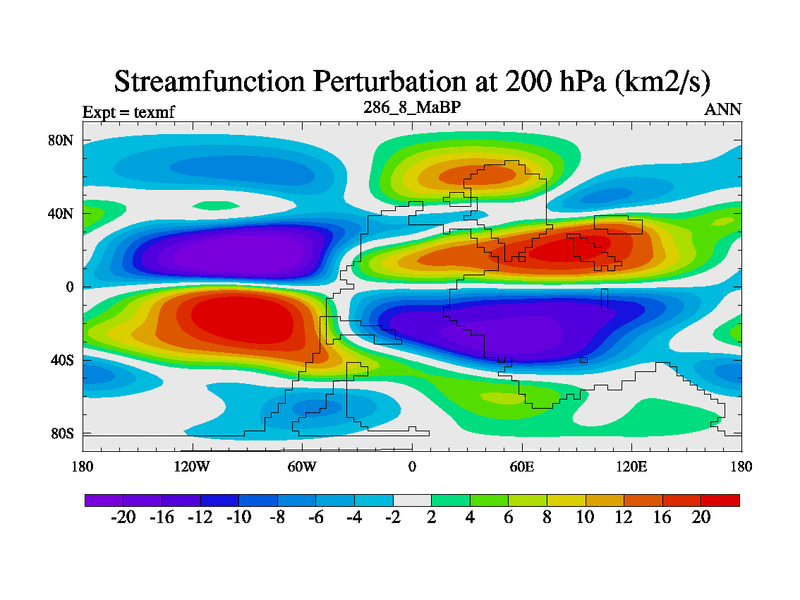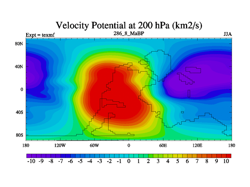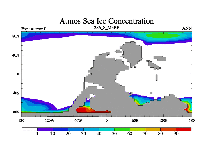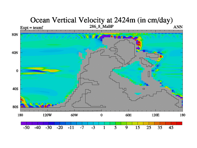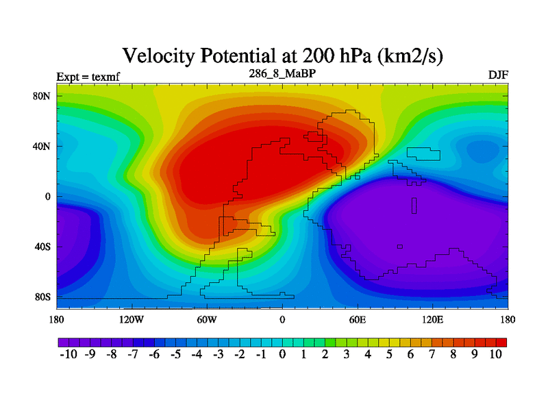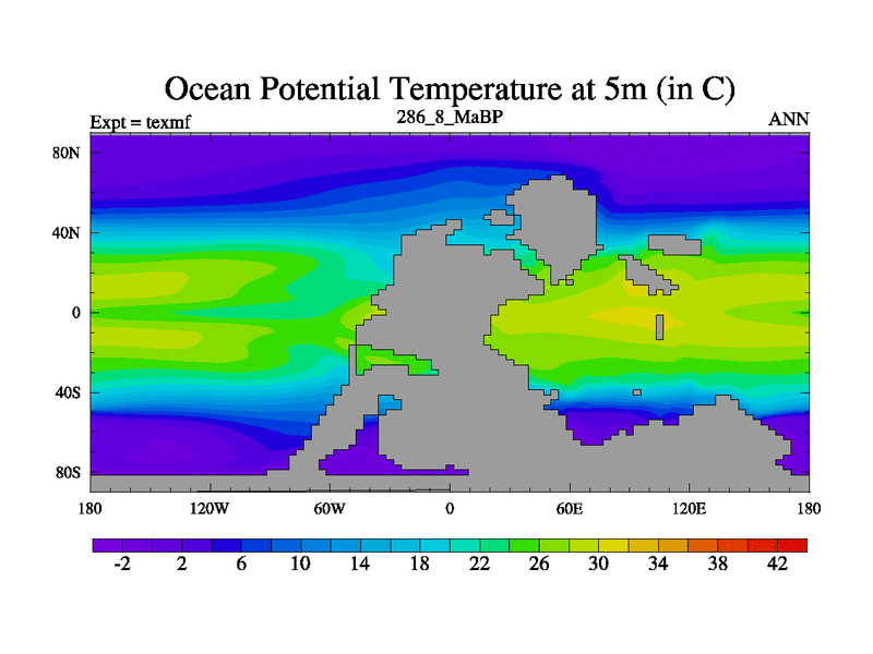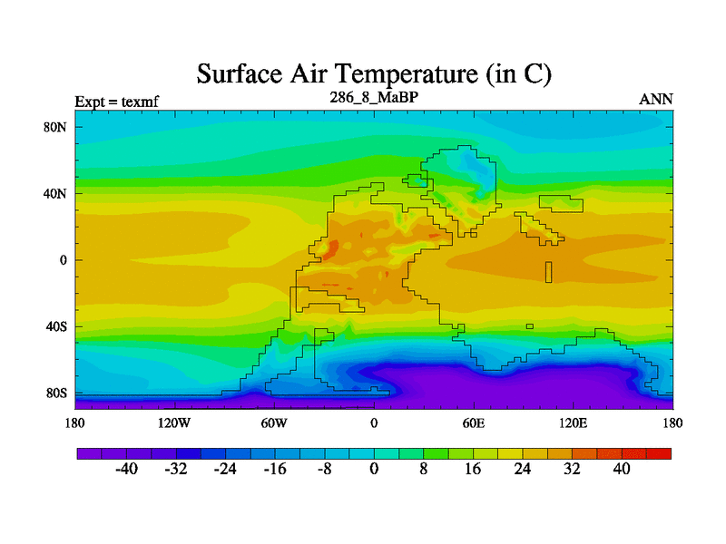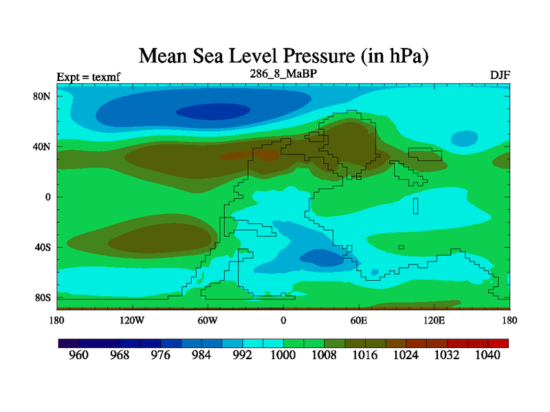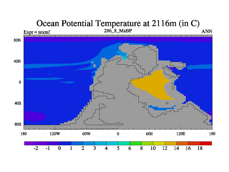 This is the 286.8 Ma simulation using the Scotese palaeogeographies. High output extension of the 5000 year spinup.