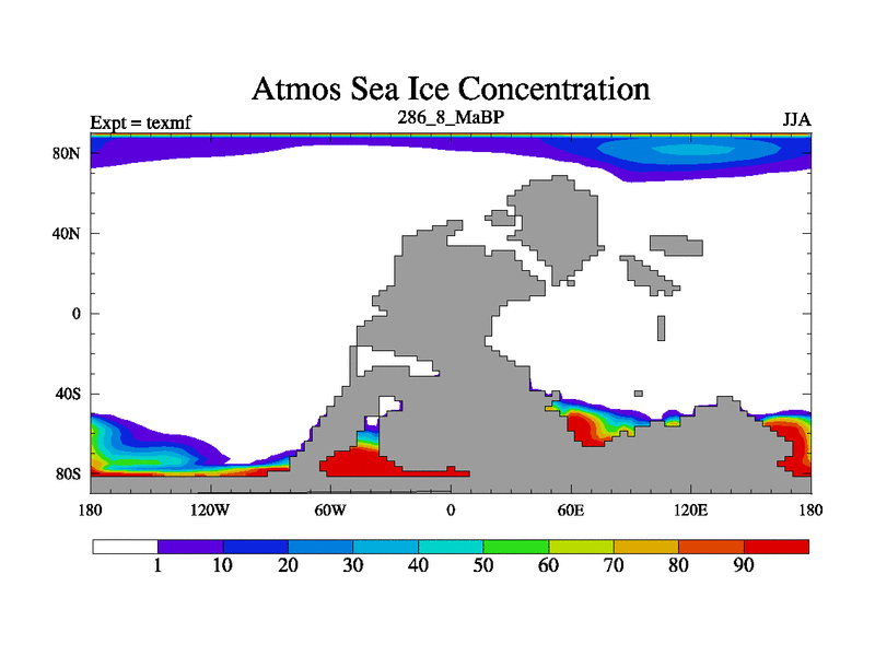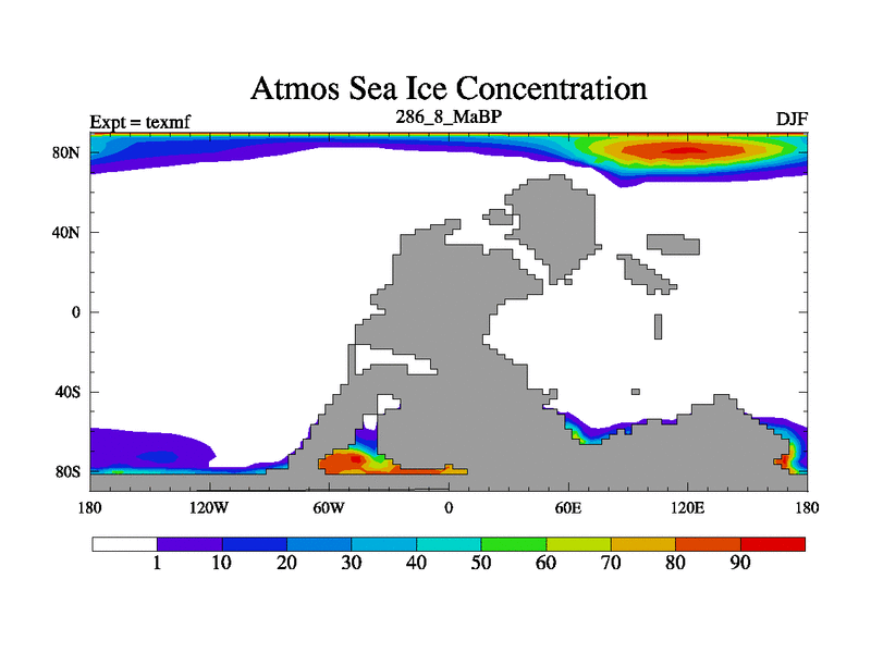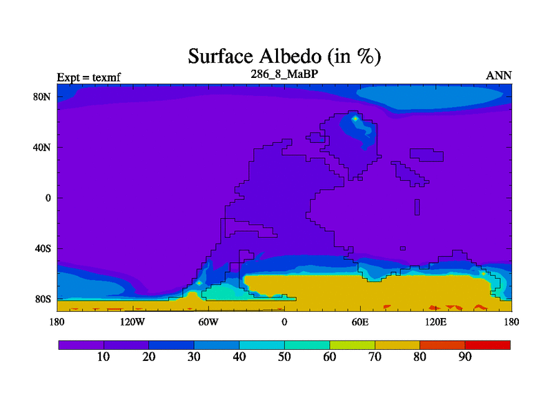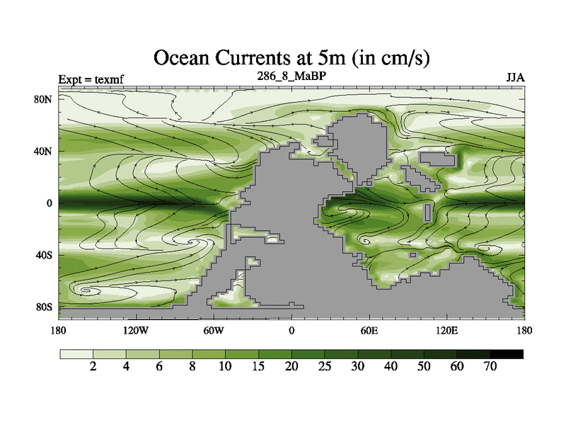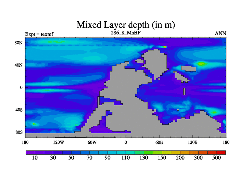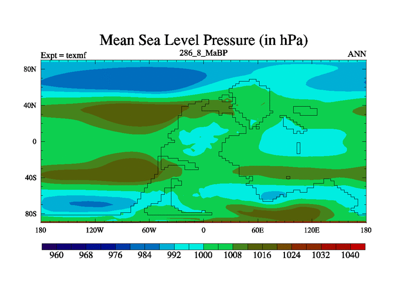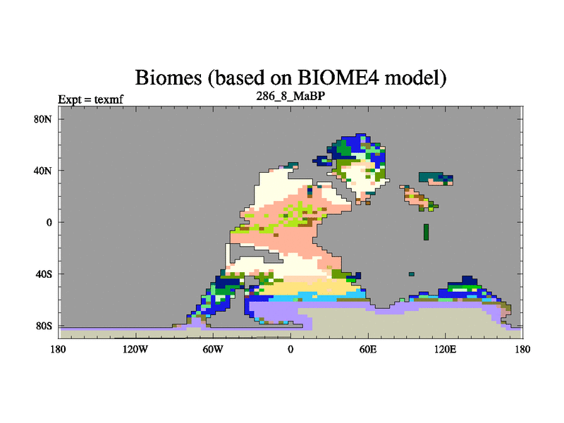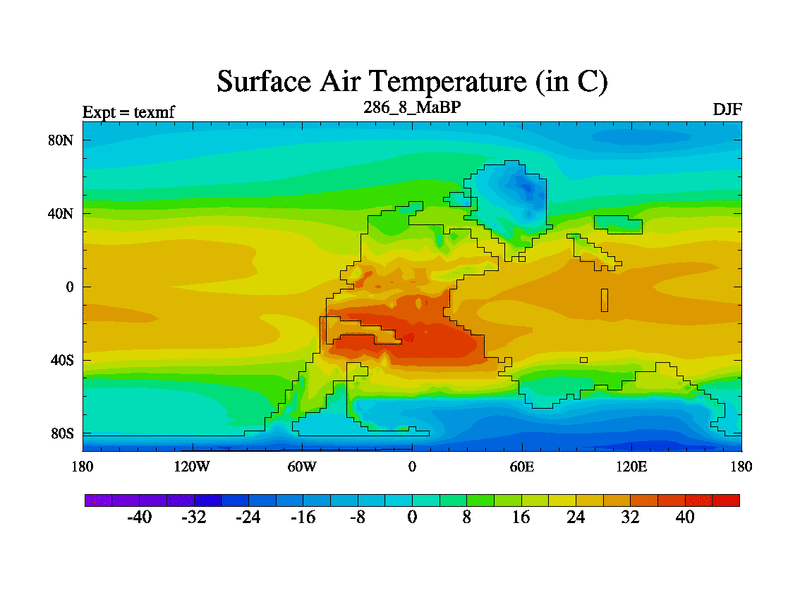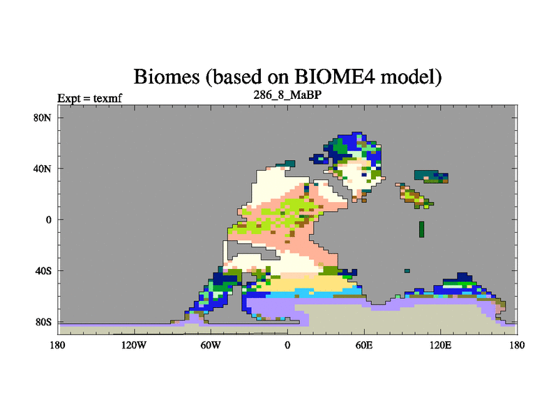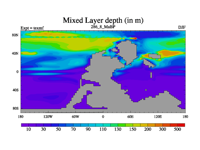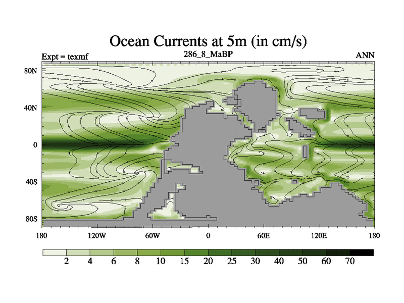 This is the 286.8 Ma simulation using the Scotese palaeogeographies. High output extension of the 5000 year spinup.