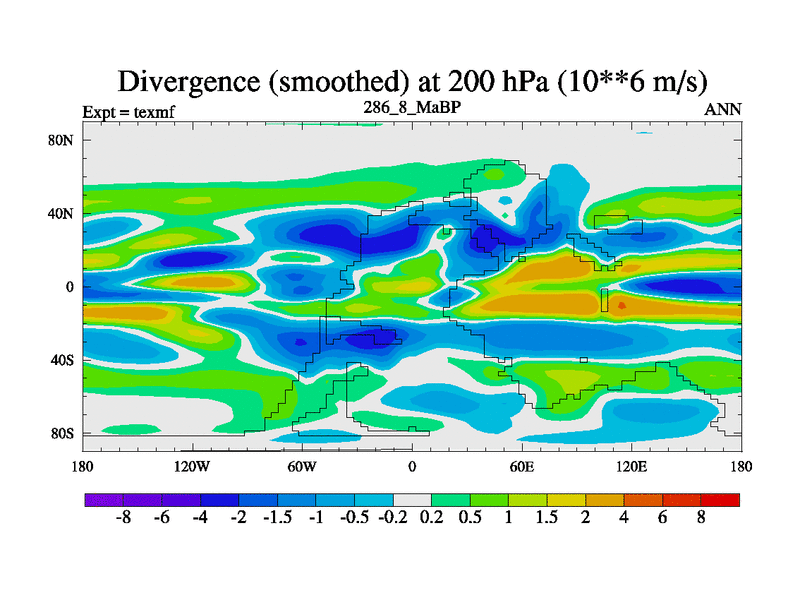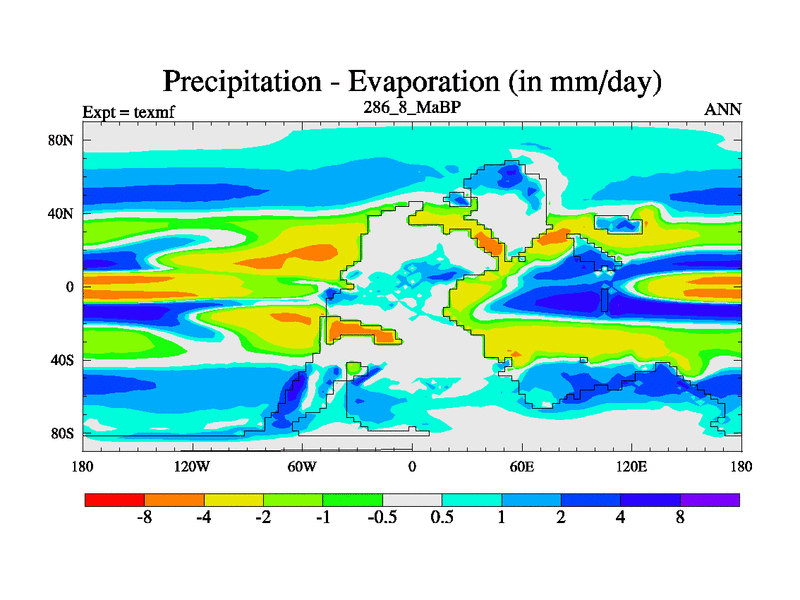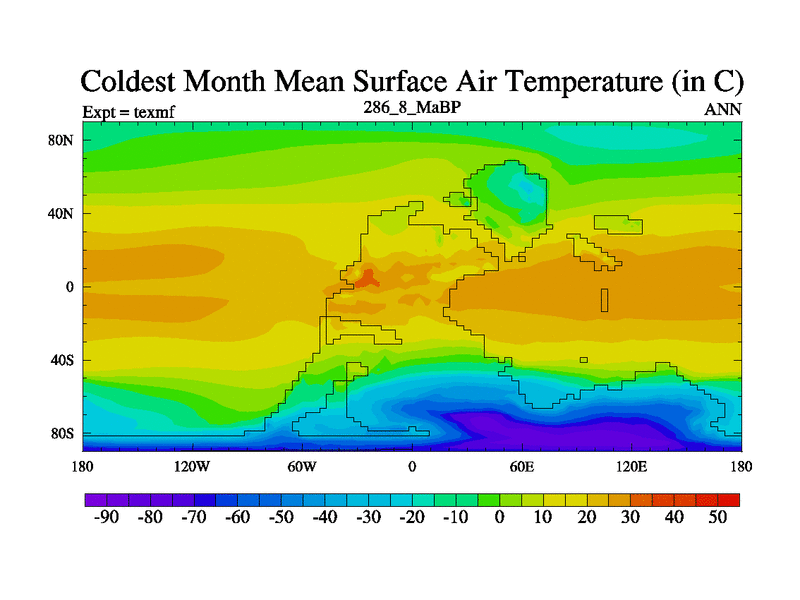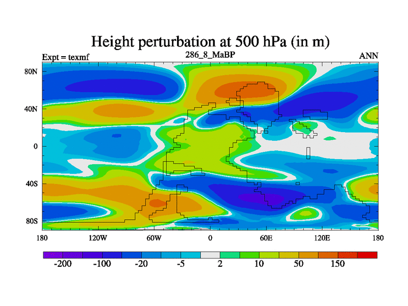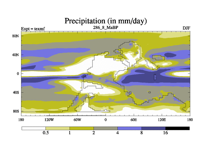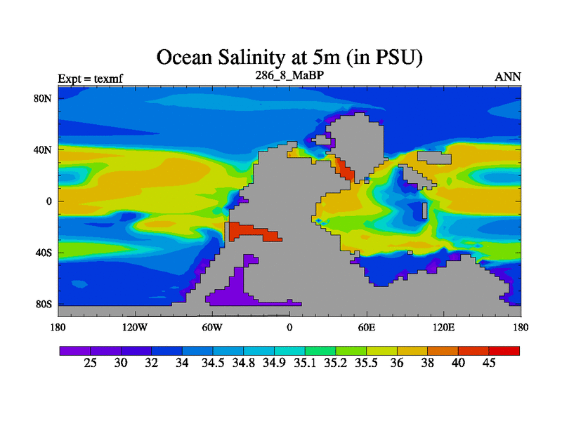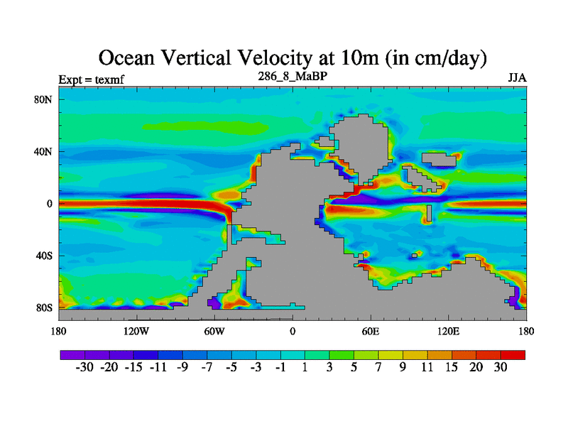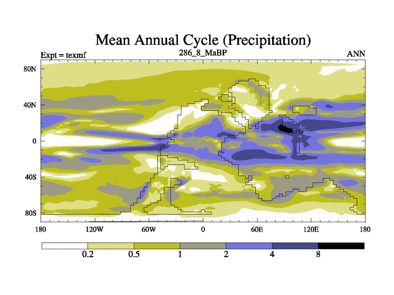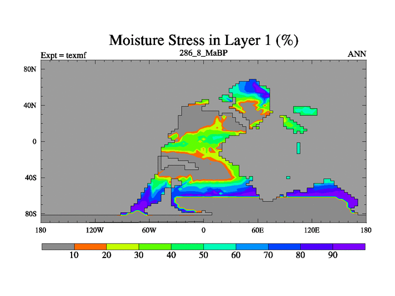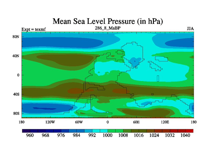This is the 286.8 Ma simulation using the Scotese palaeogeographies. High output extension of the 5000 year spinup.