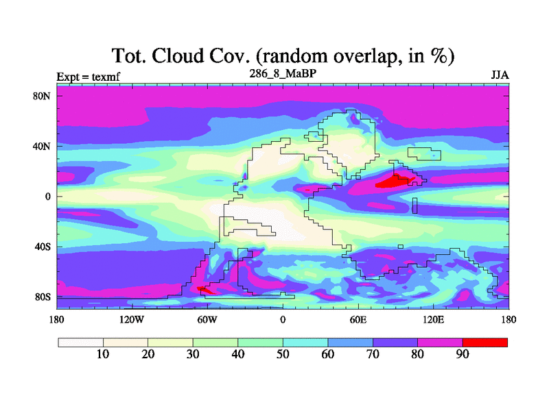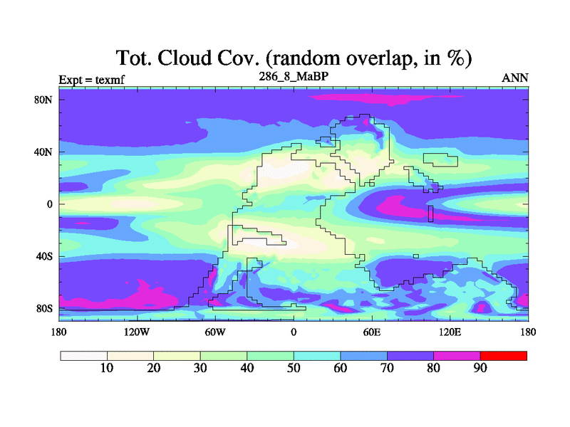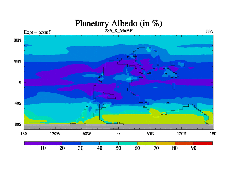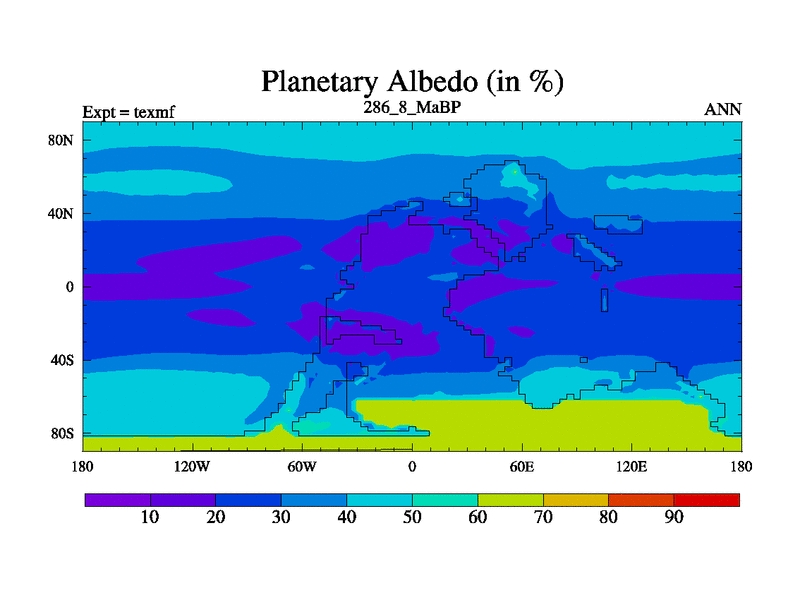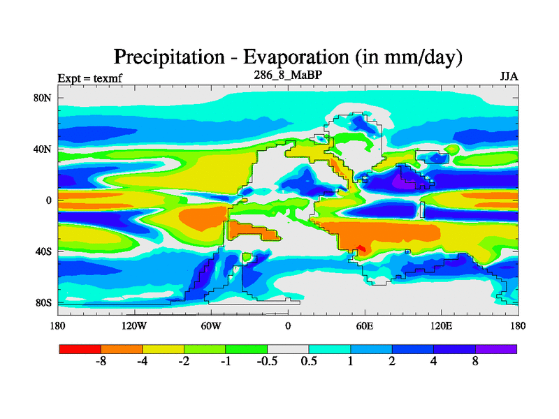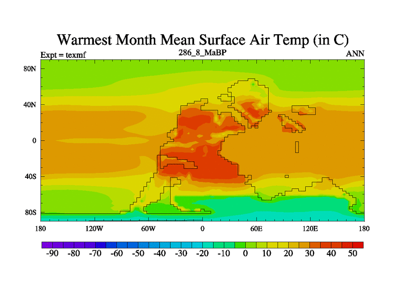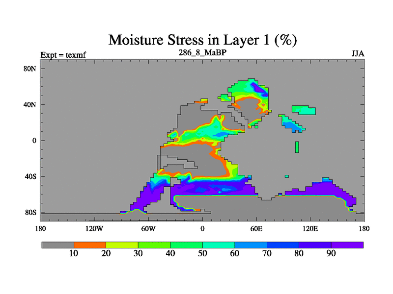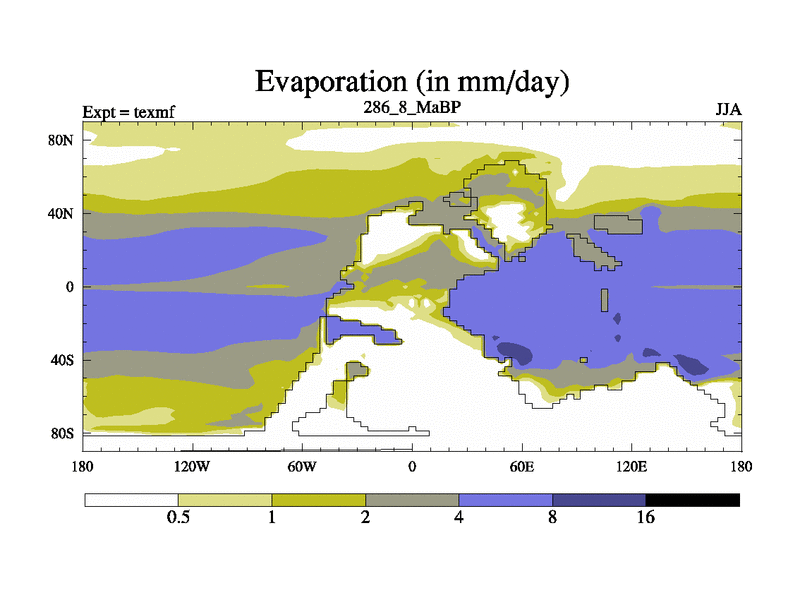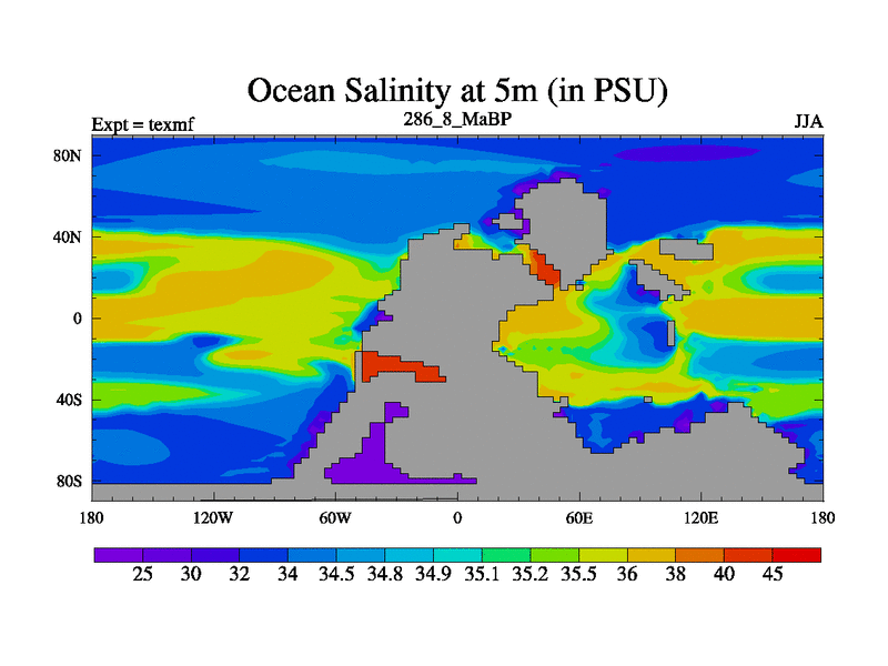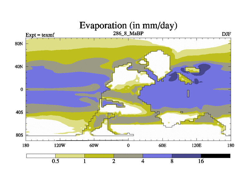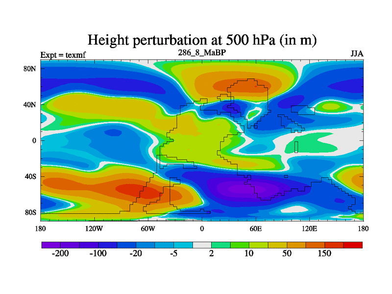 This is the 286.8 Ma simulation using the Scotese palaeogeographies. High output extension of the 5000 year spinup.