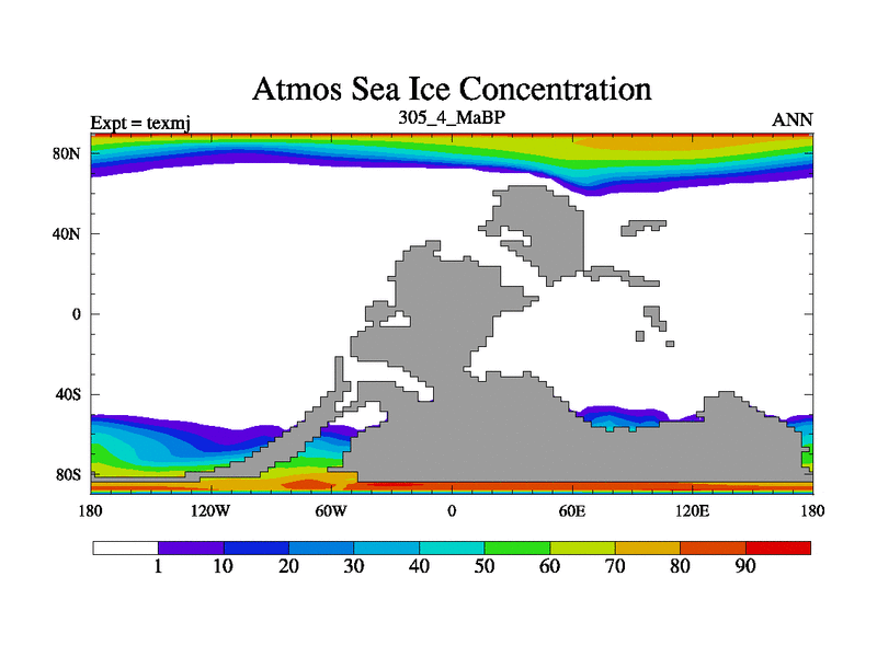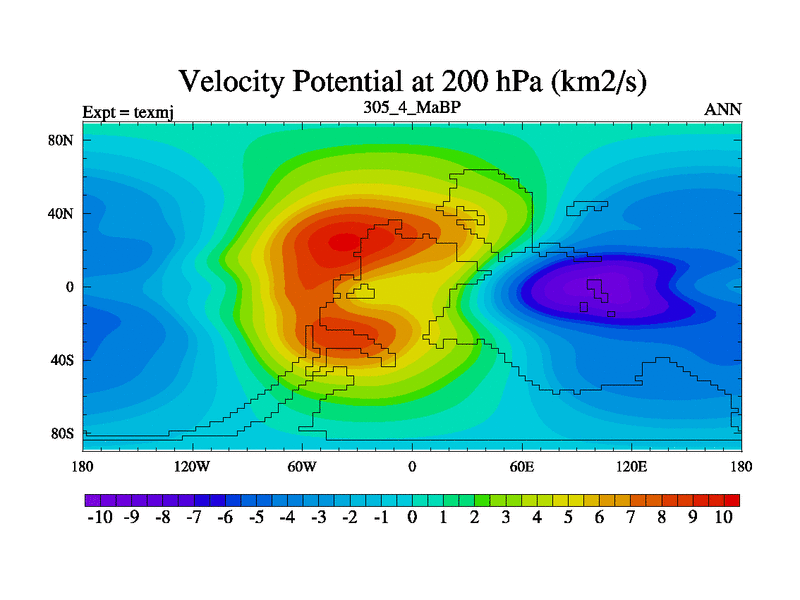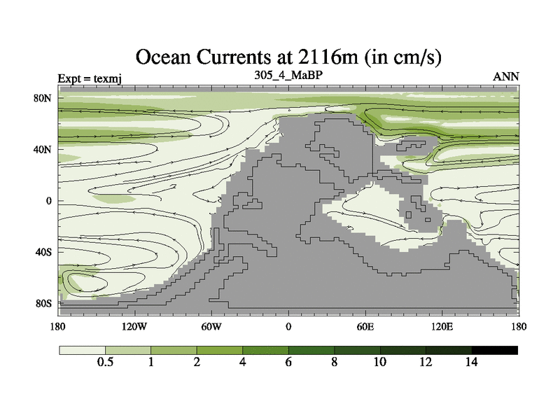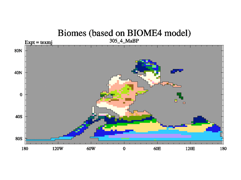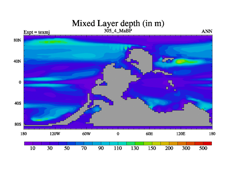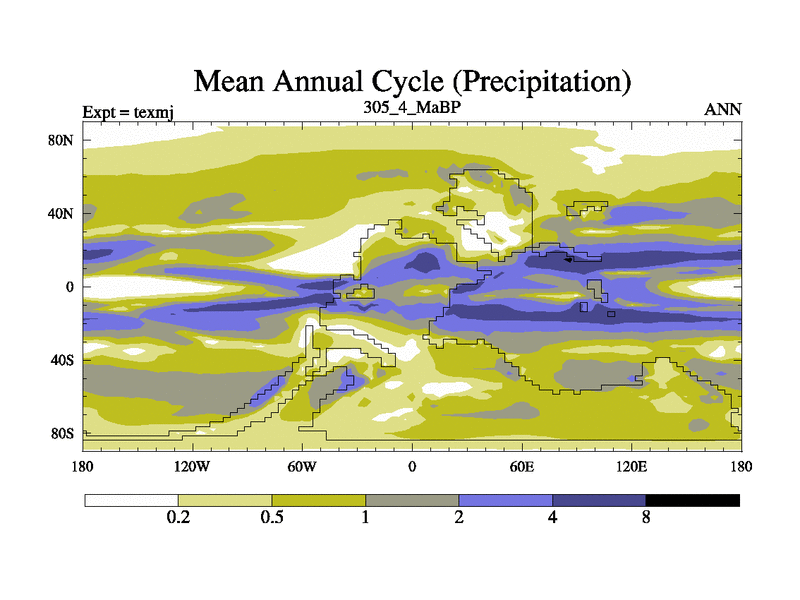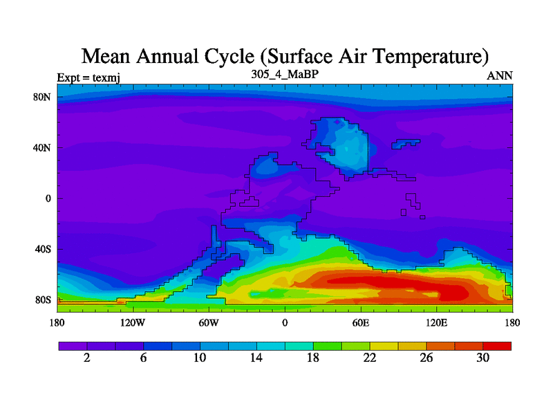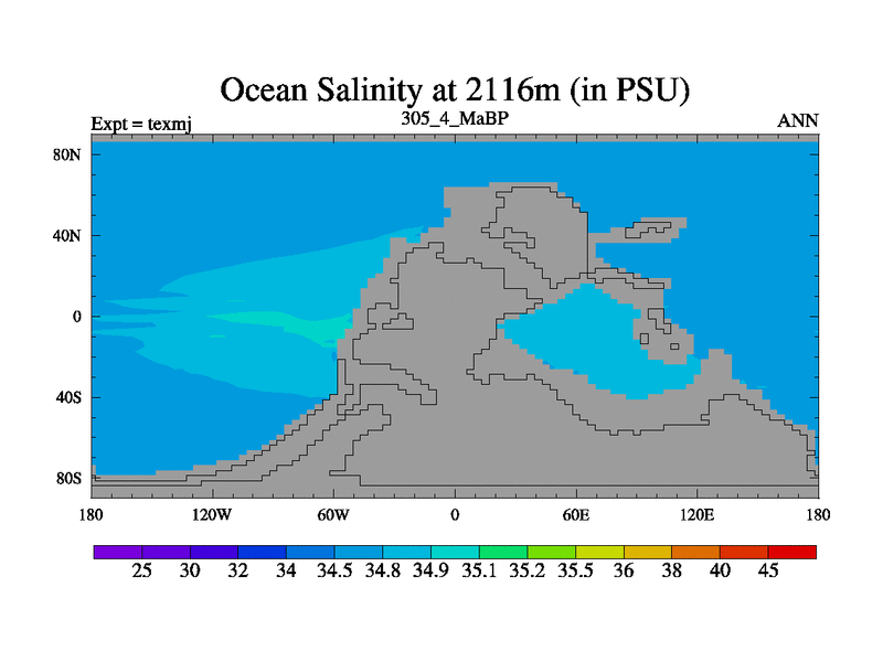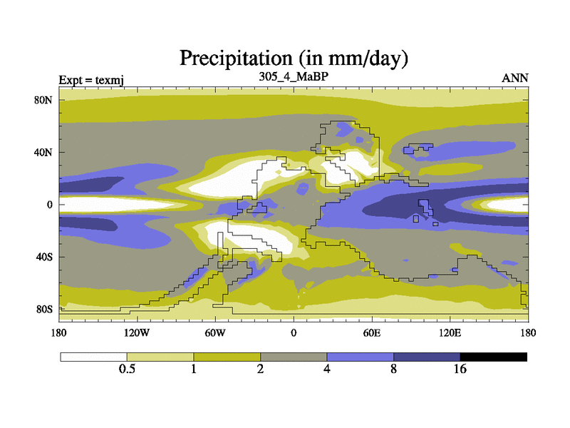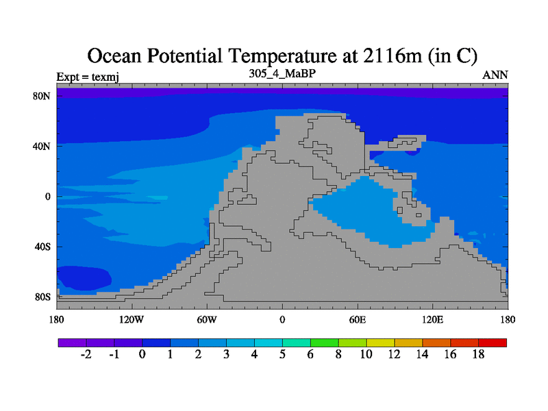 This is the 305.4 Ma simulation using the Scotese palaeogeographies. High output extension of the 5000 year spinup.