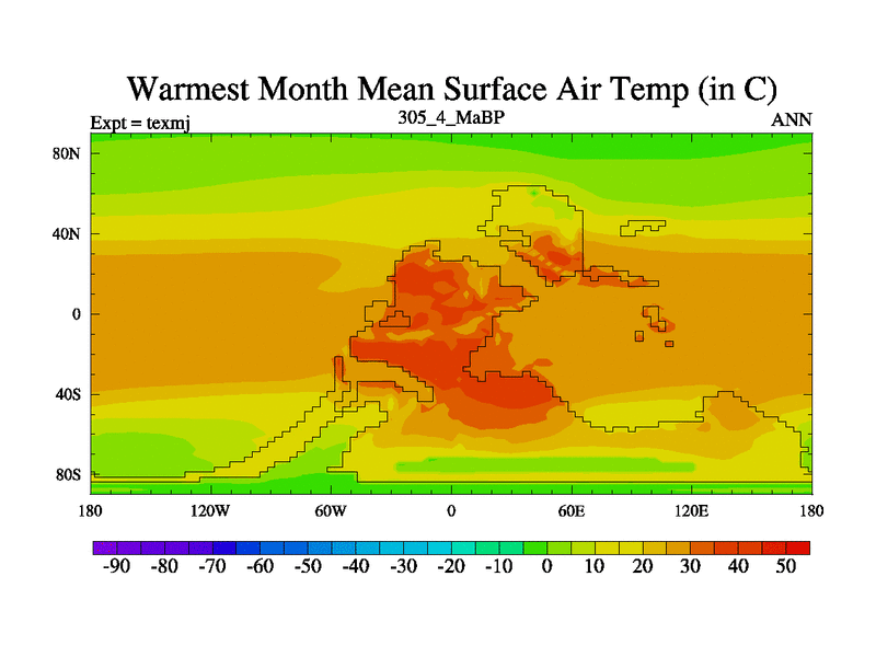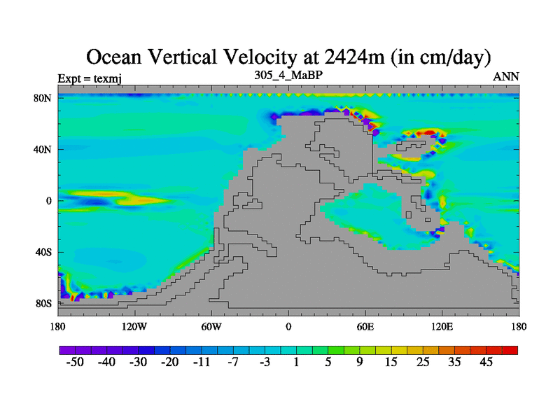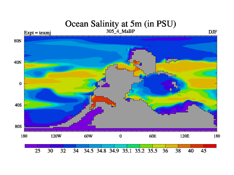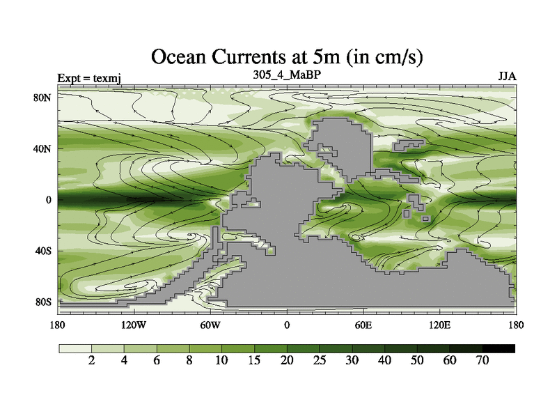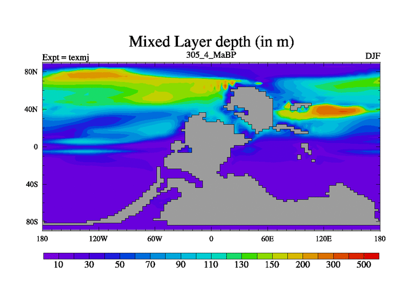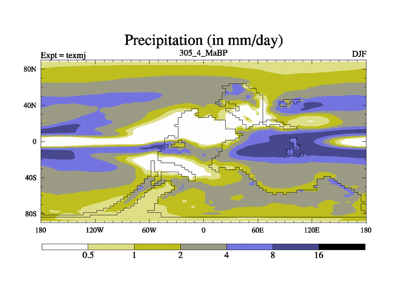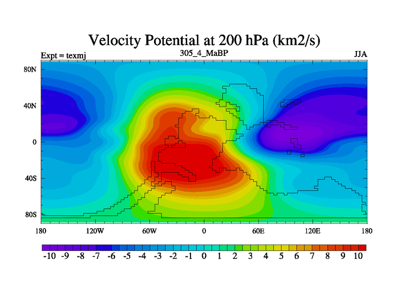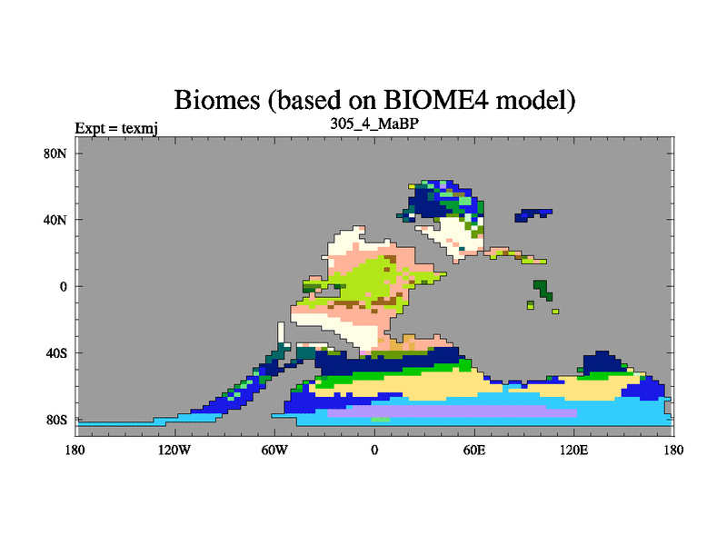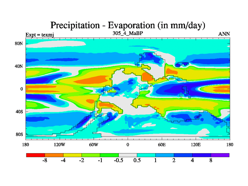 This is the 305.4 Ma simulation using the Scotese palaeogeographies. High output extension of the 5000 year spinup.