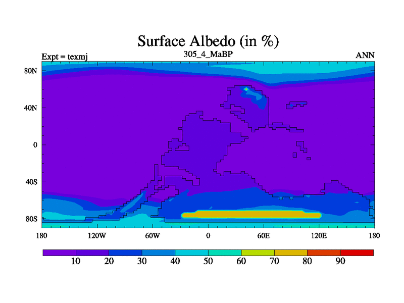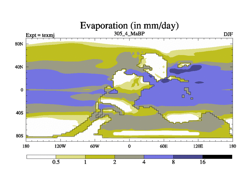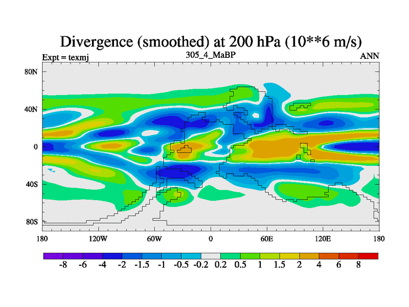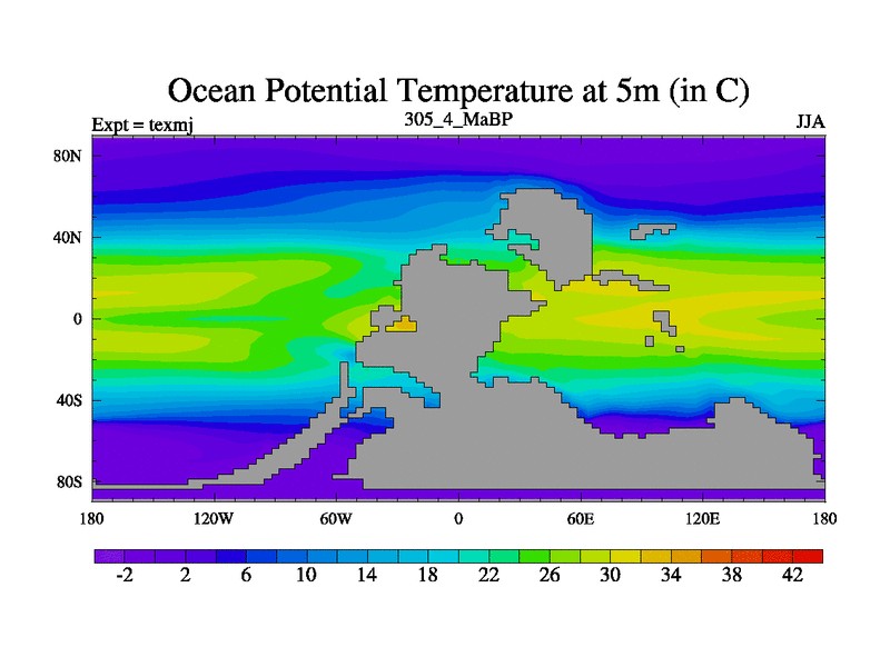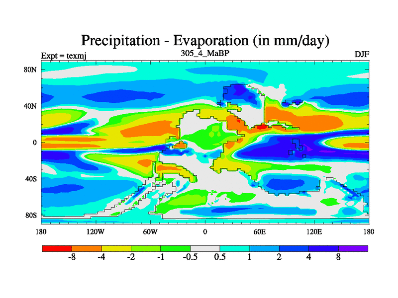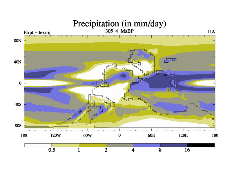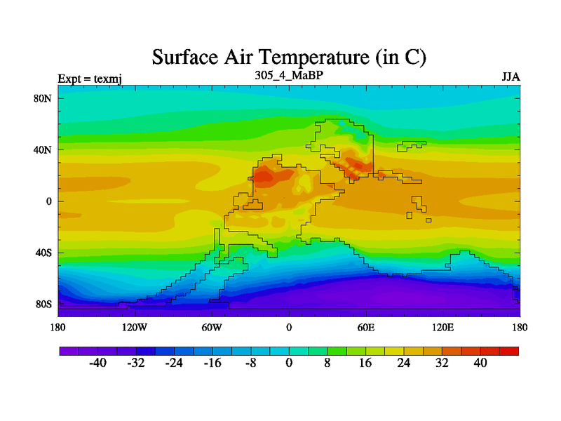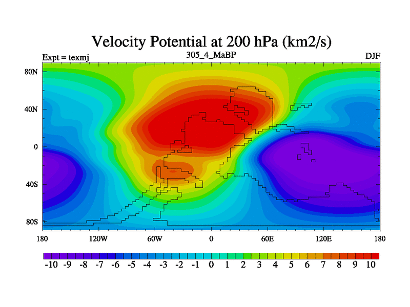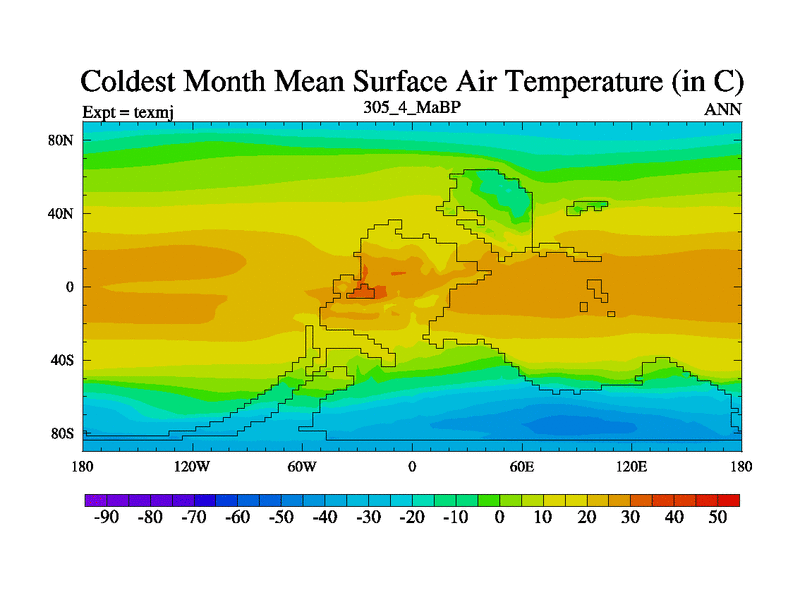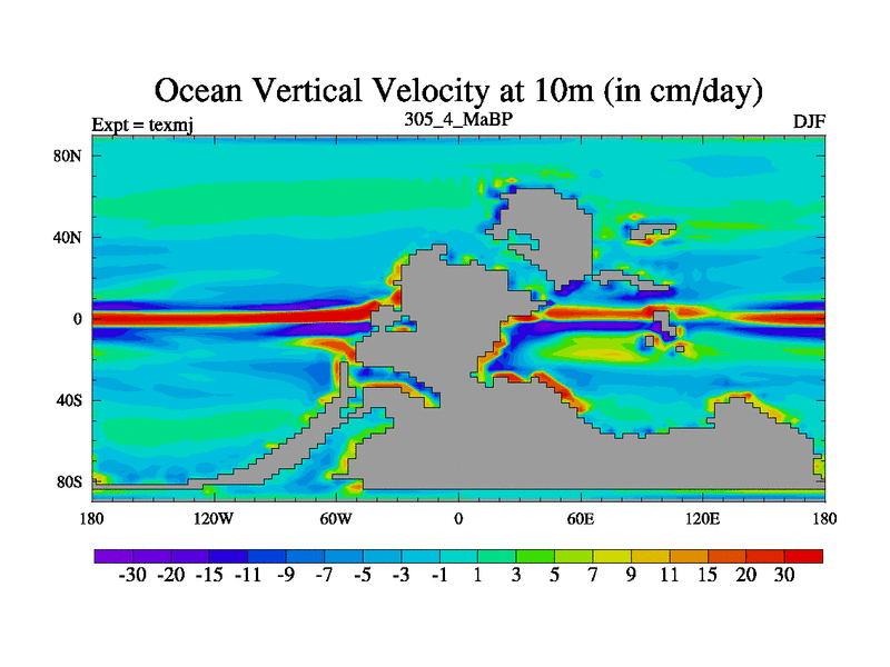 This is the 305.4 Ma simulation using the Scotese palaeogeographies. High output extension of the 5000 year spinup.
