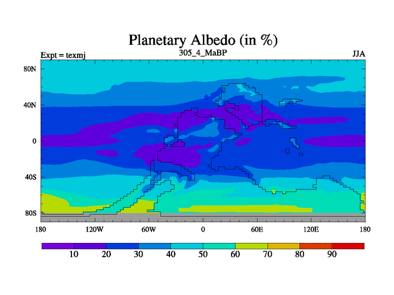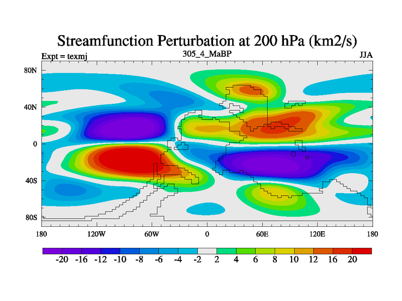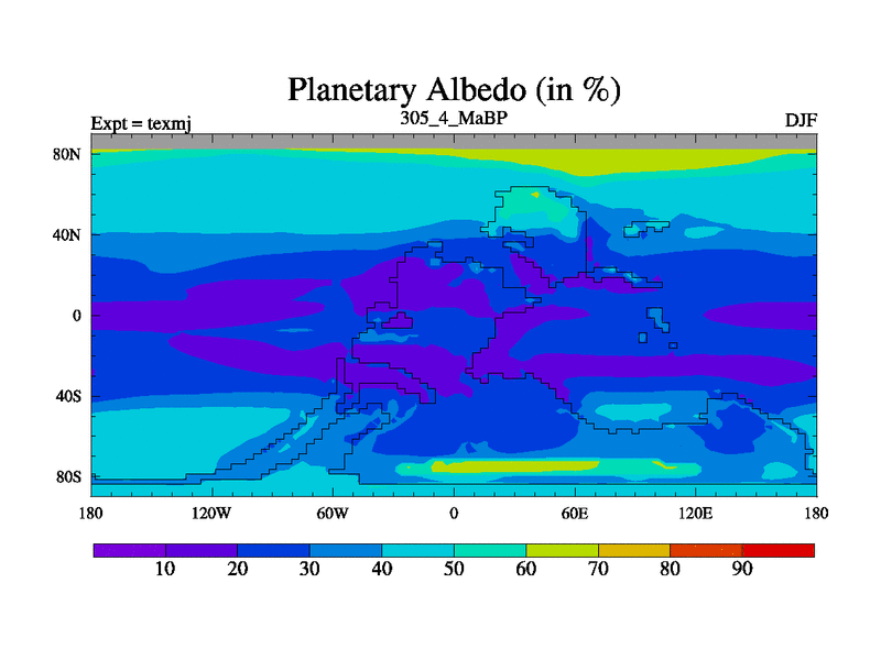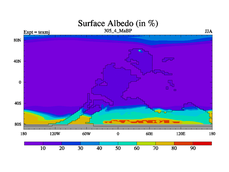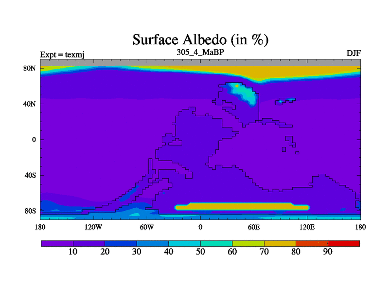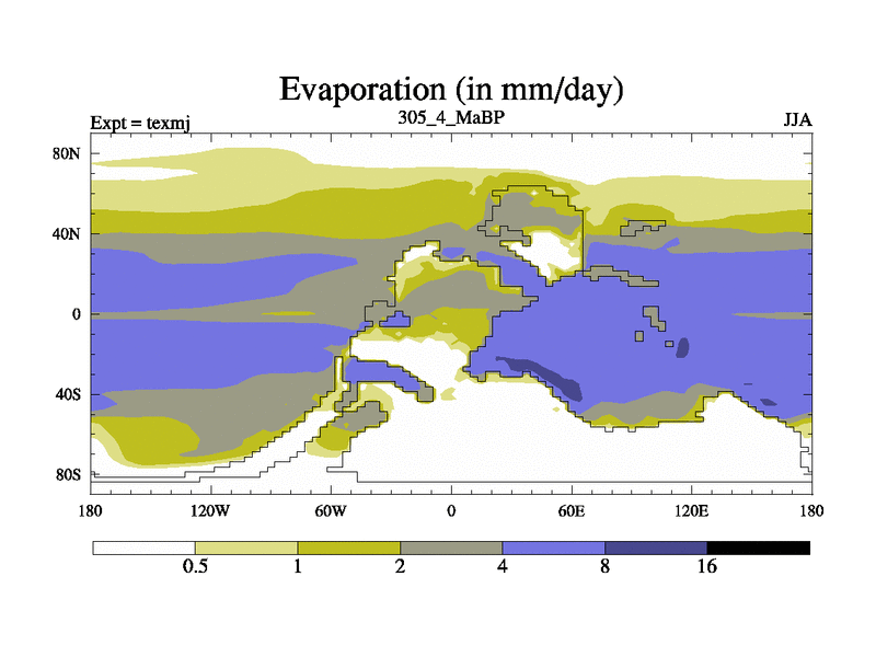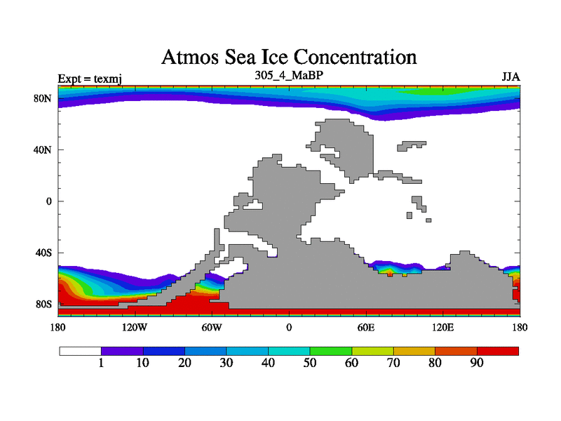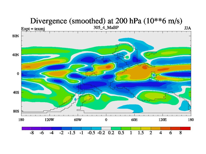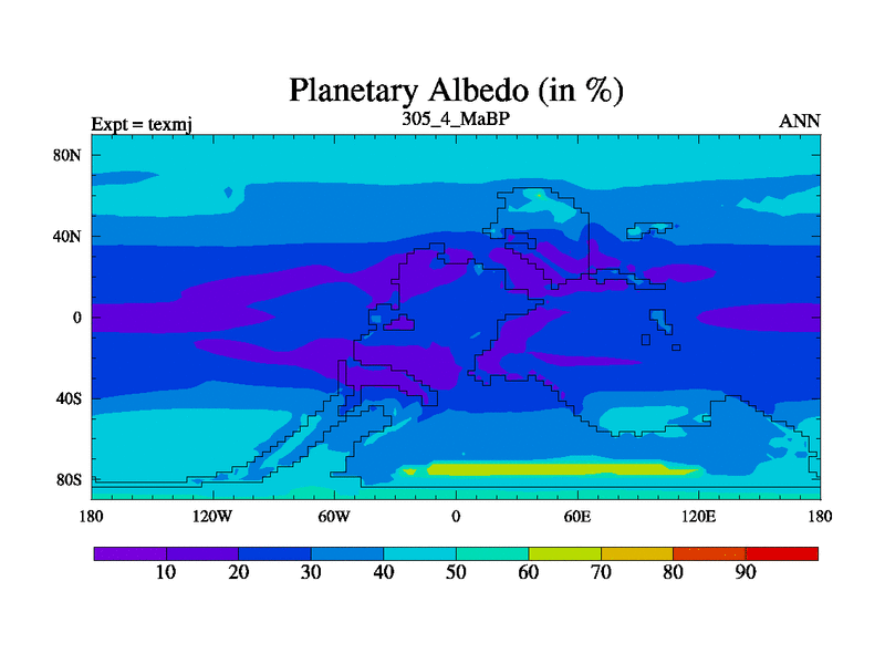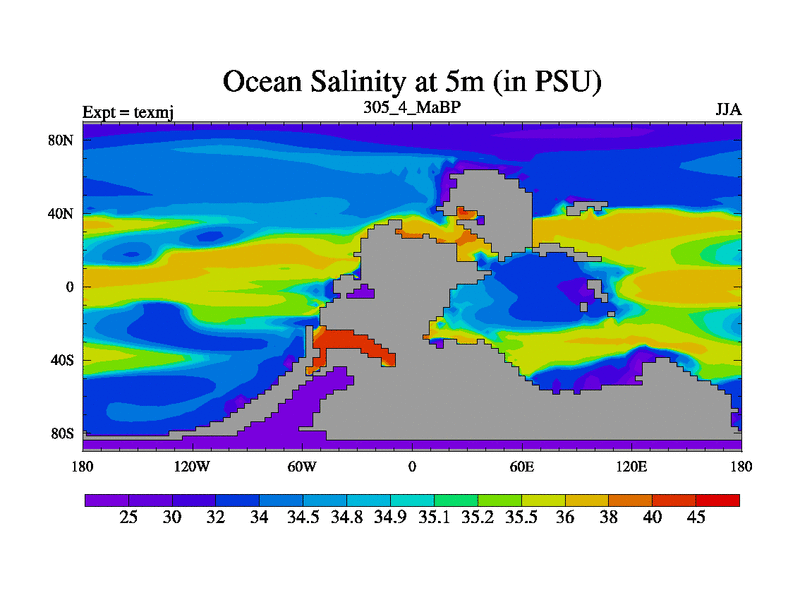 This is the 305.4 Ma simulation using the Scotese palaeogeographies. High output extension of the 5000 year spinup.