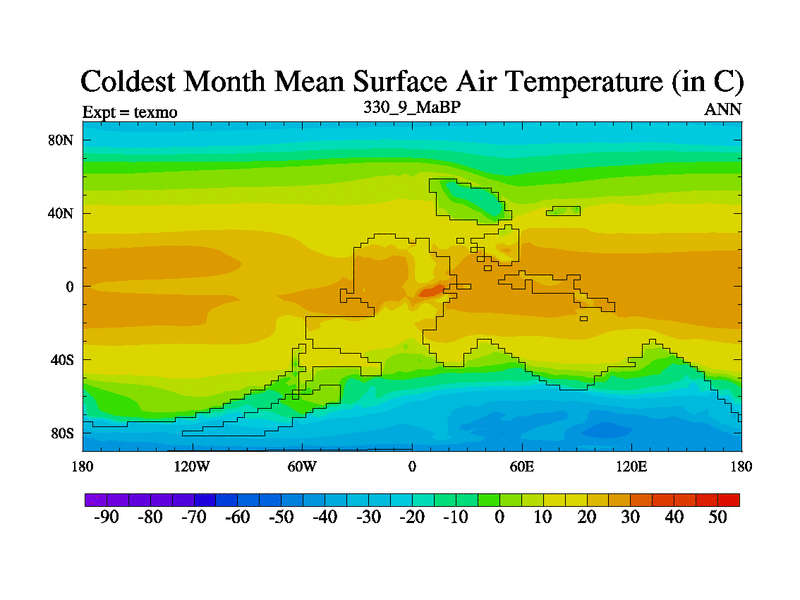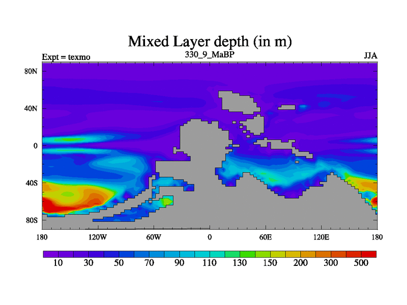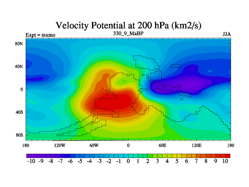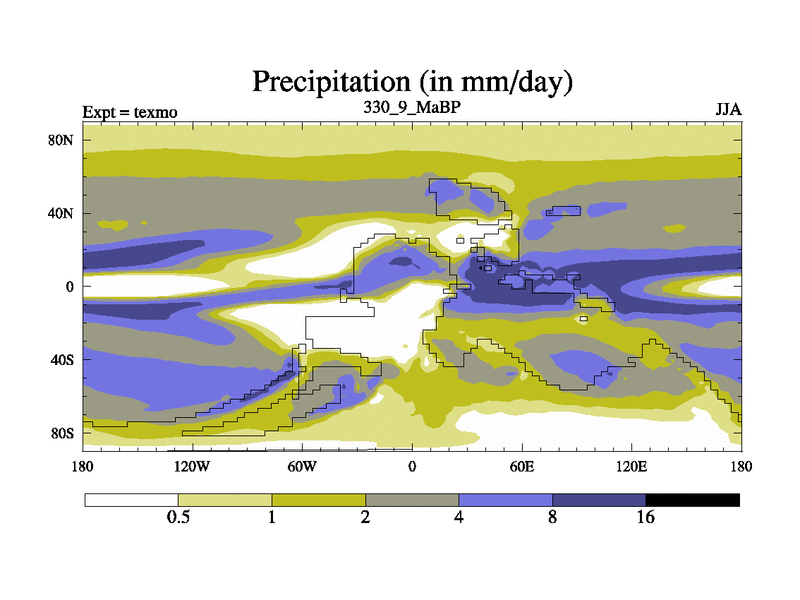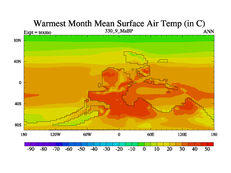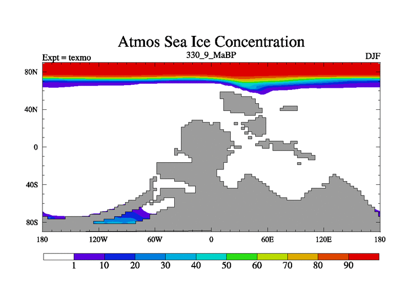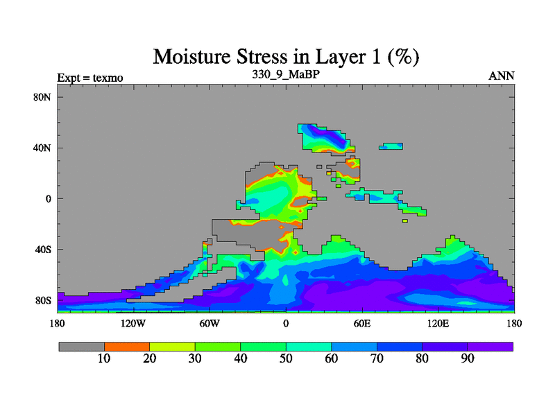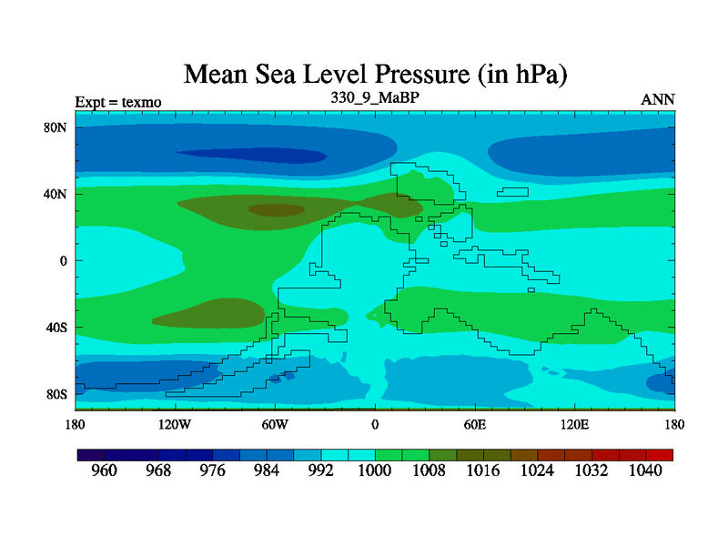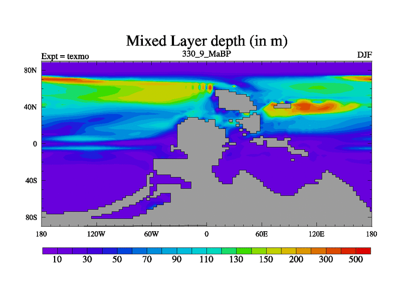 This is the 330.9 Ma simulation using the Scotese palaeogeographies. High output extension of the 5000 year spinup.