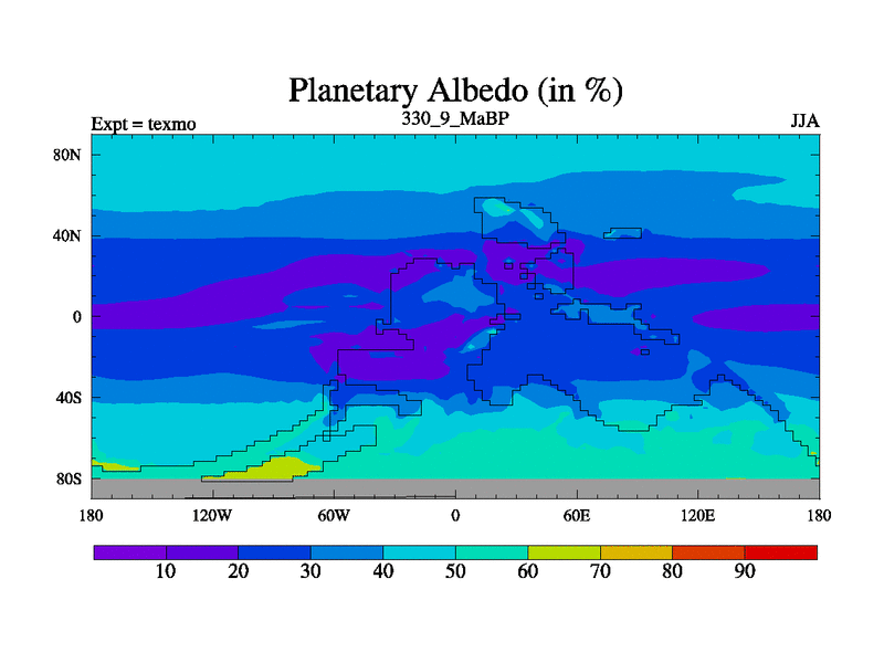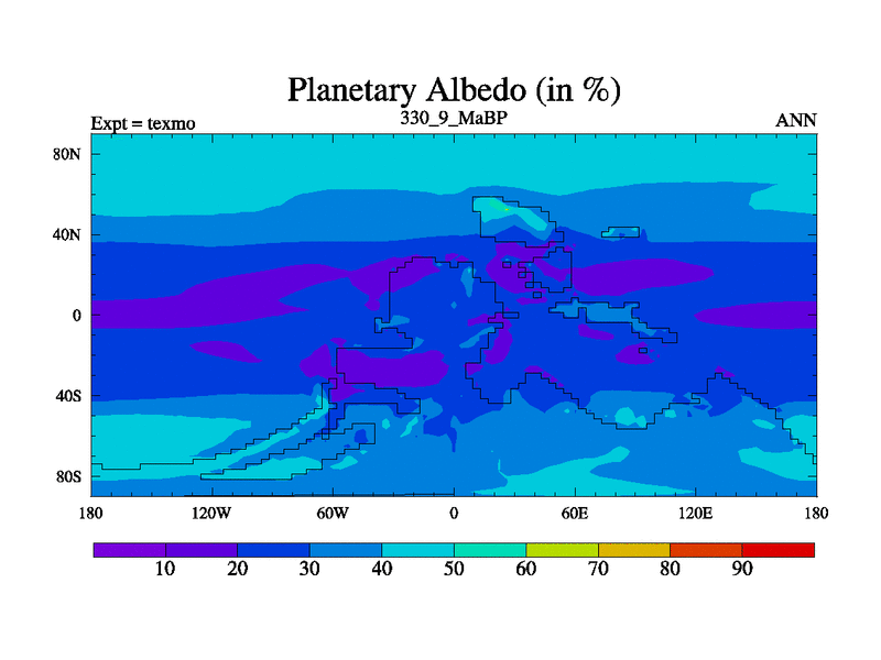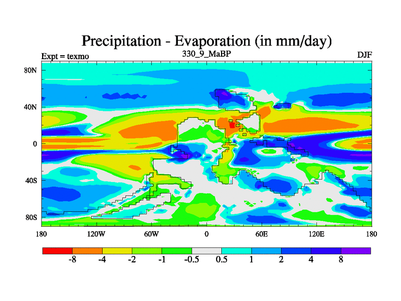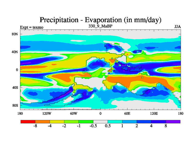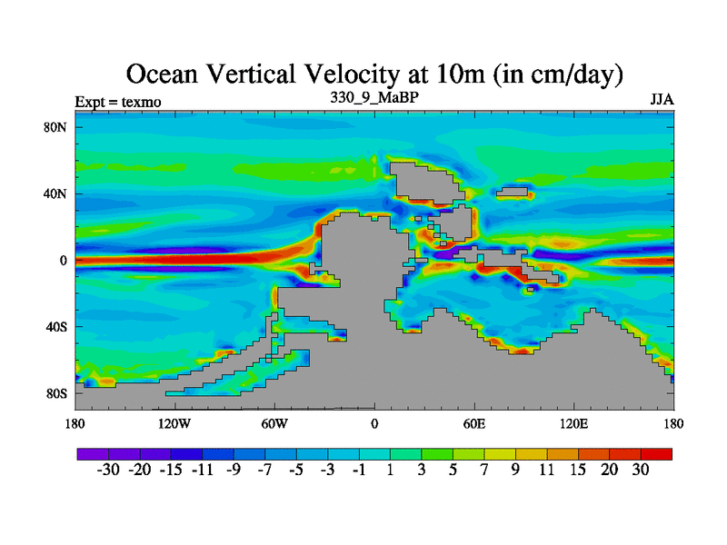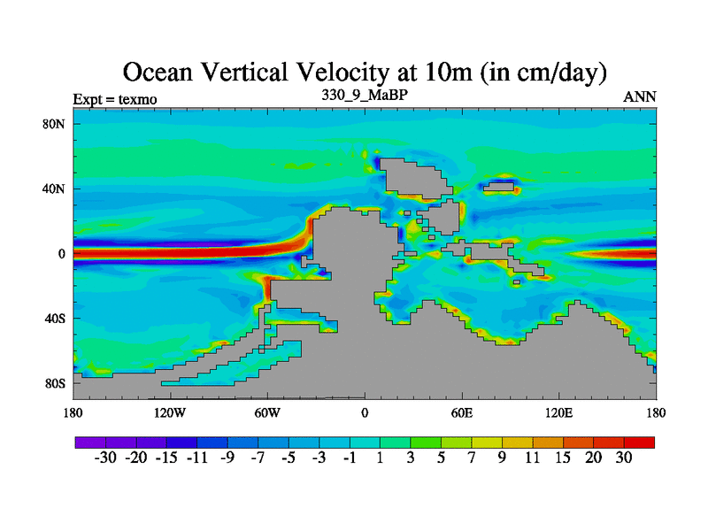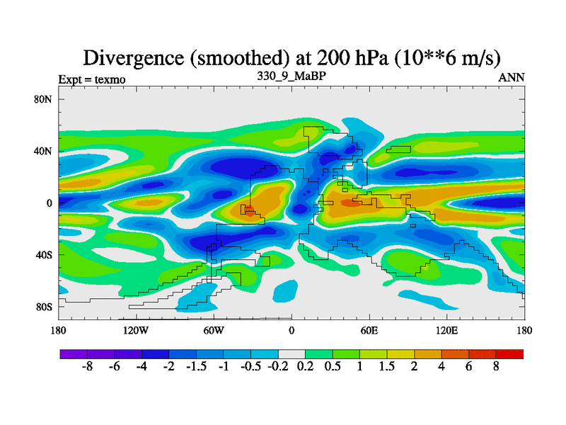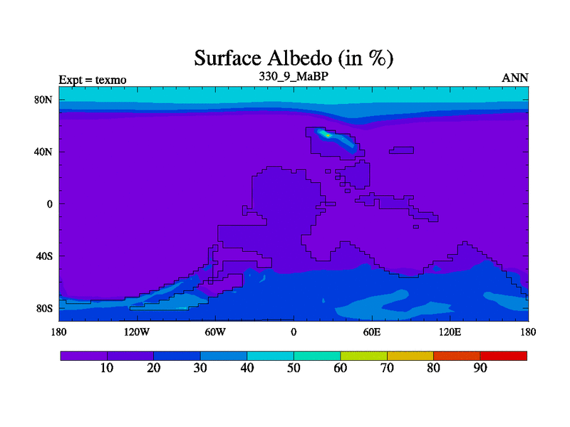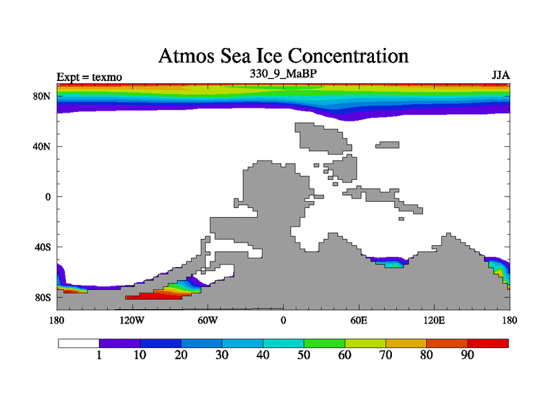 This is the 330.9 Ma simulation using the Scotese palaeogeographies. High output extension of the 5000 year spinup.