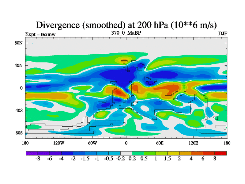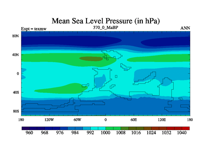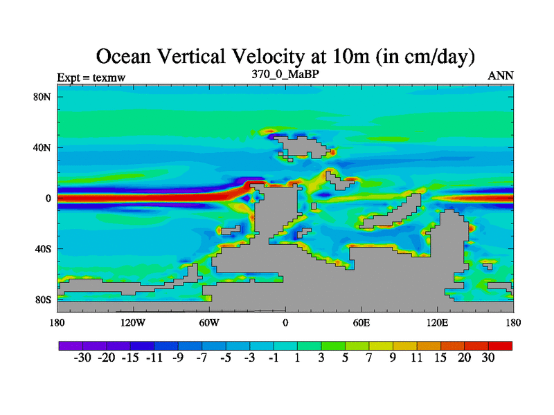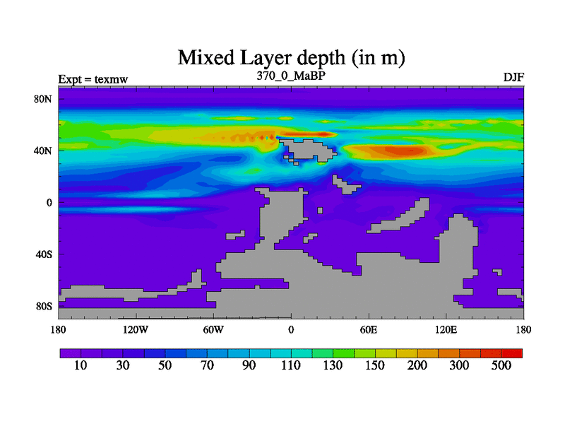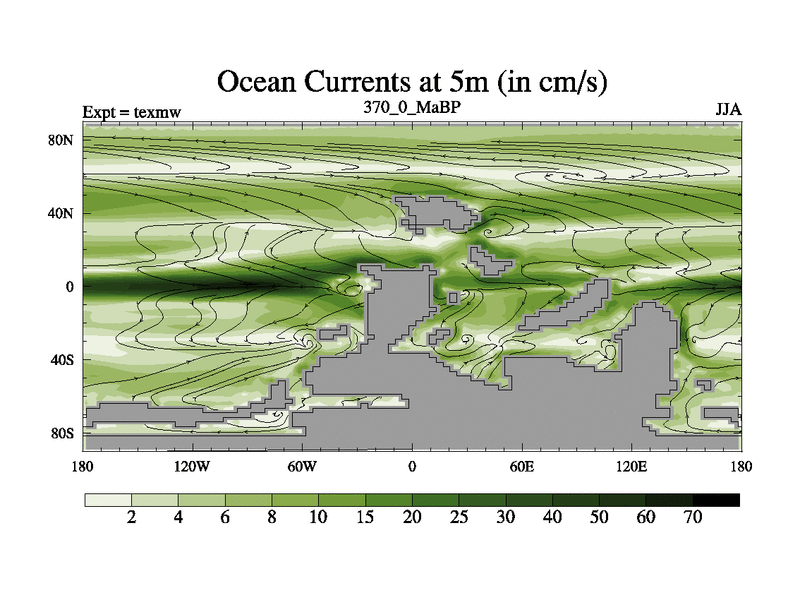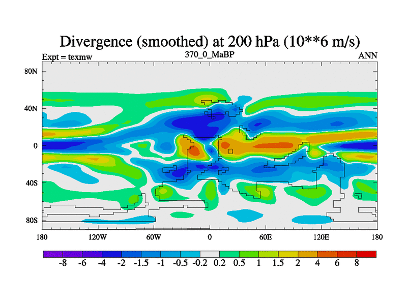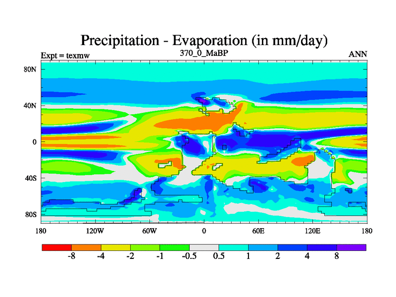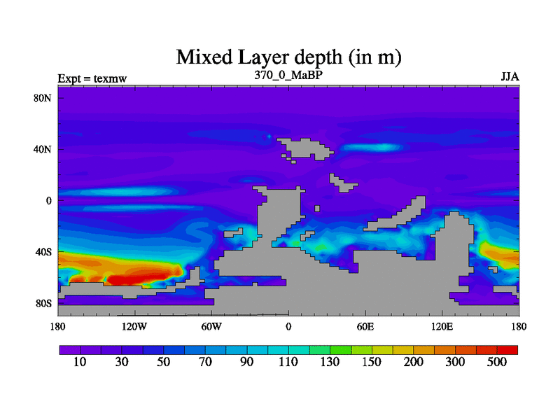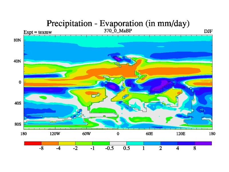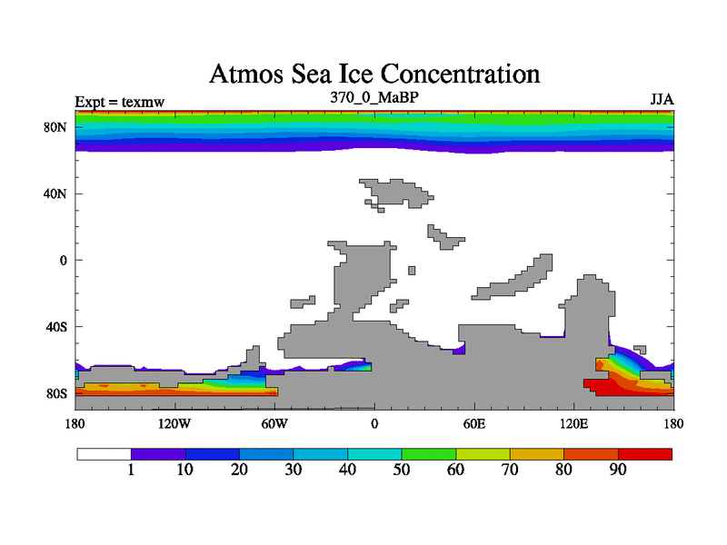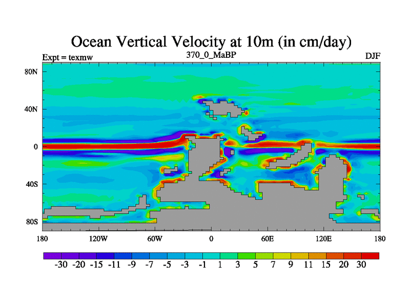 This is the 370.0 Ma simulation using the Scotese palaeogeographies. High output extension of the 5000 year spinup.