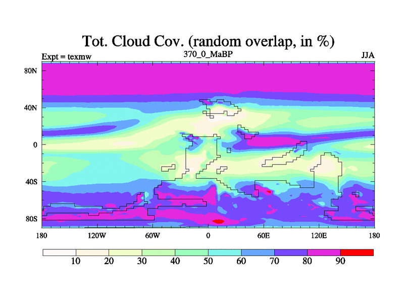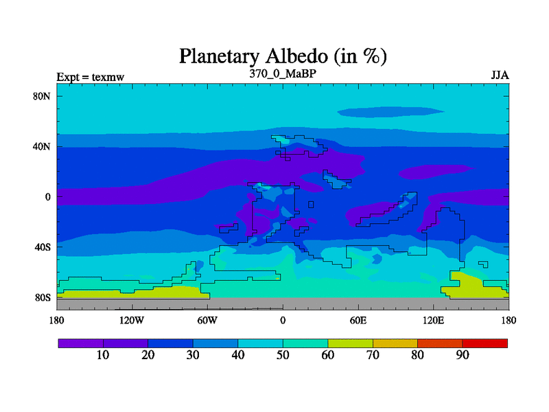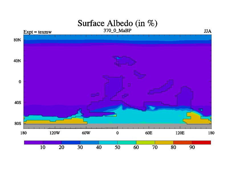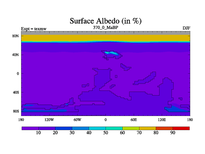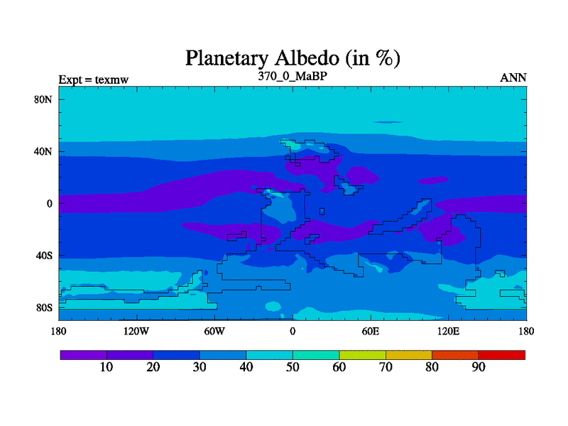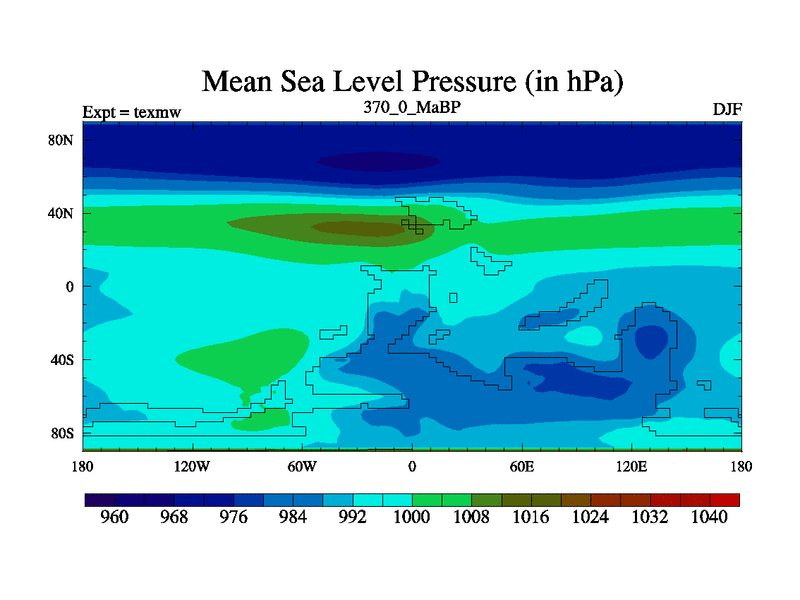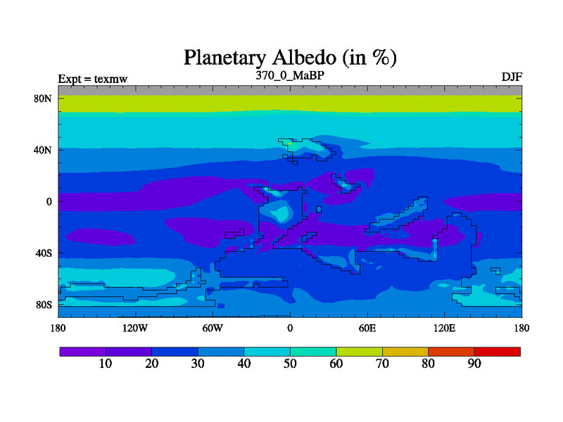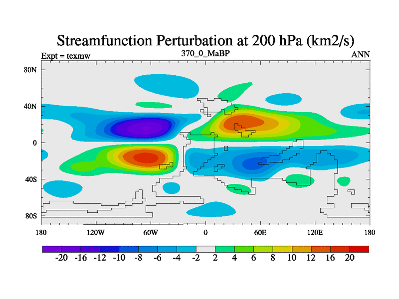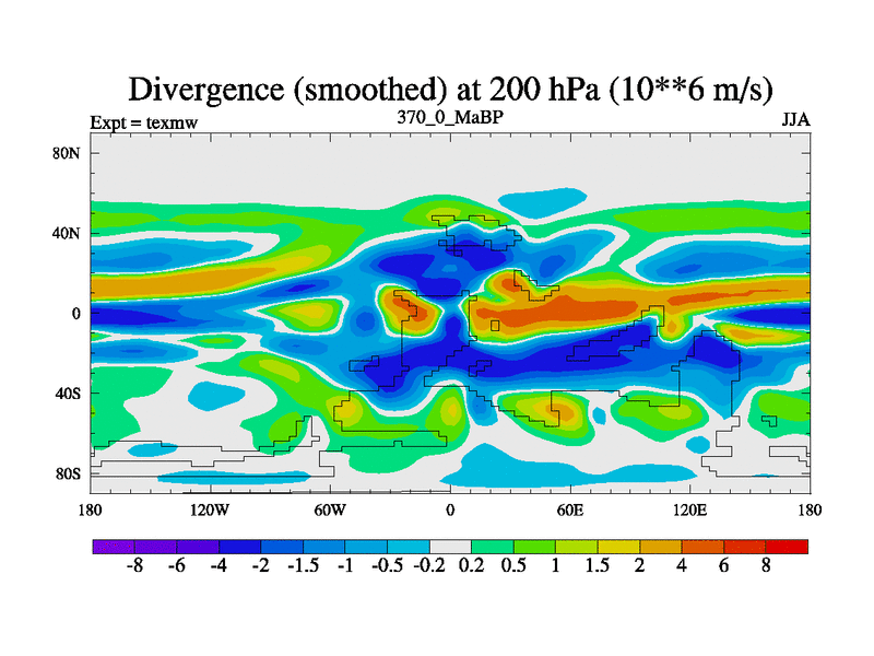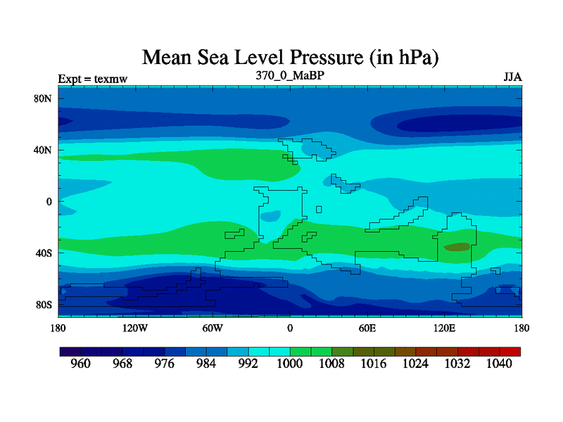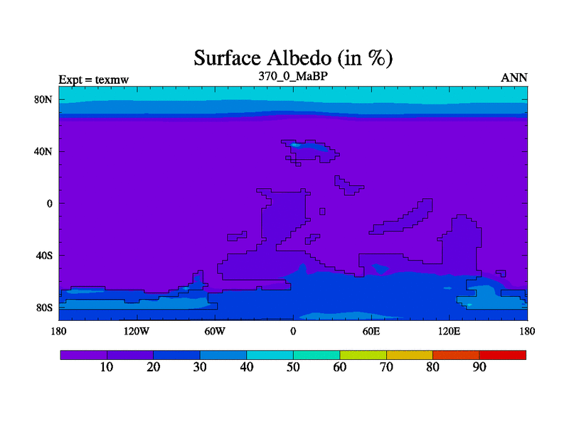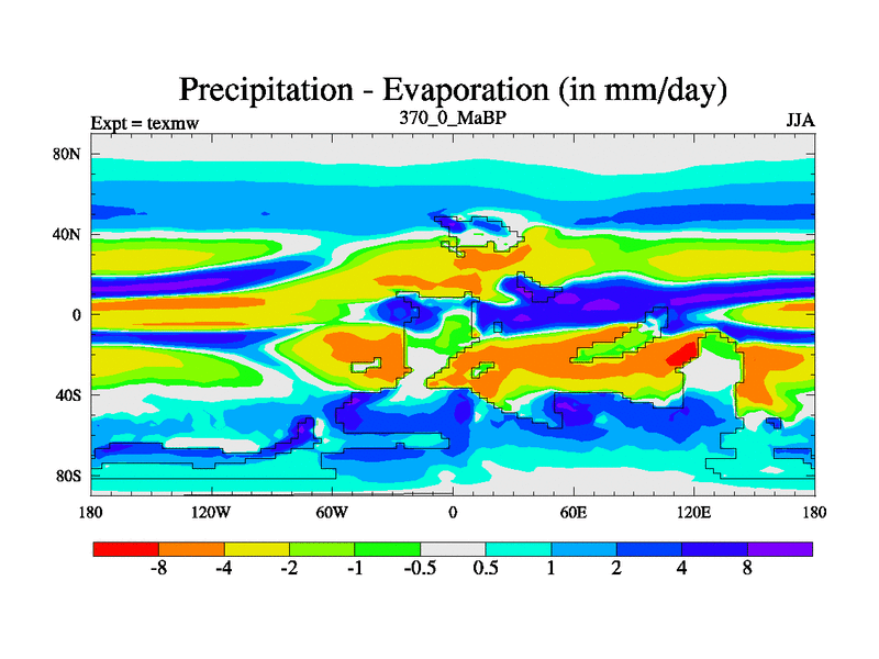 This is the 370.0 Ma simulation using the Scotese palaeogeographies. High output extension of the 5000 year spinup.