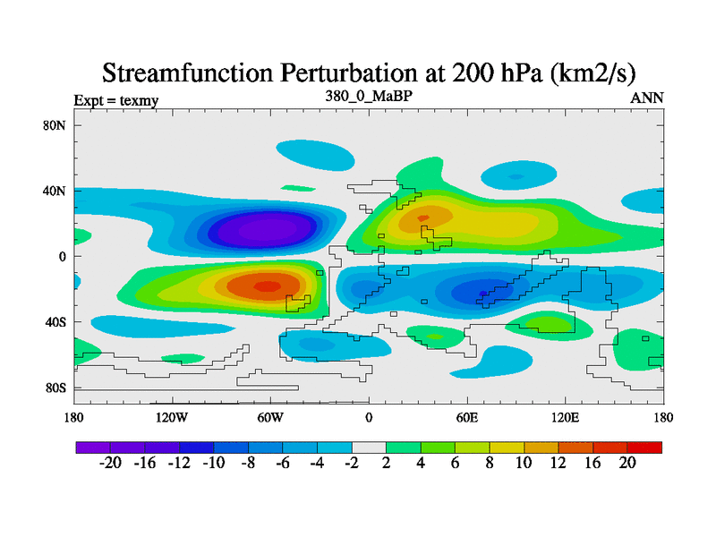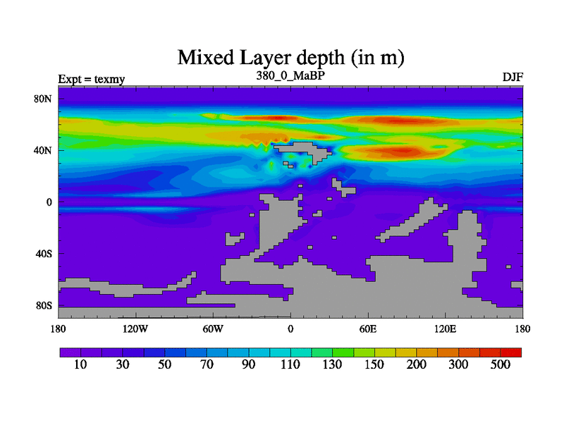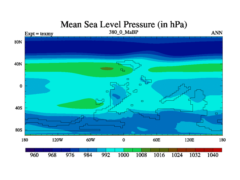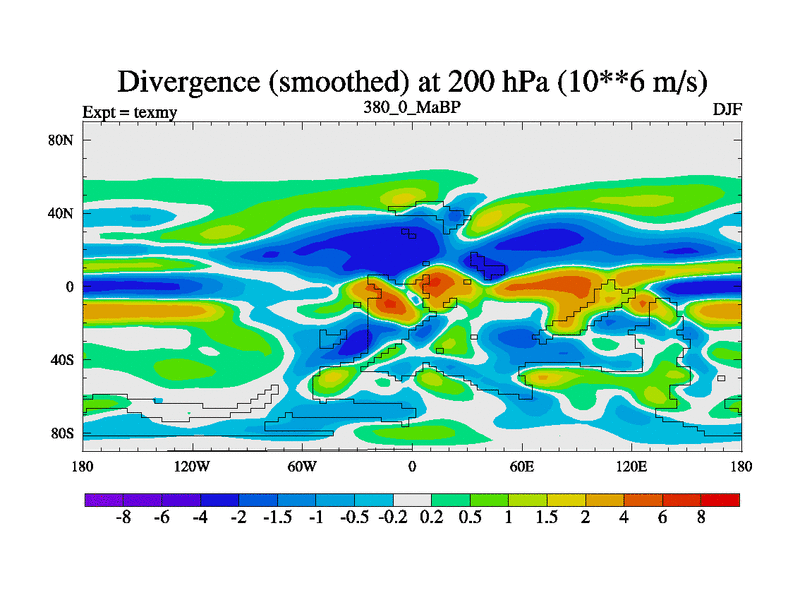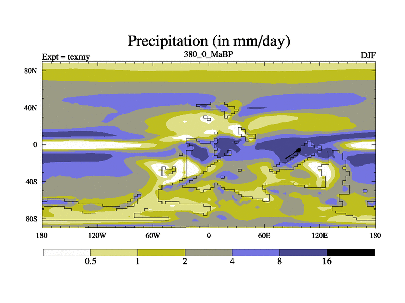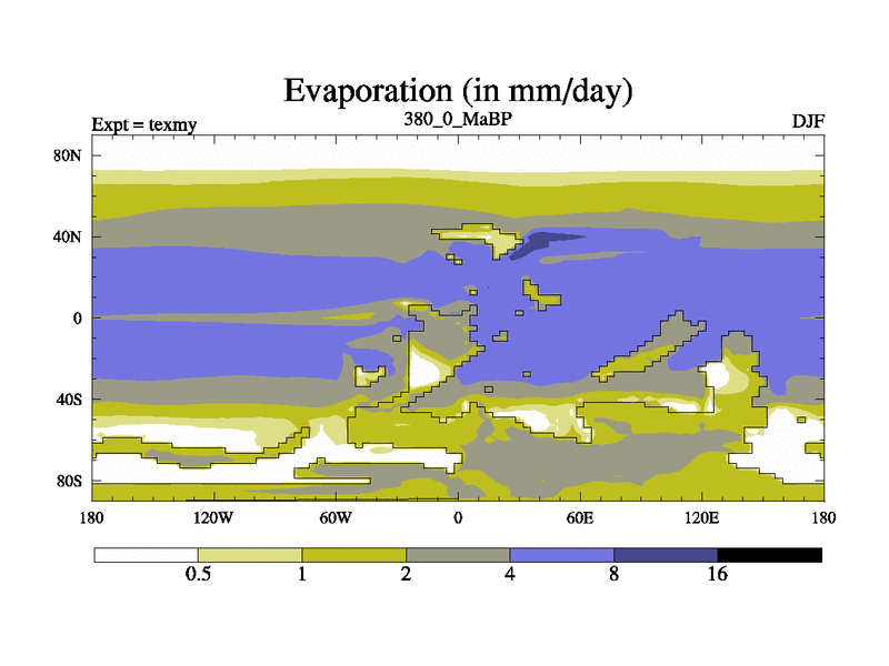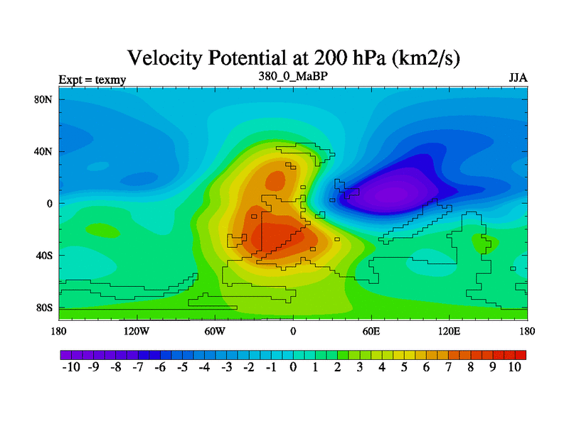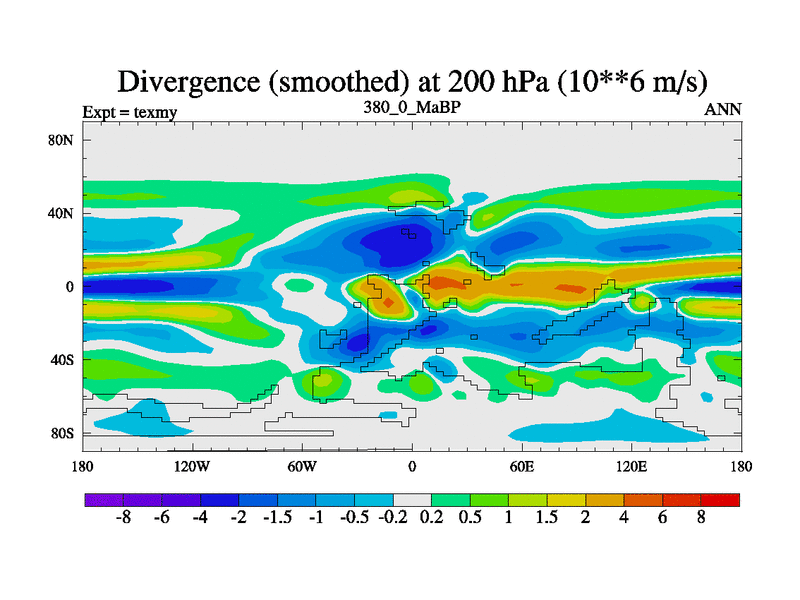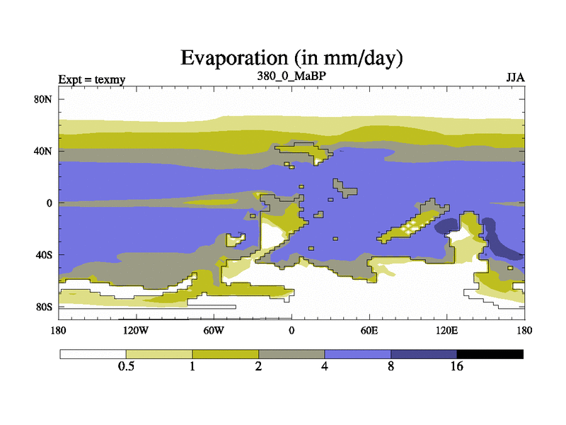 This is the 380.0 Ma simulation using the Scotese palaeogeographies. High output extension of the 5000 year spinup.