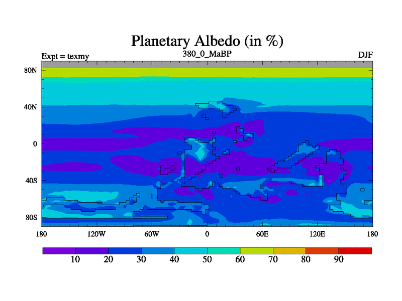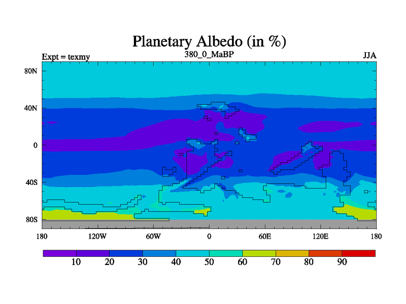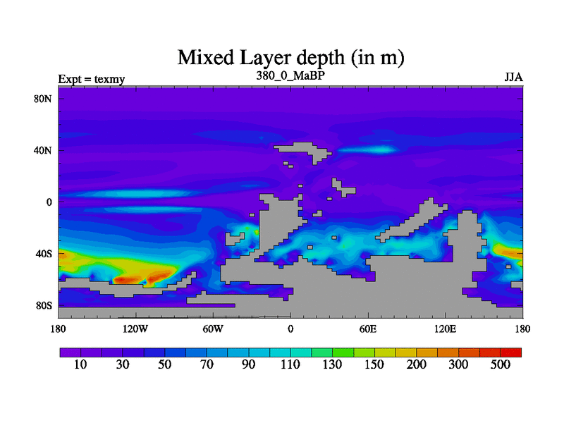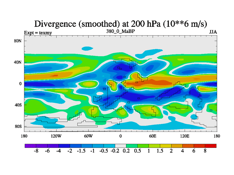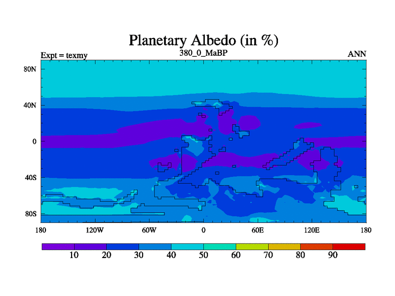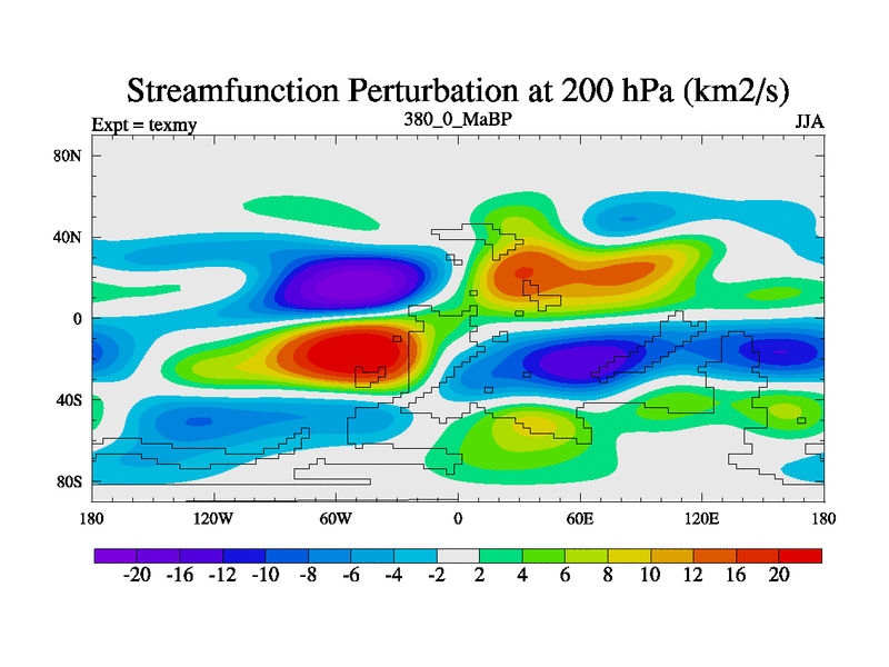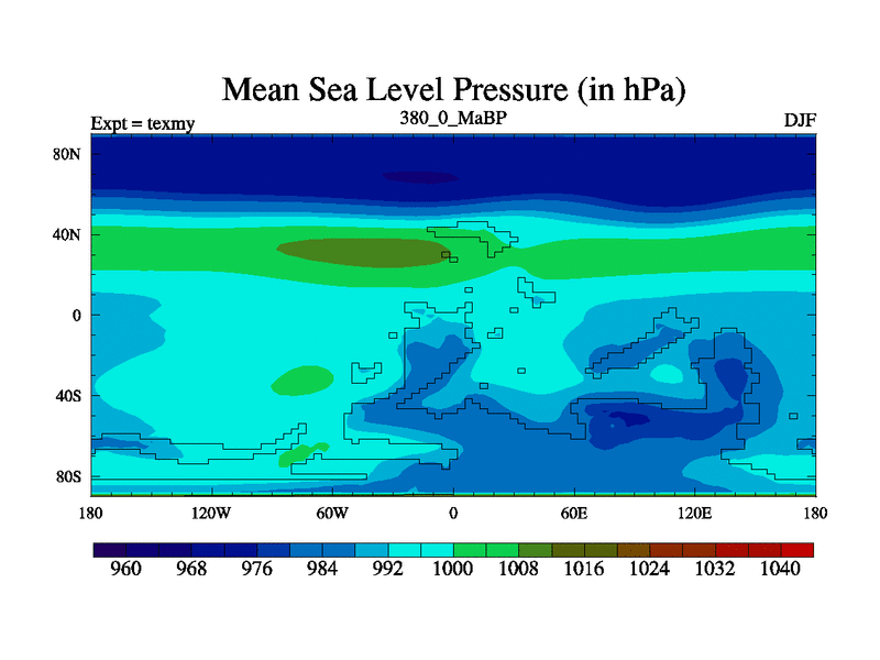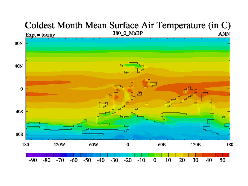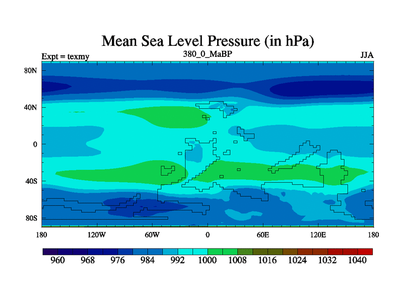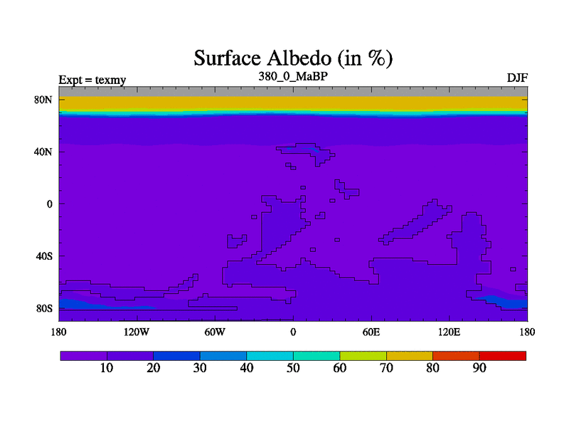 This is the 380.0 Ma simulation using the Scotese palaeogeographies. High output extension of the 5000 year spinup.