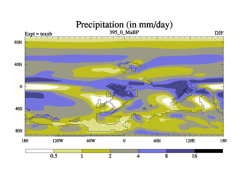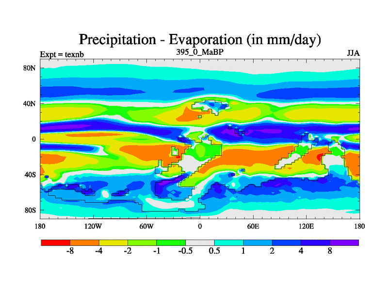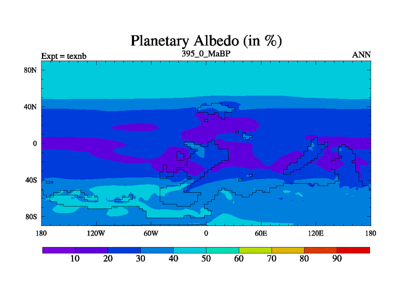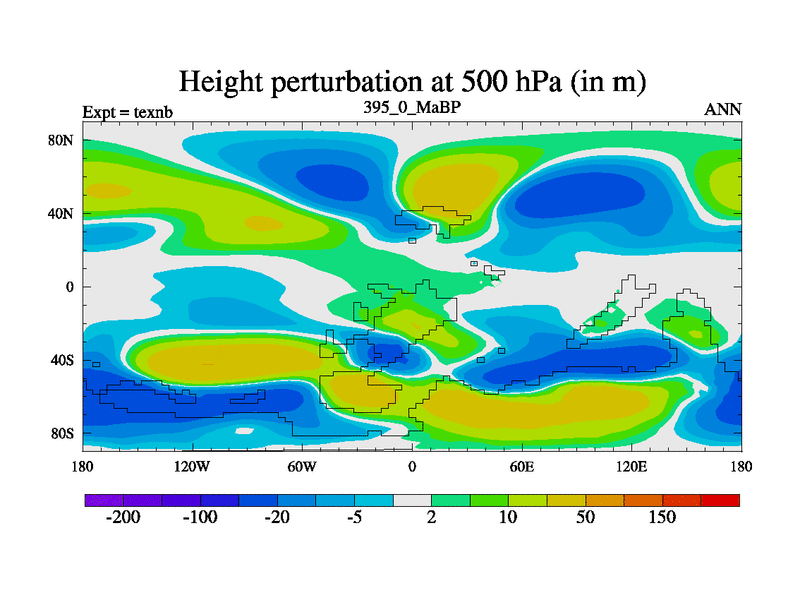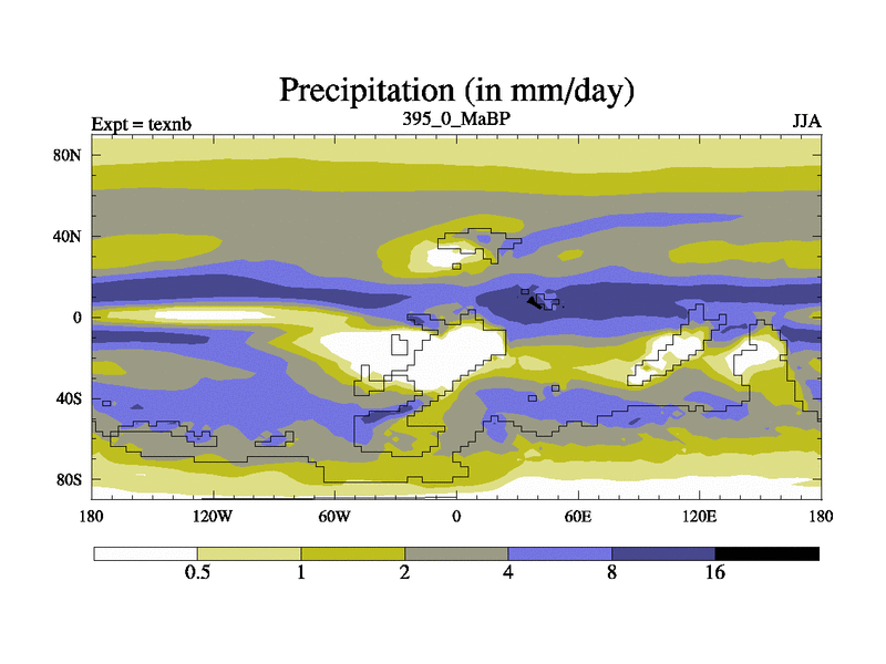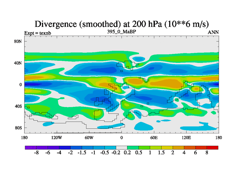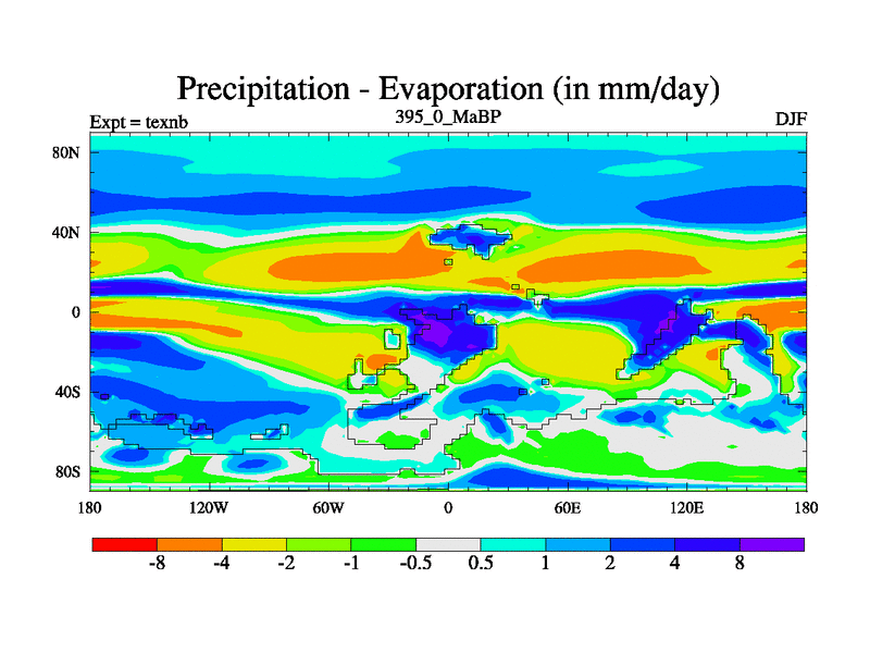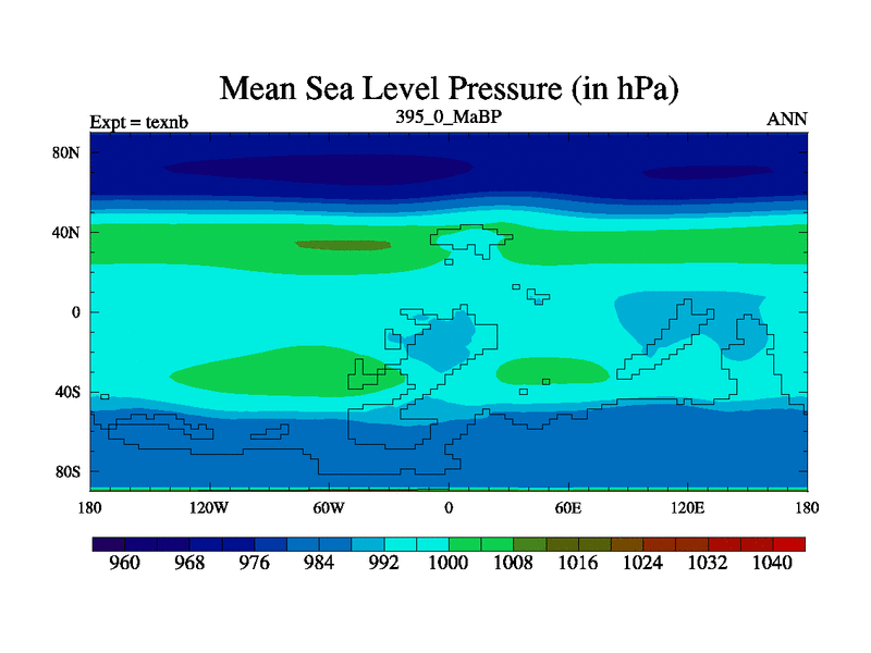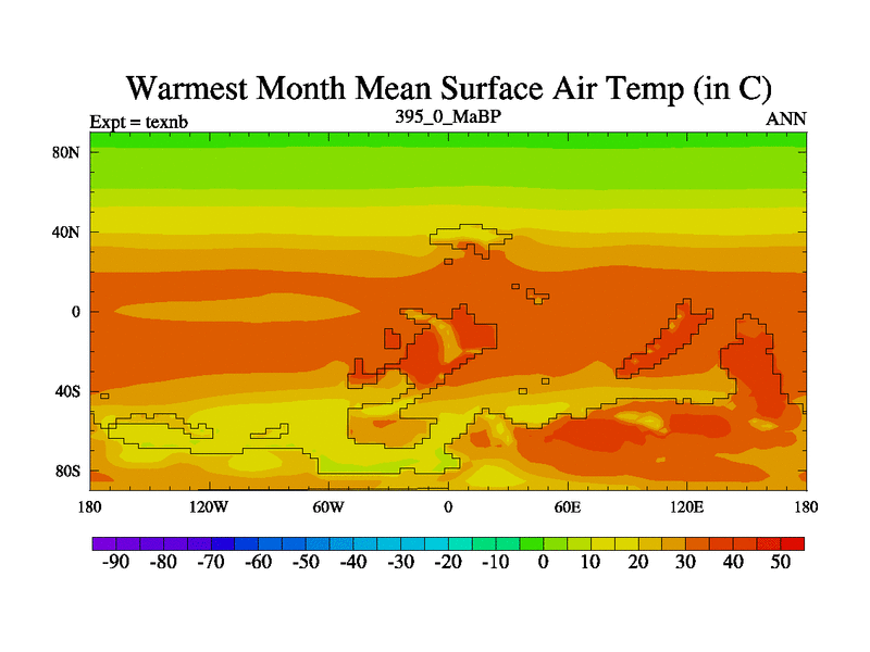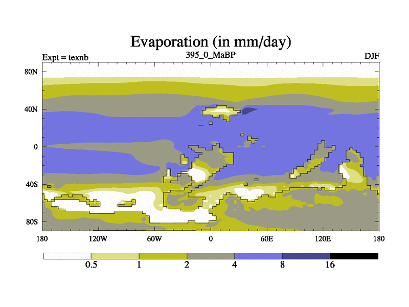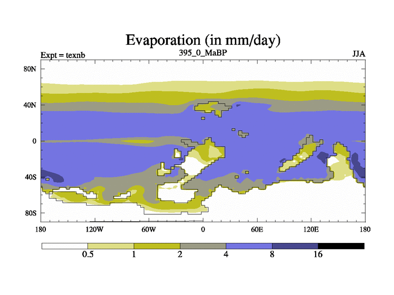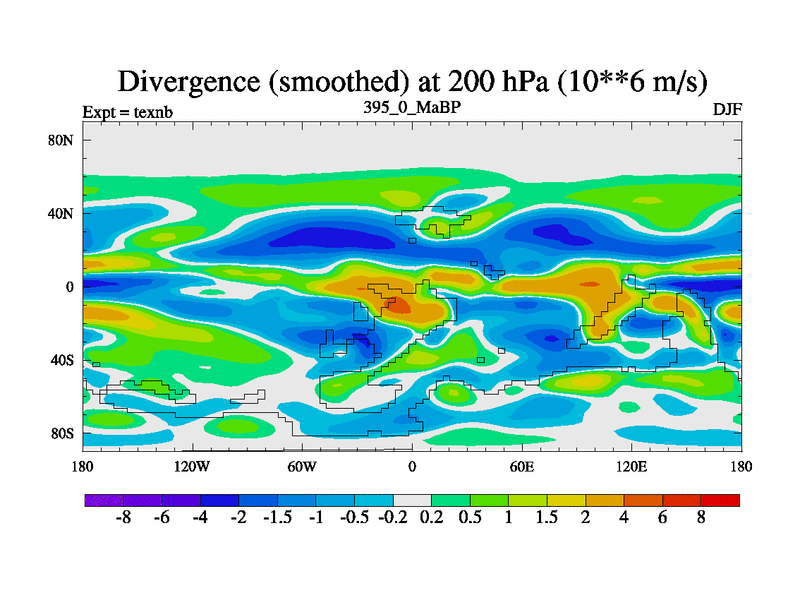 This is the 395.0 Ma simulation using the Scotese palaeogeographies. High output extension of the 5000 year spinup.