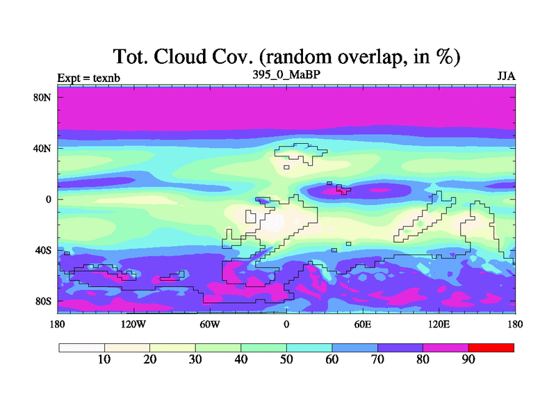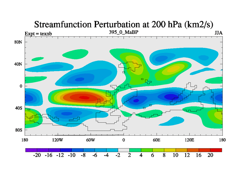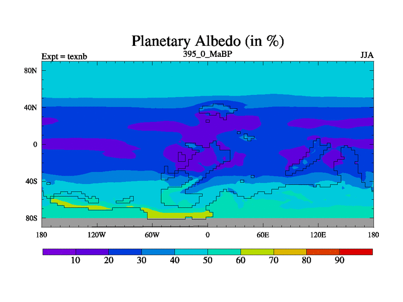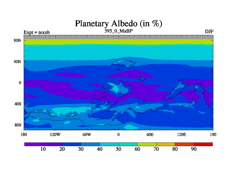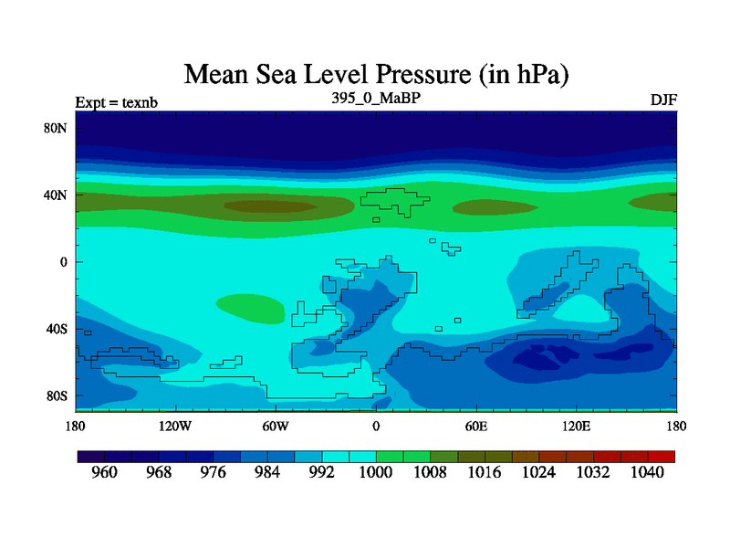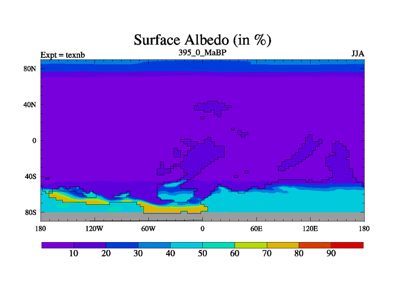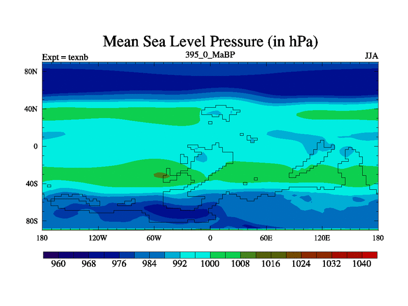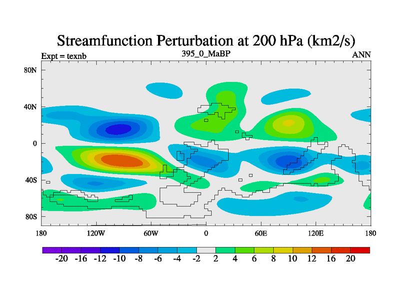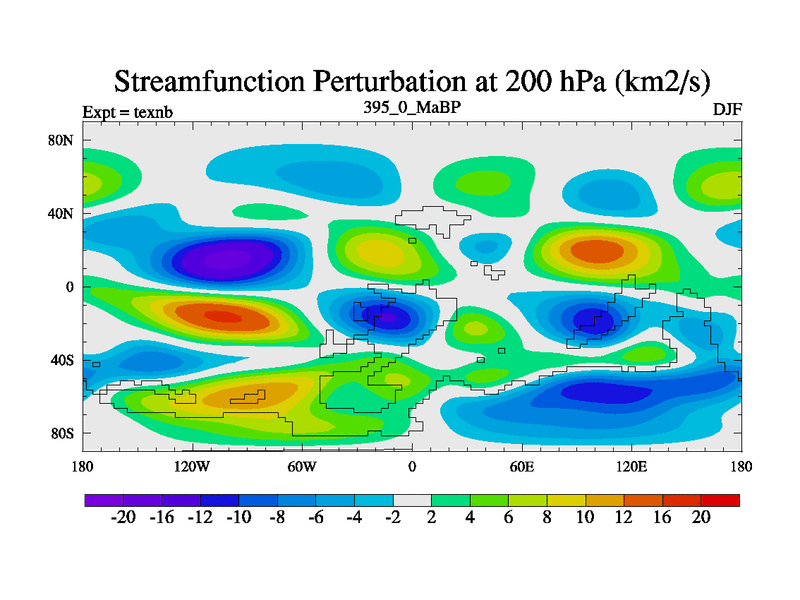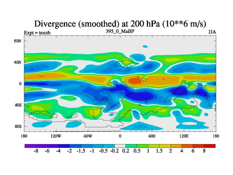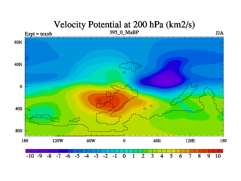 This is the 395.0 Ma simulation using the Scotese palaeogeographies. High output extension of the 5000 year spinup.