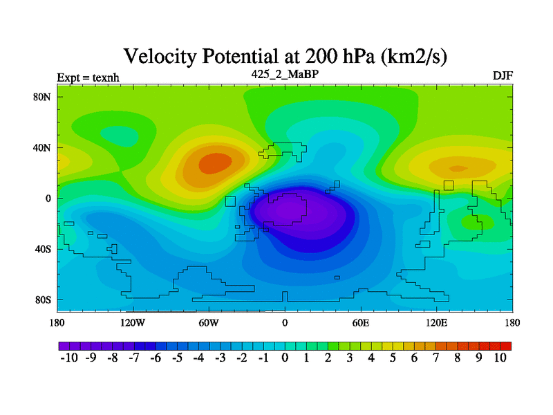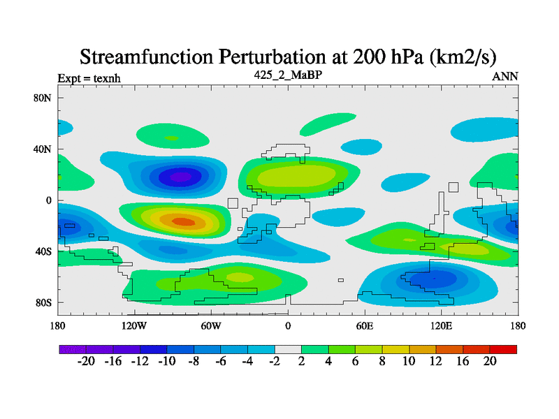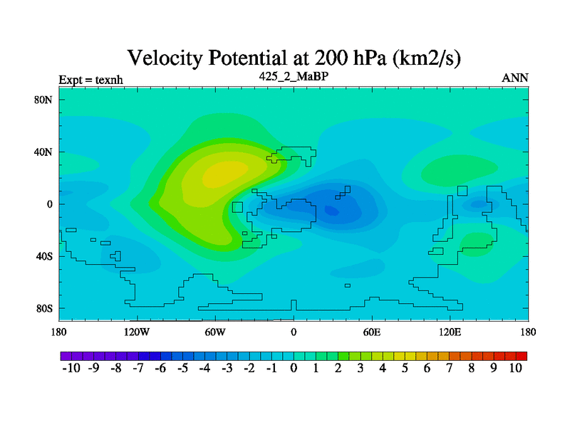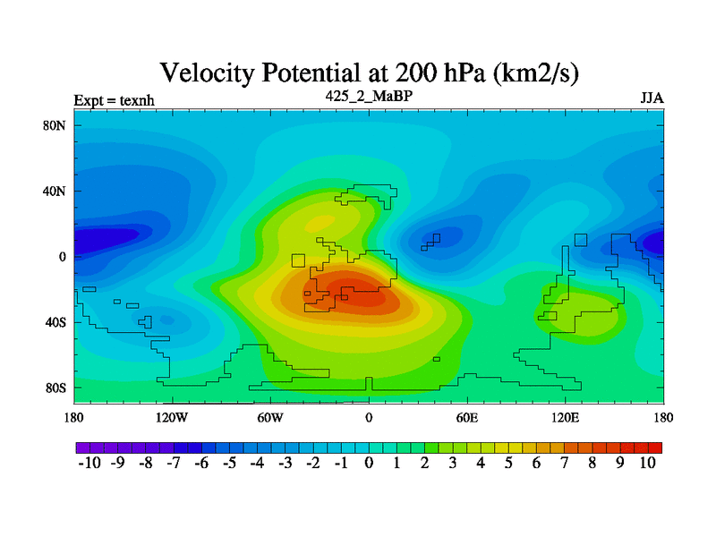 This is the 425.2 Ma simulation using the Scotese palaeogeographies. High output extension of the 5000 year spinup.