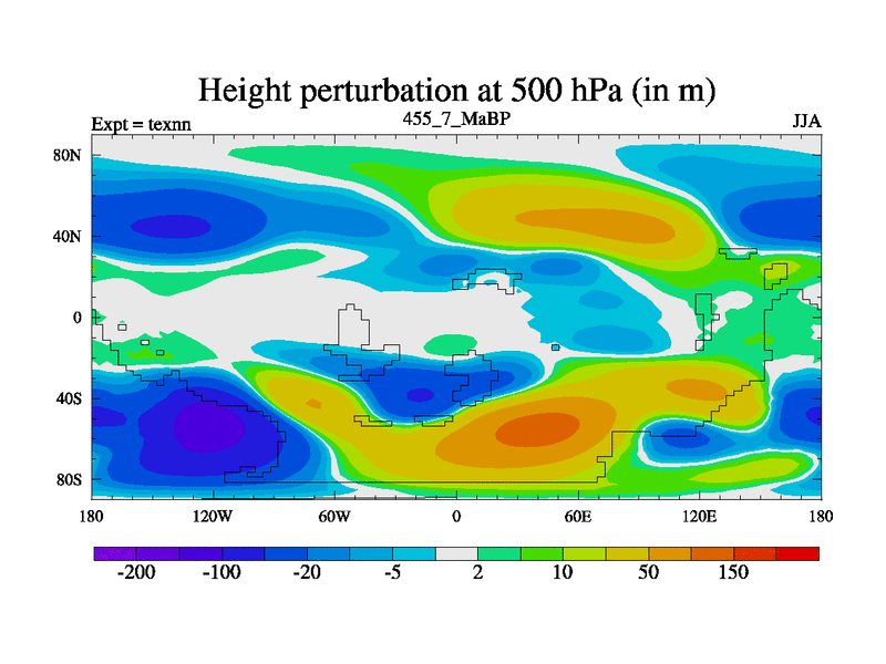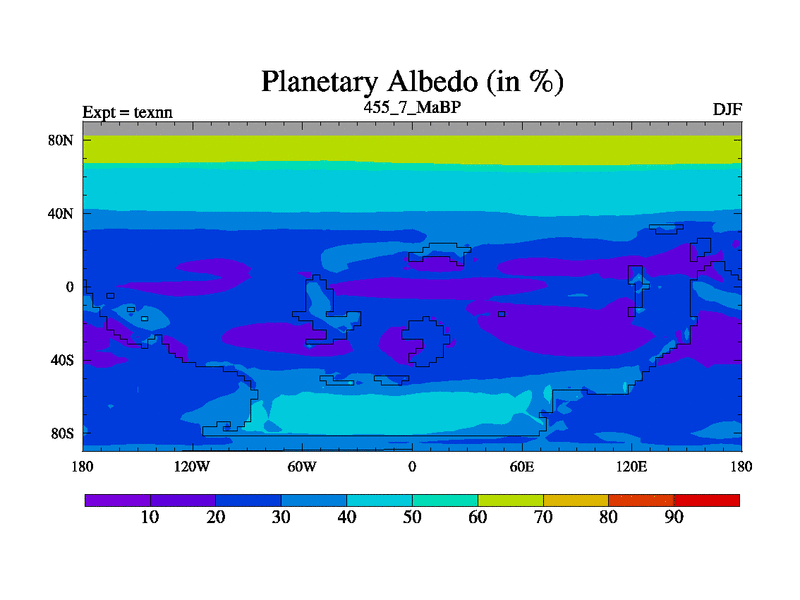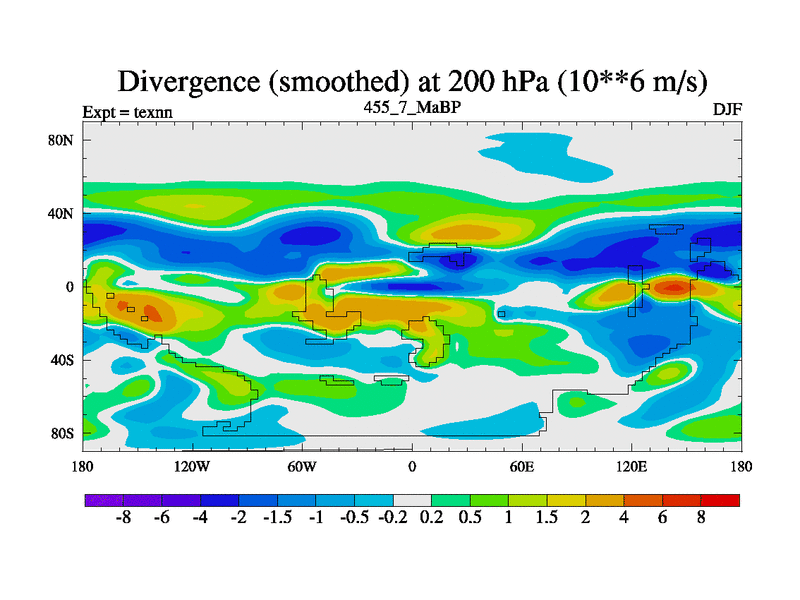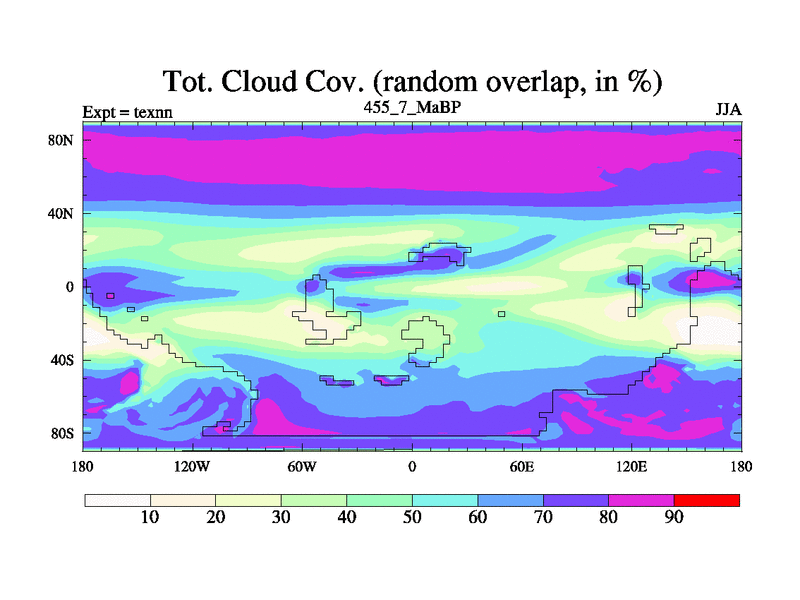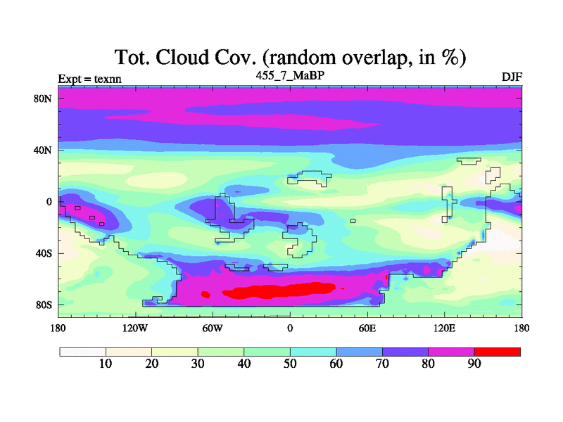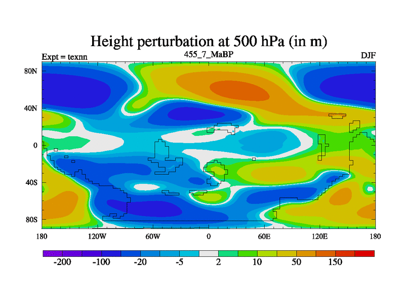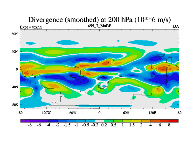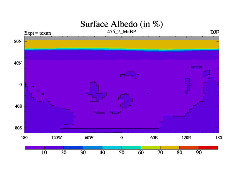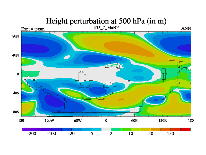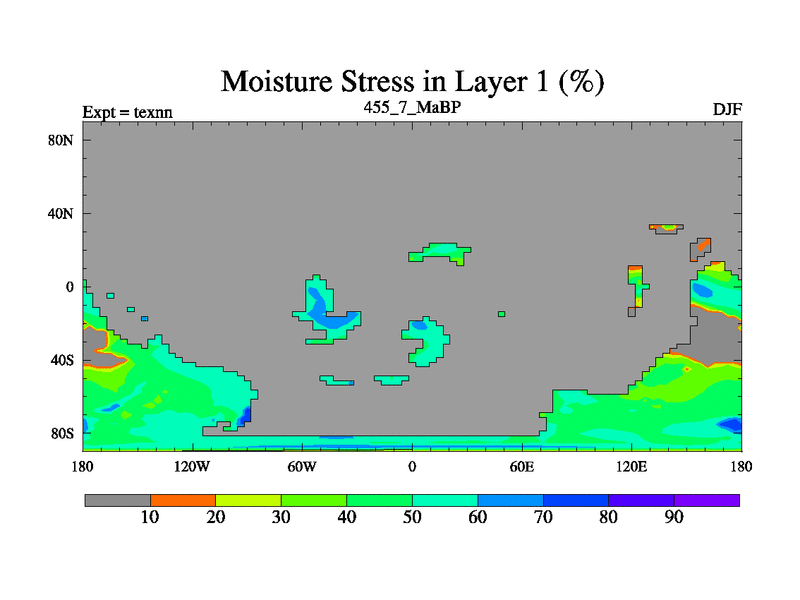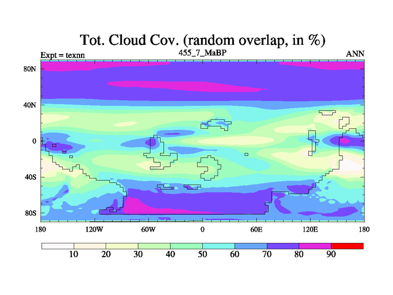 This is the 455.7 Ma simulation using the Scotese palaeogeographies. High output extension of the 5000 year spinup.