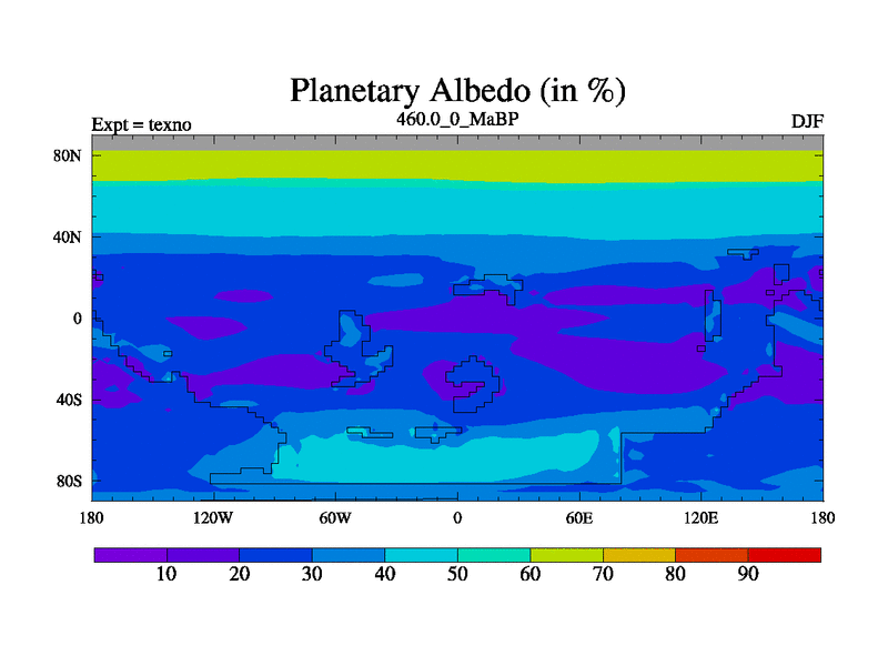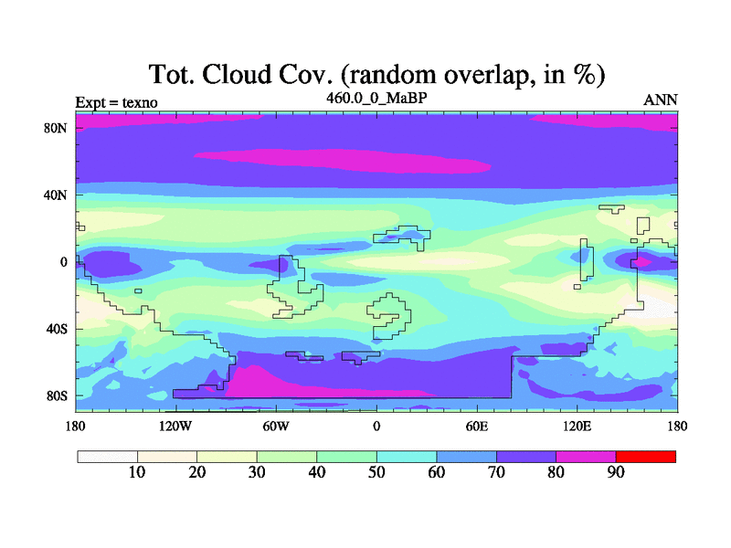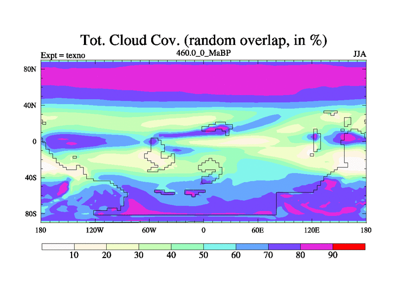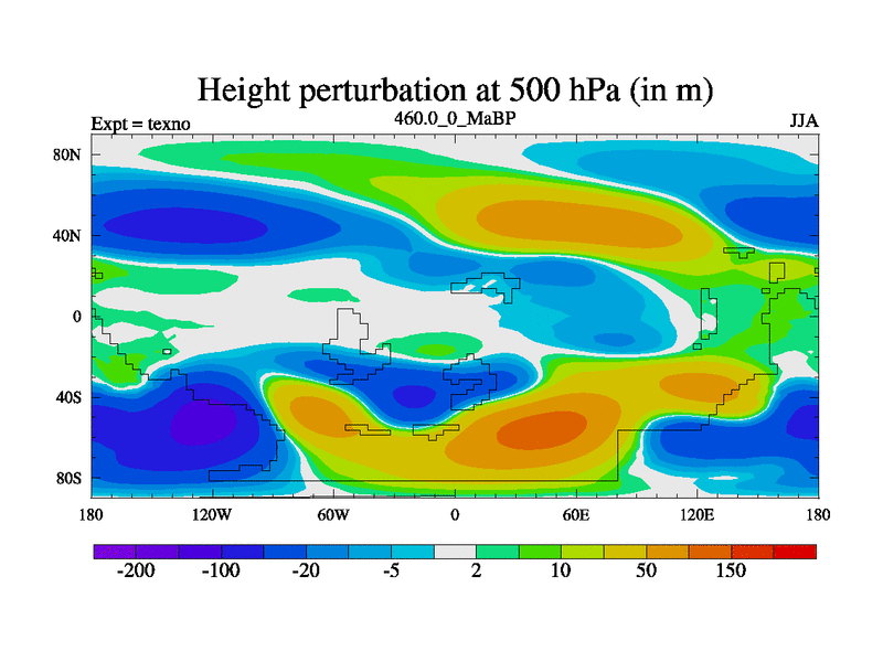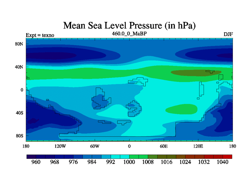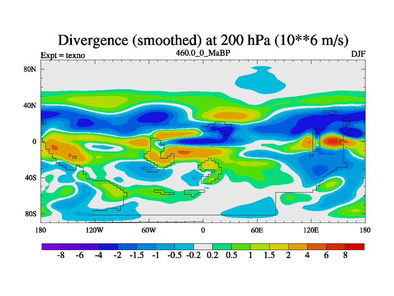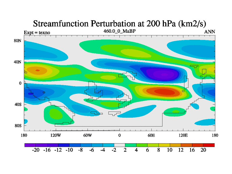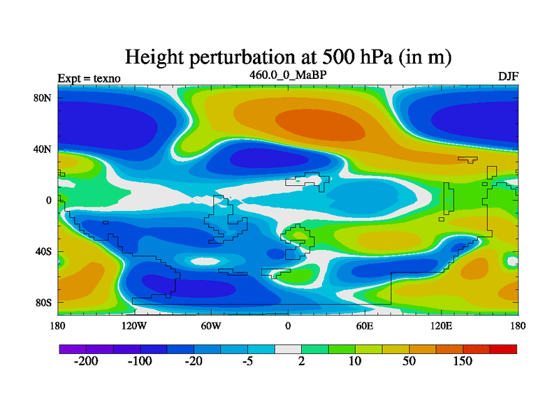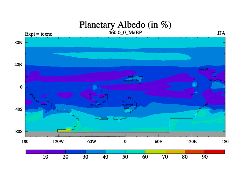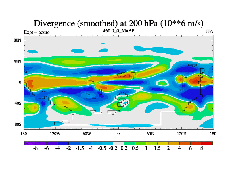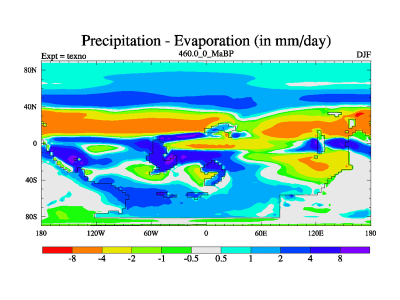 This is the 460.0 Ma simulation using the Scotese palaeogeographies. High output extension of the 5000 year spinup.