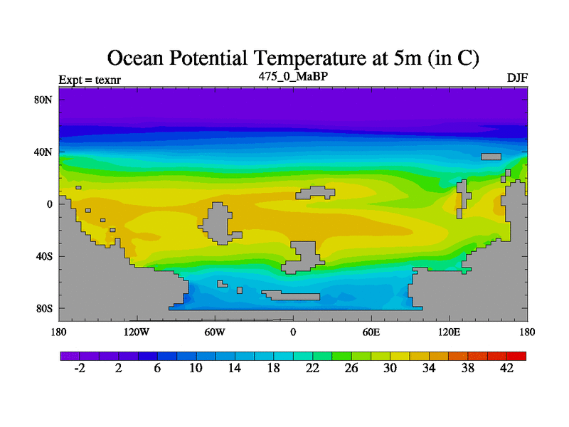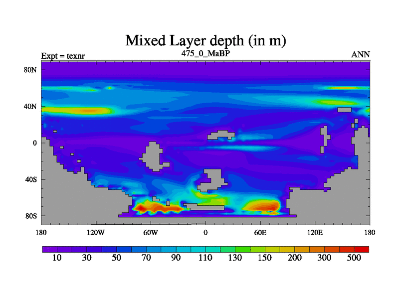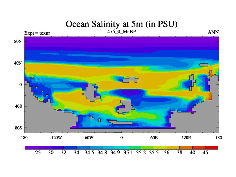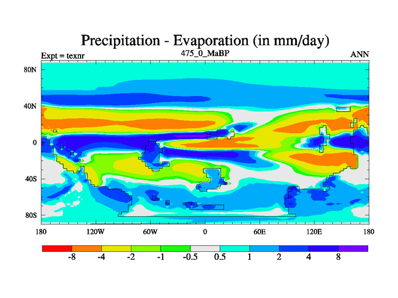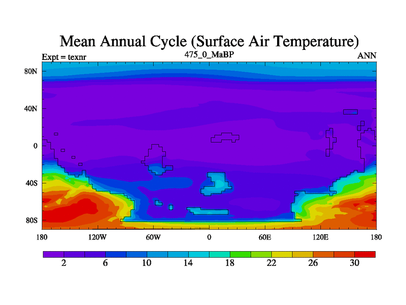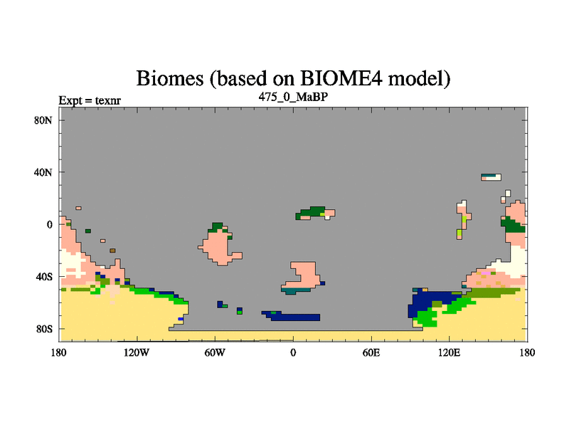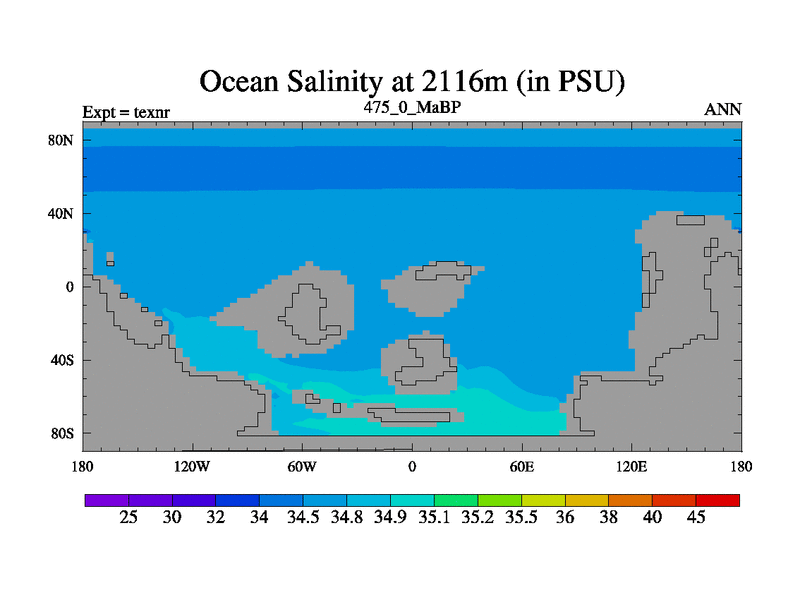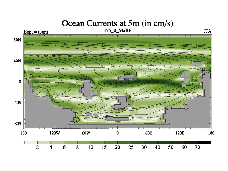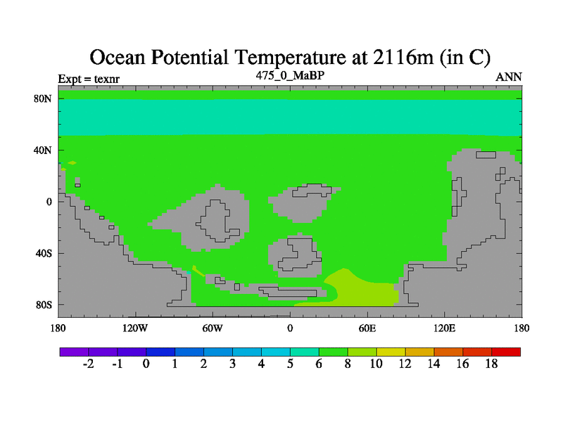 This is the 475.0 Ma simulation using the Scotese palaeogeographies. High output extension of the 5000 year spinup.
