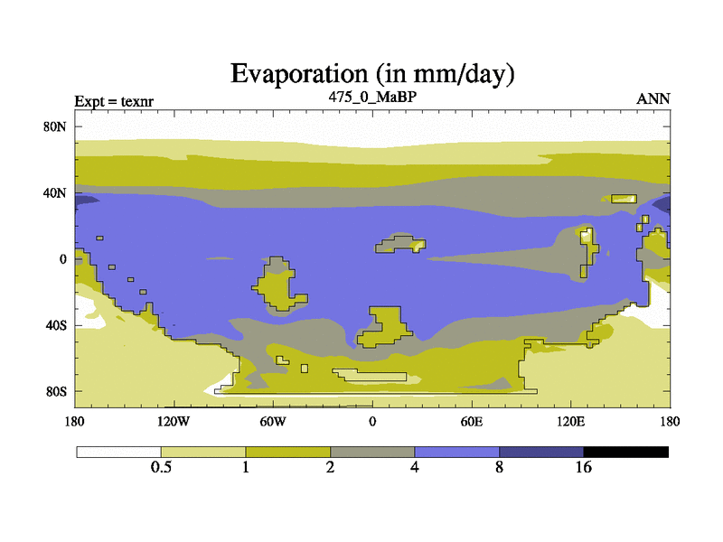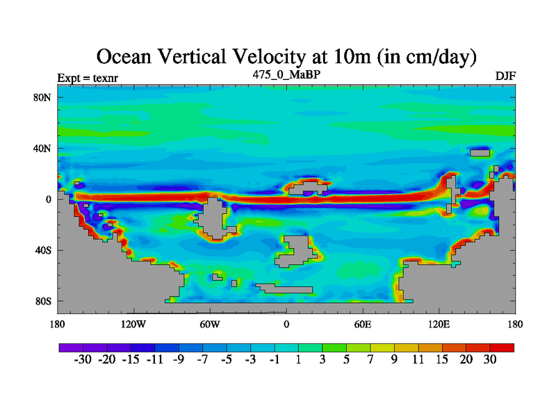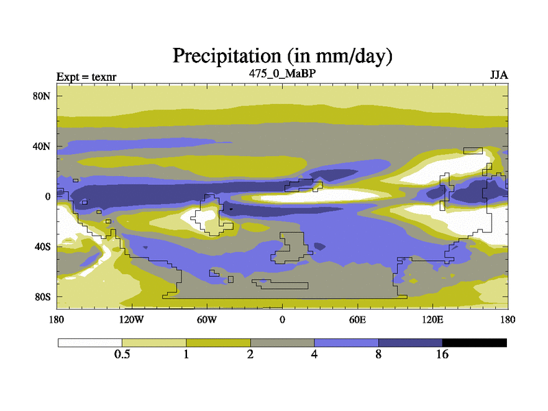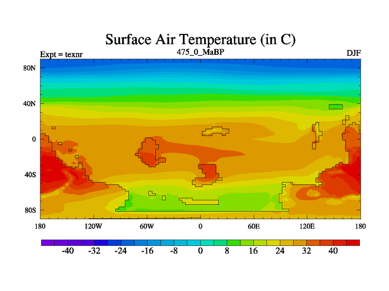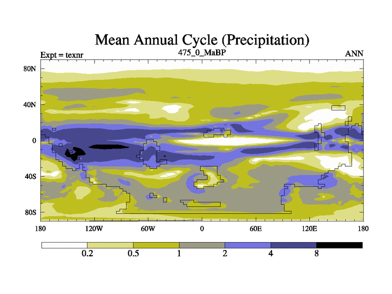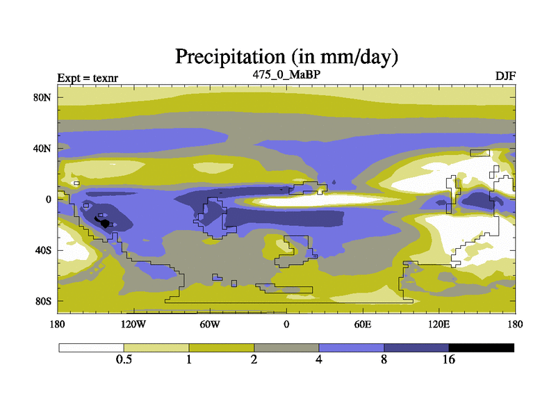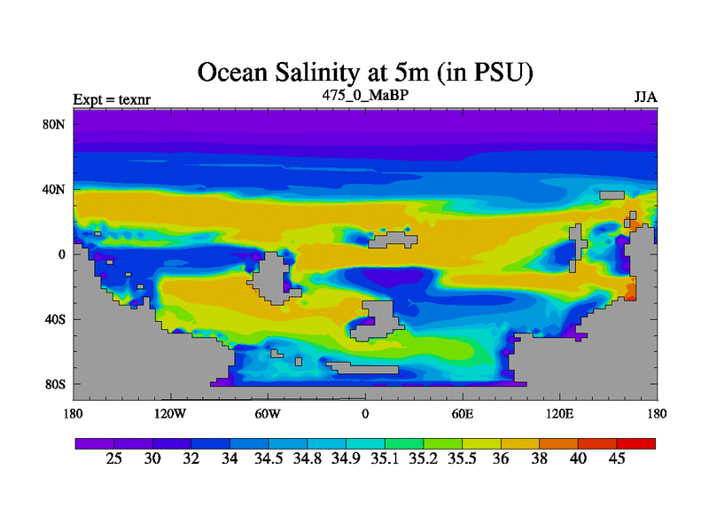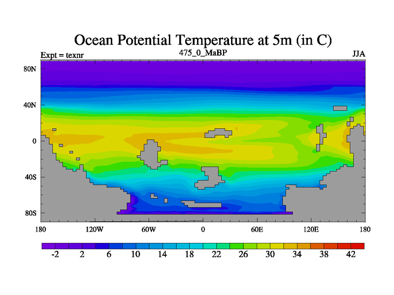 This is the 475.0 Ma simulation using the Scotese palaeogeographies. High output extension of the 5000 year spinup.