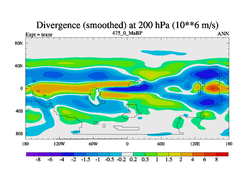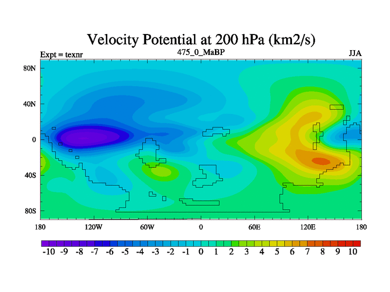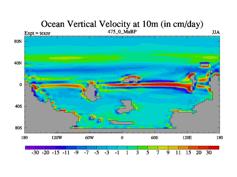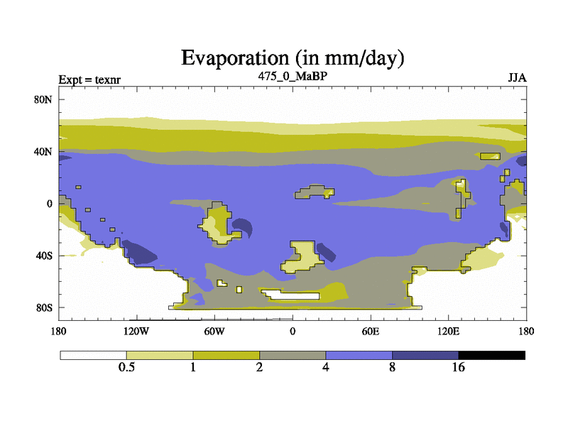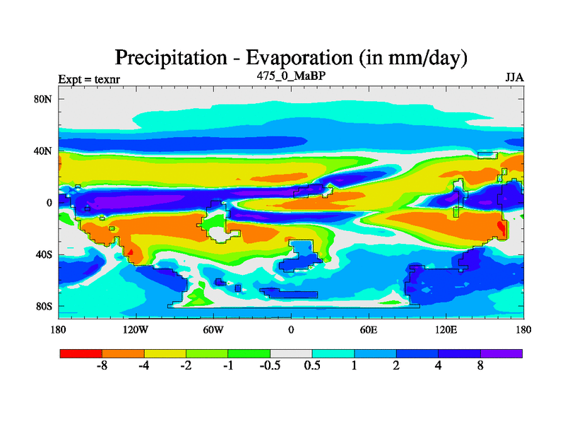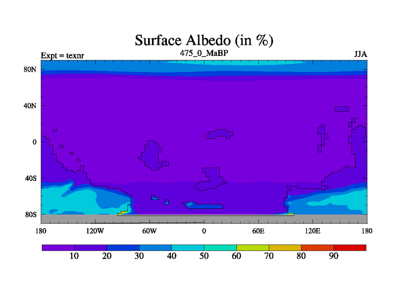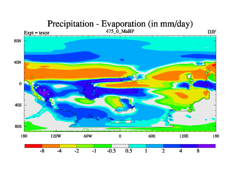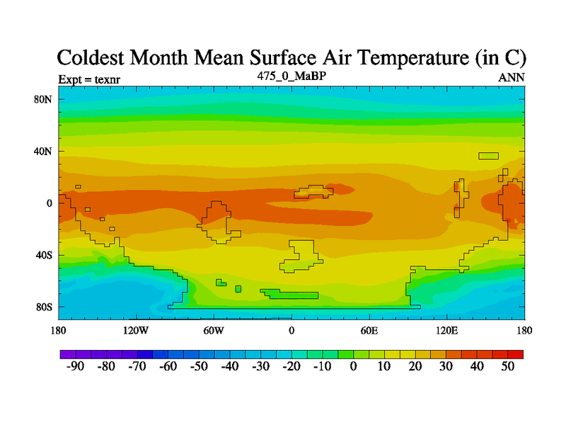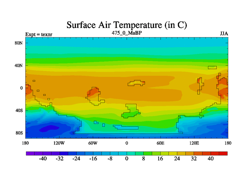 This is the 475.0 Ma simulation using the Scotese palaeogeographies. High output extension of the 5000 year spinup.