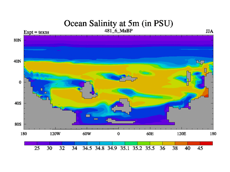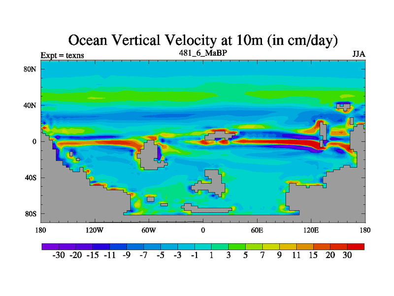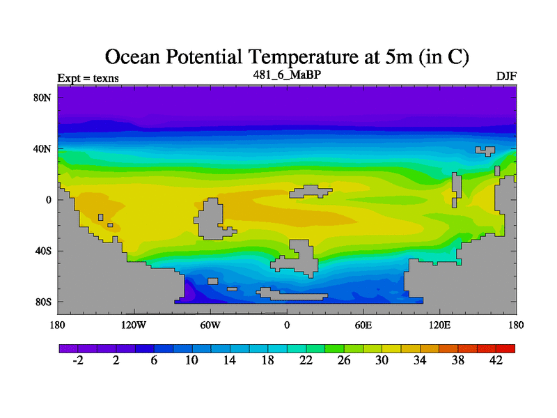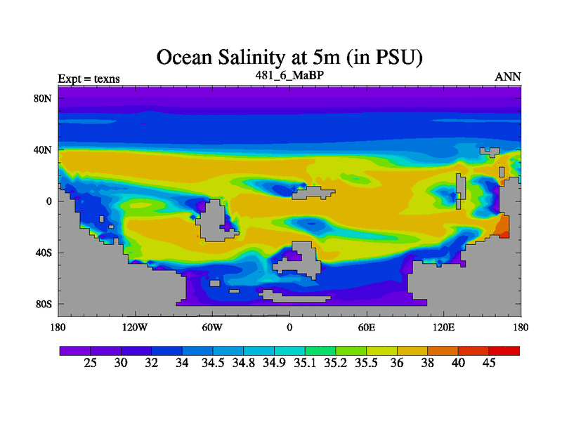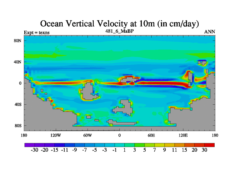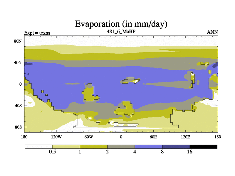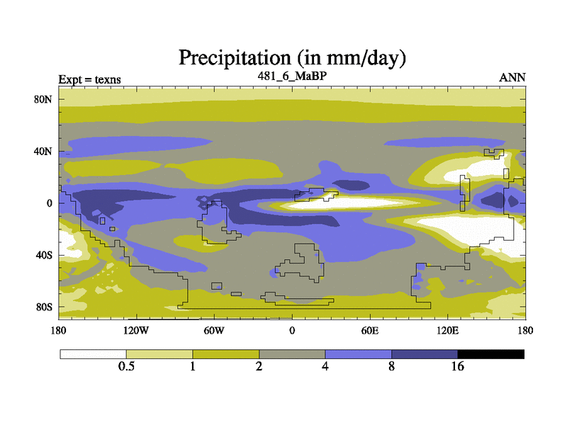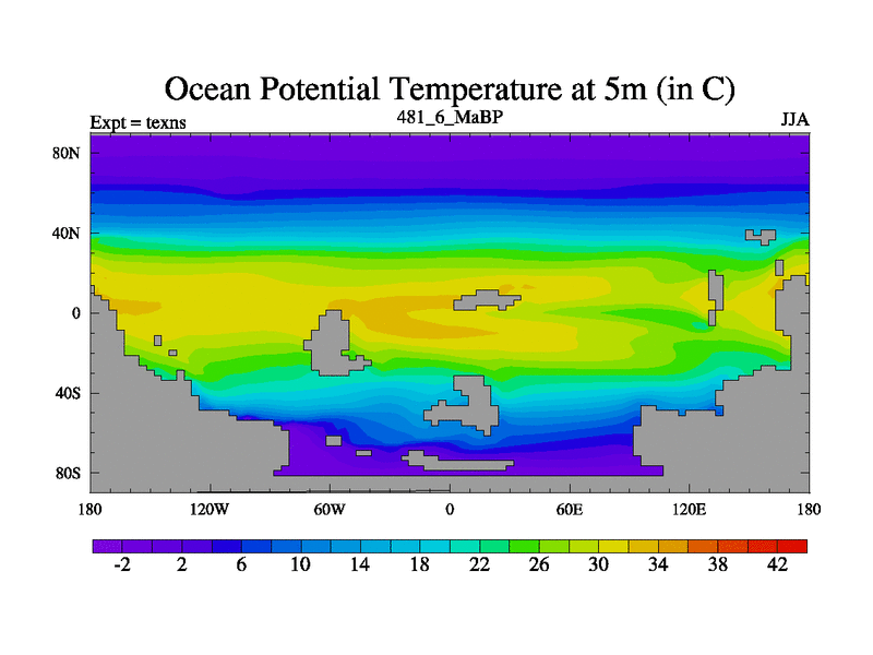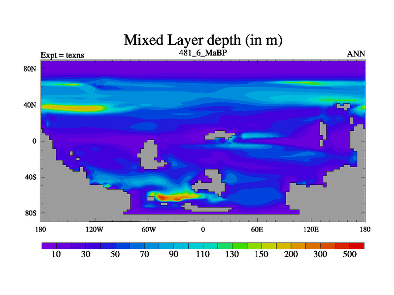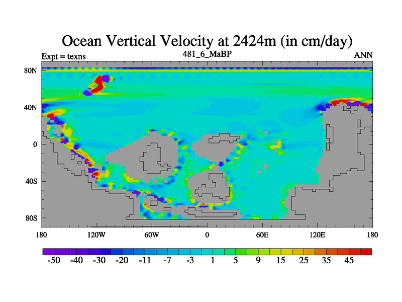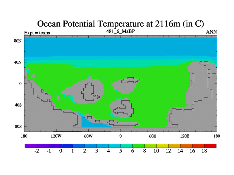 This is the 481.6 Ma simulation using the Scotese palaeogeographies. High output extension of the 5000 year spinup.