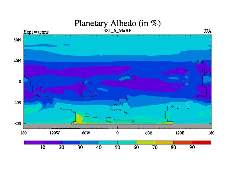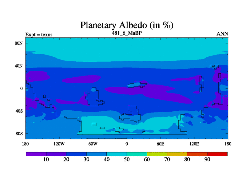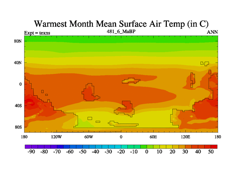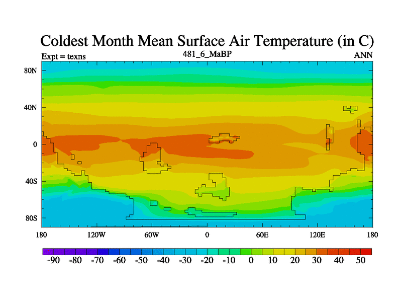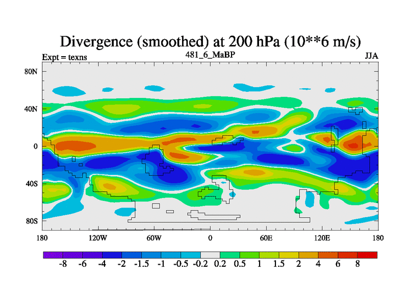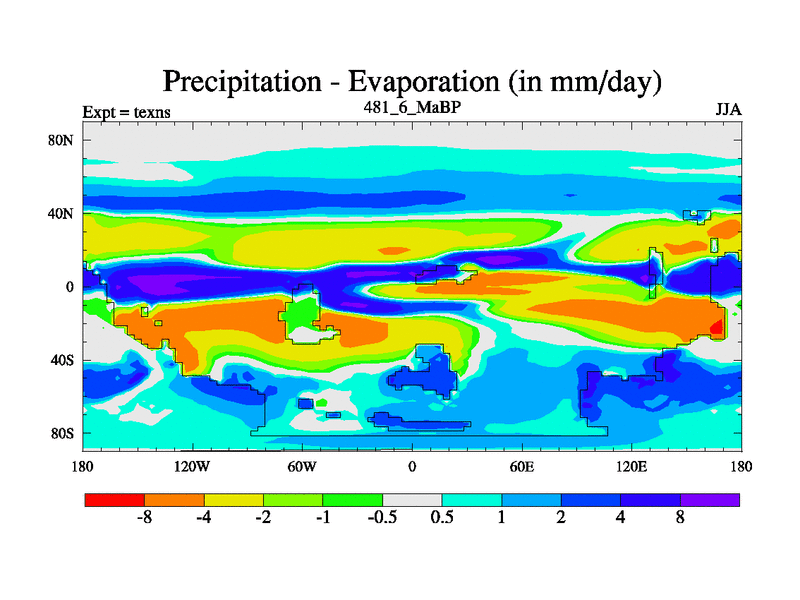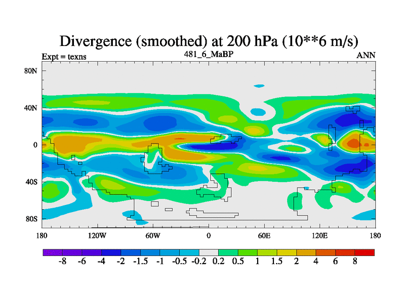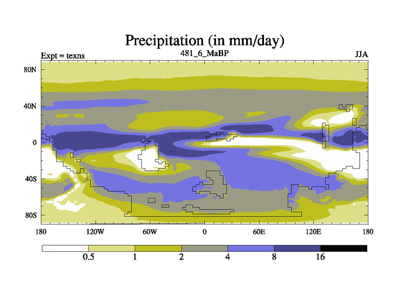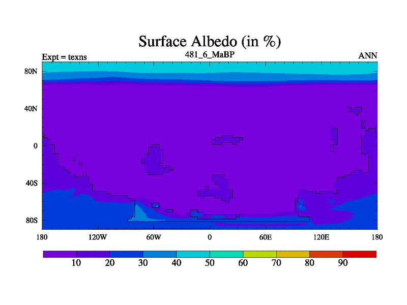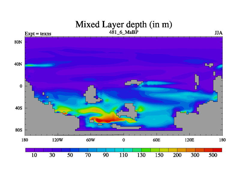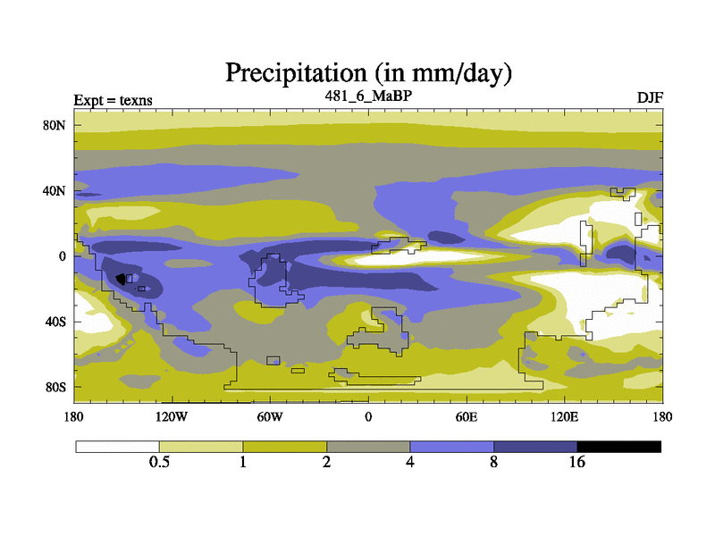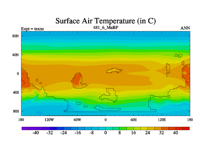 This is the 481.6 Ma simulation using the Scotese palaeogeographies. High output extension of the 5000 year spinup.