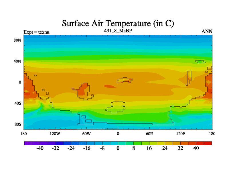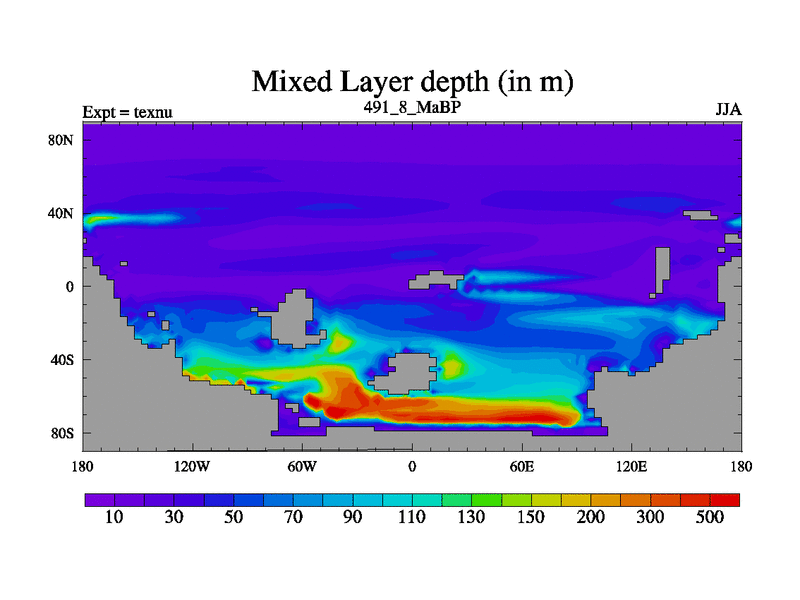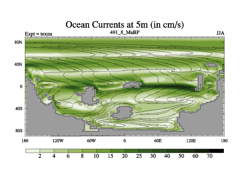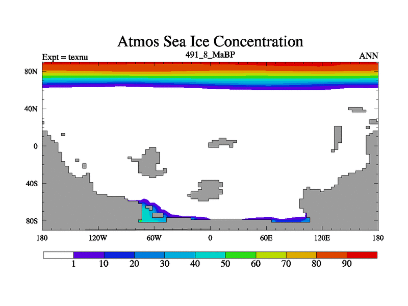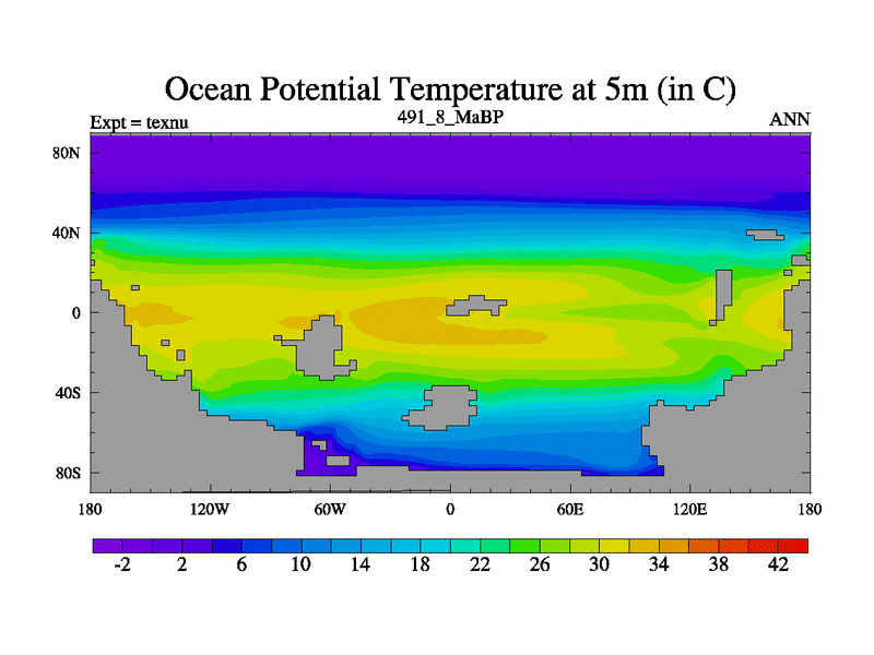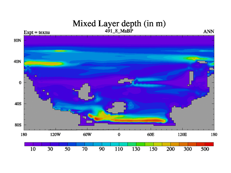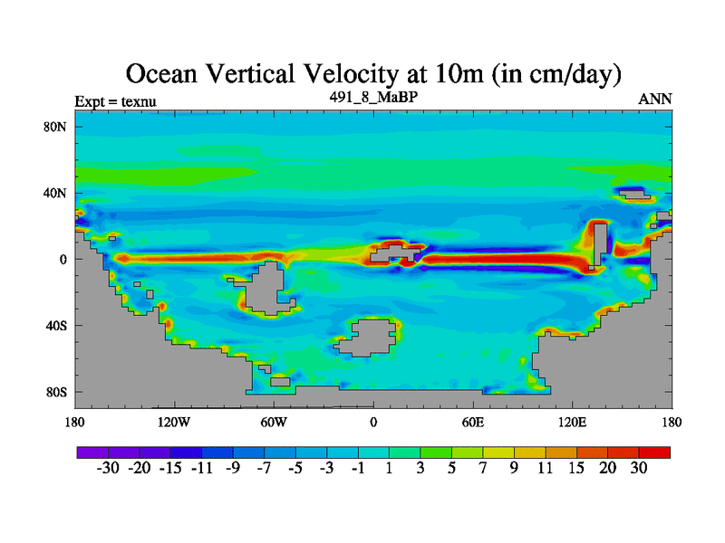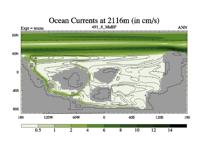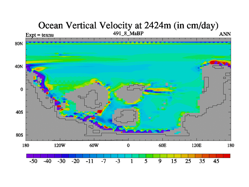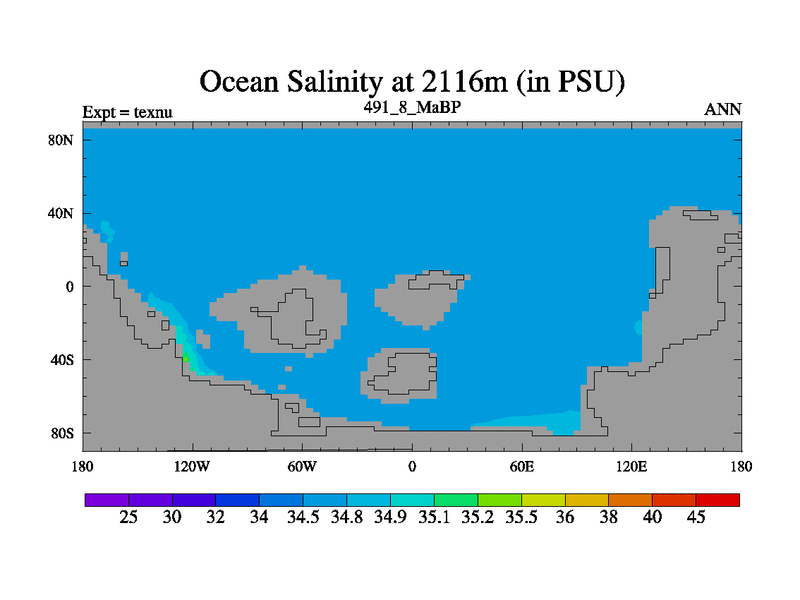 This is the 491.8 Ma simulation using the Scotese palaeogeographies. High output extension of the 5000 year spinup.
