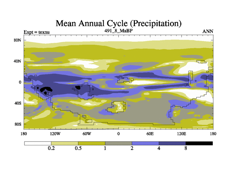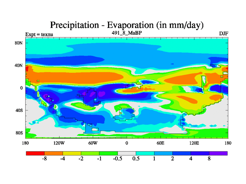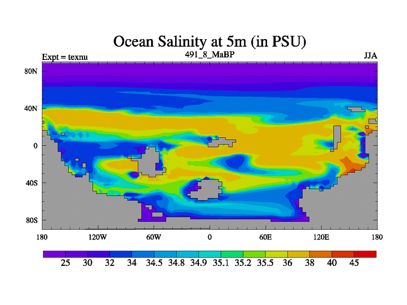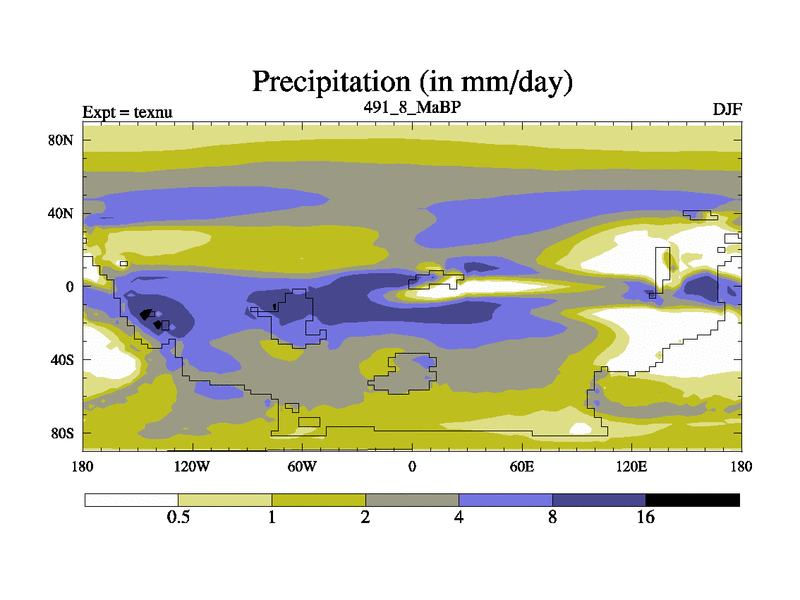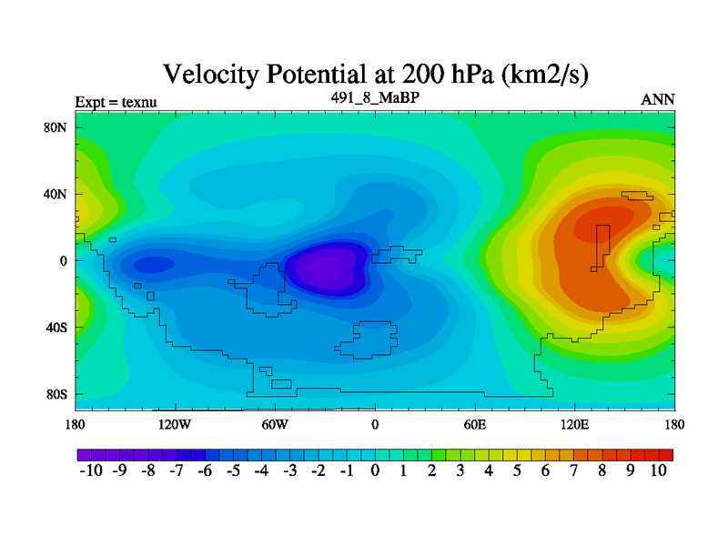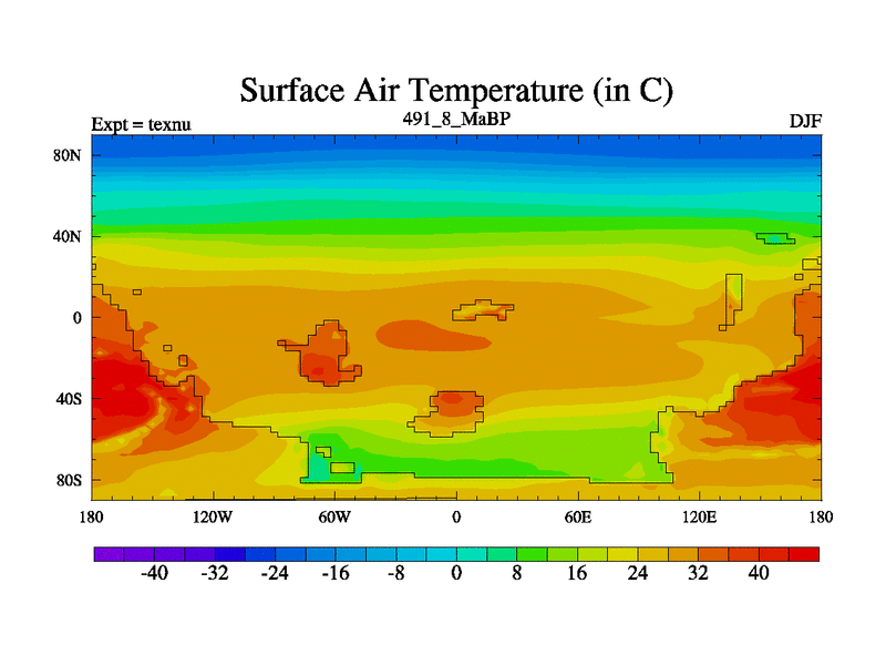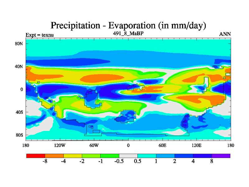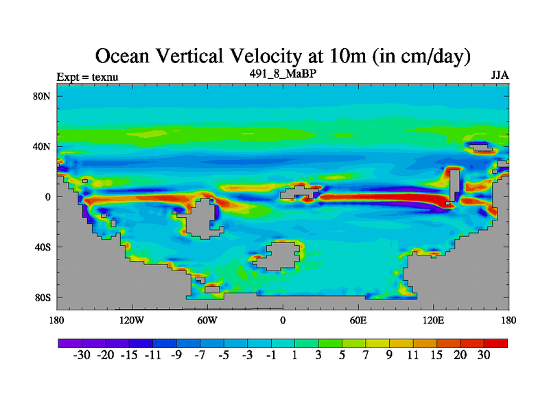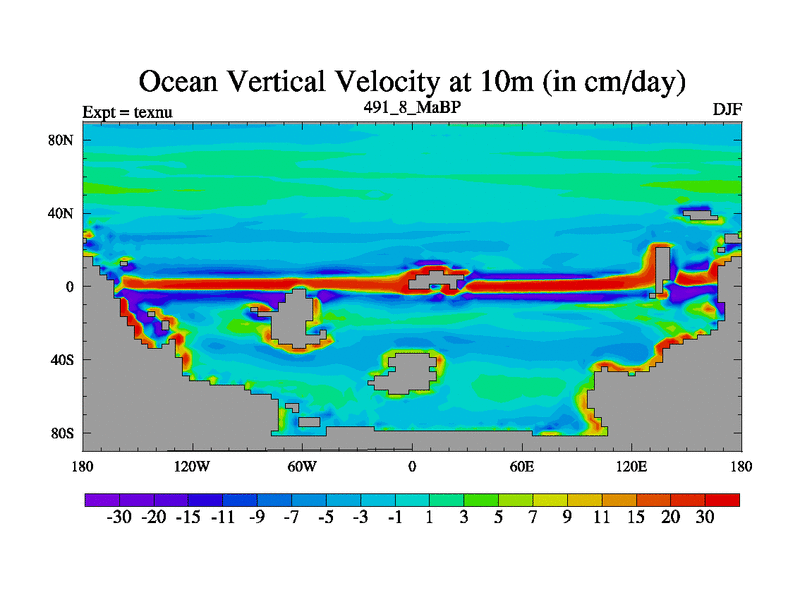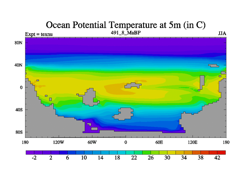 This is the 491.8 Ma simulation using the Scotese palaeogeographies. High output extension of the 5000 year spinup.