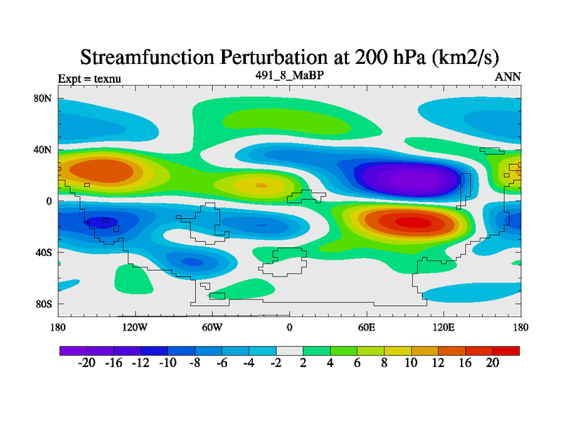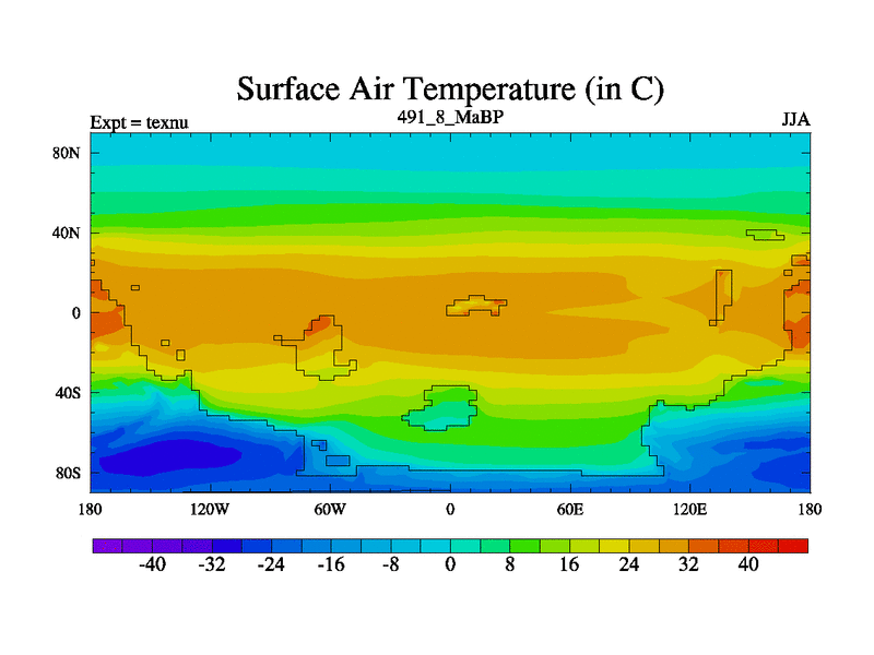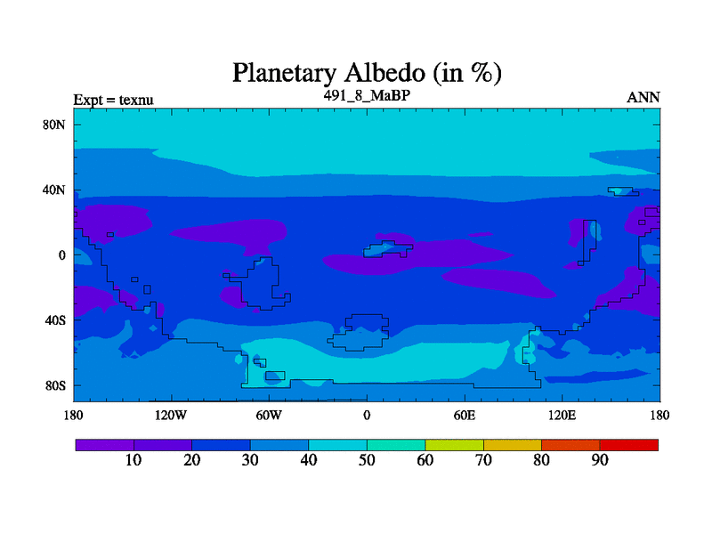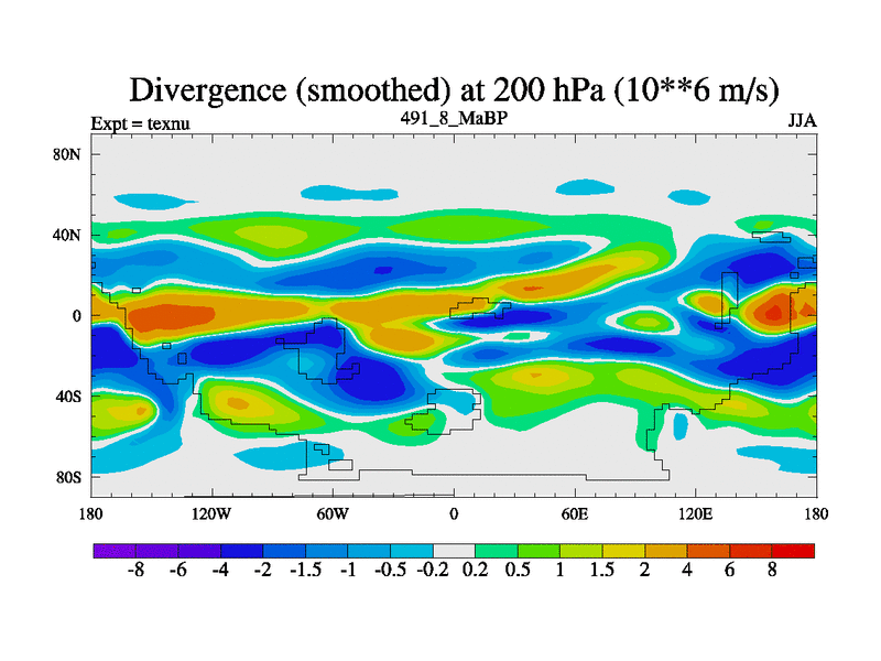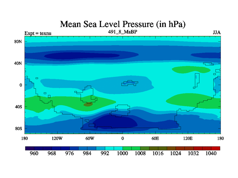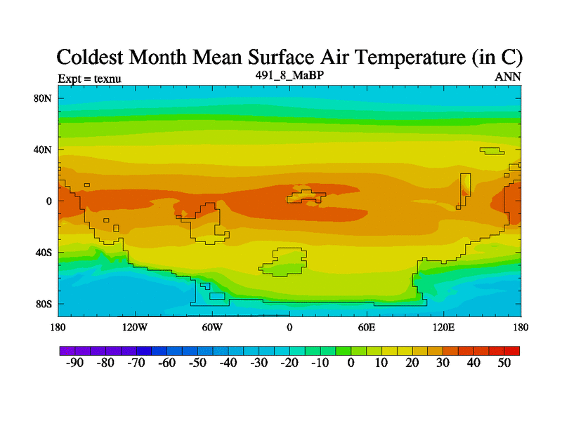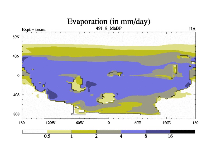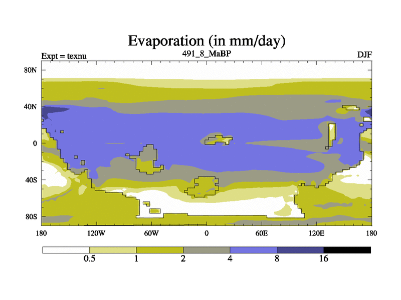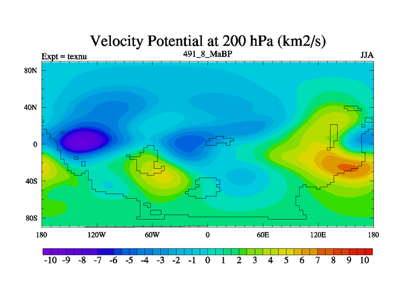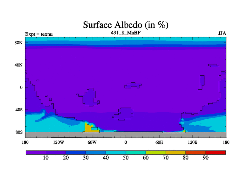 This is the 491.8 Ma simulation using the Scotese palaeogeographies. High output extension of the 5000 year spinup.