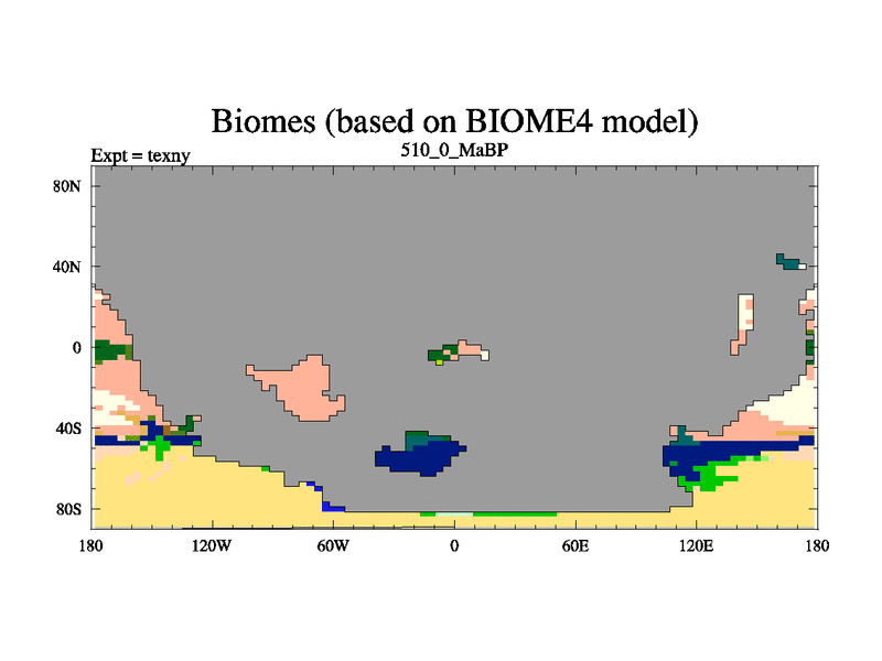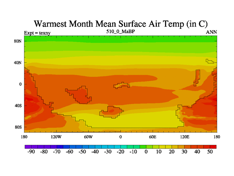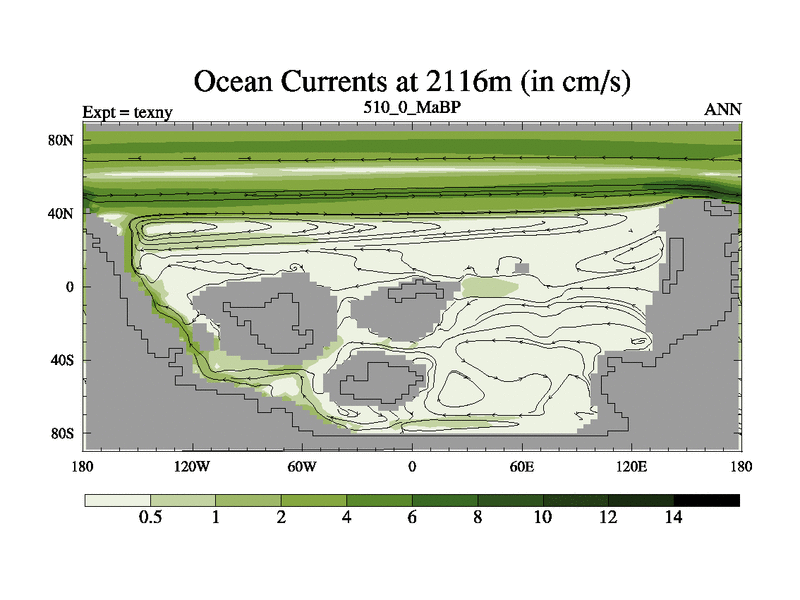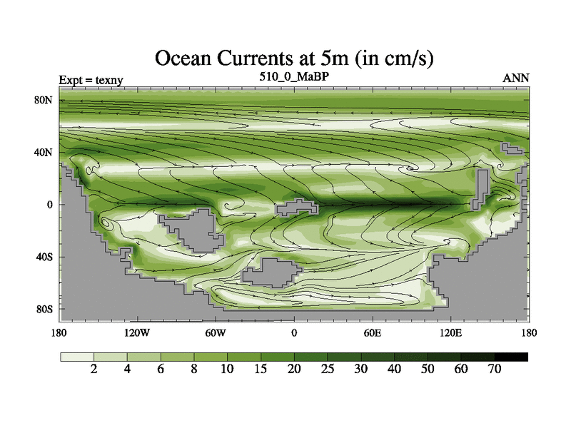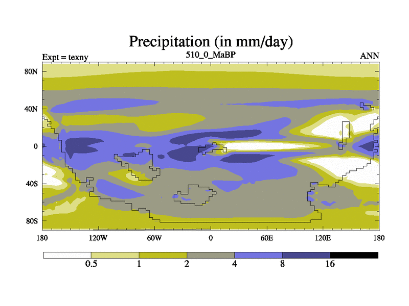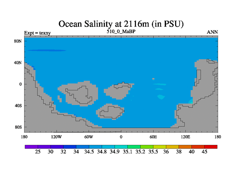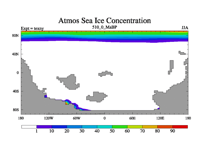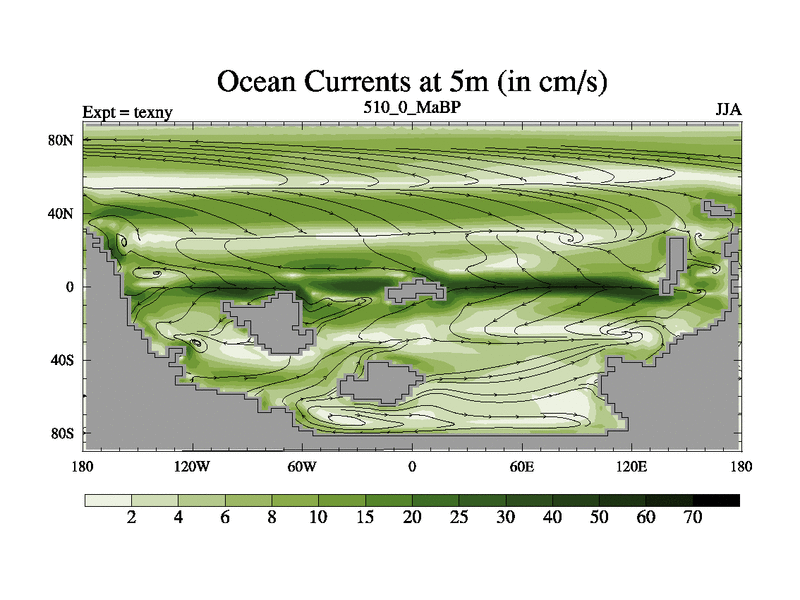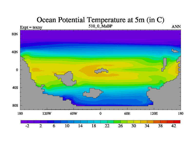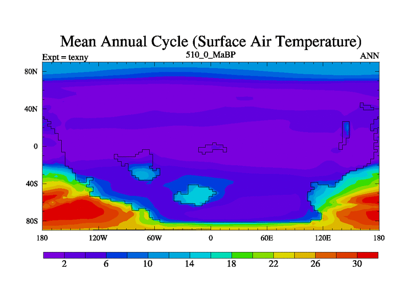 This is the 510.0 Ma simulation using the Scotese palaeogeographies. High output extension of the 5000 year spinup.