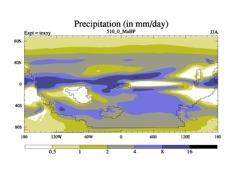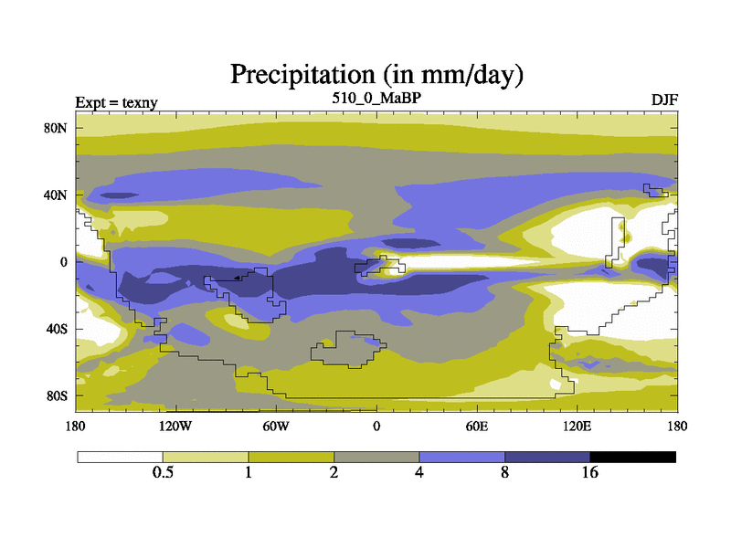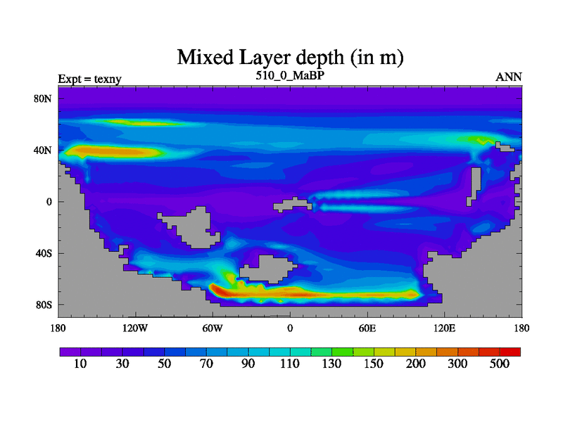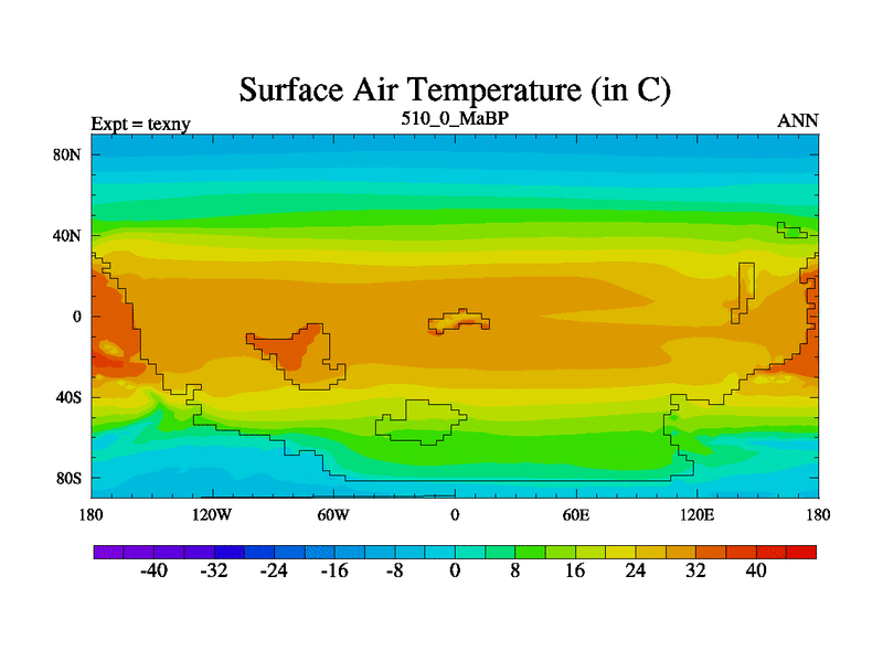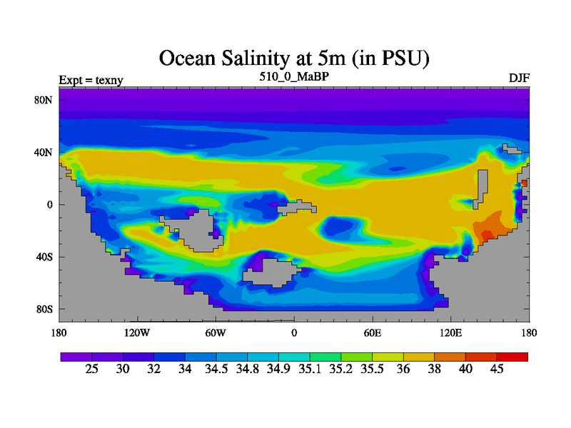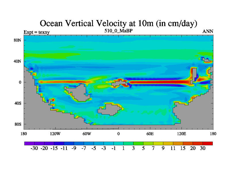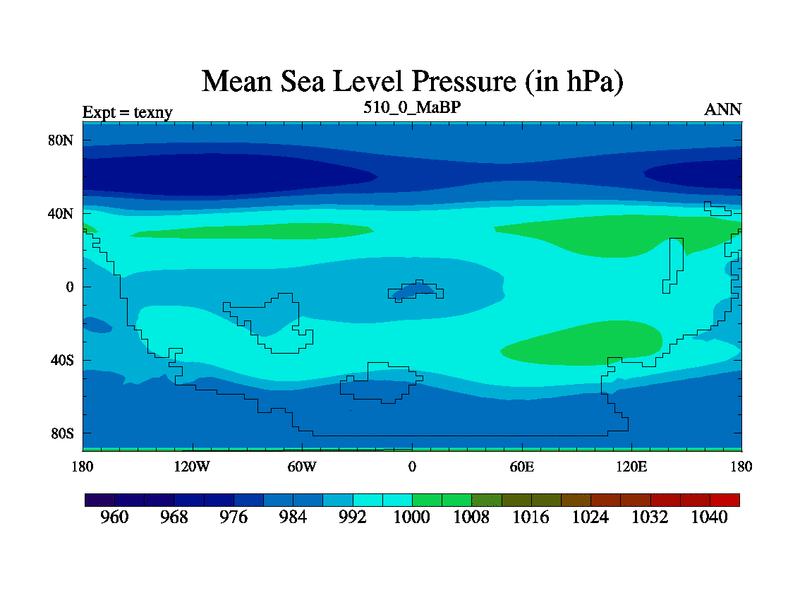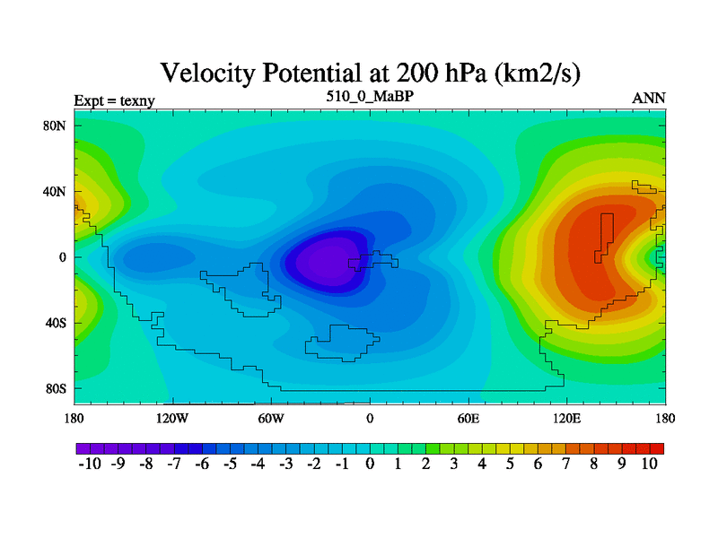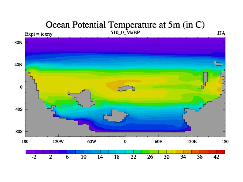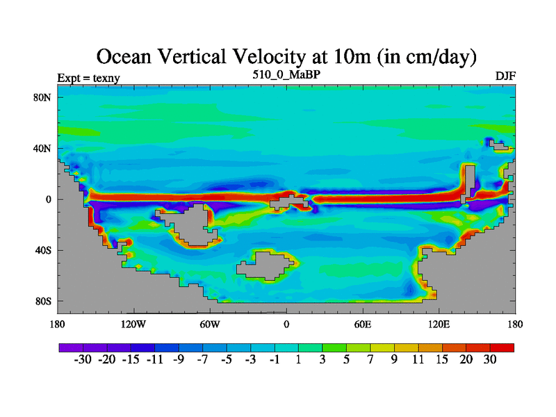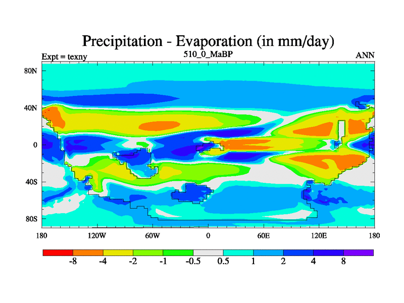 This is the 510.0 Ma simulation using the Scotese palaeogeographies. High output extension of the 5000 year spinup.