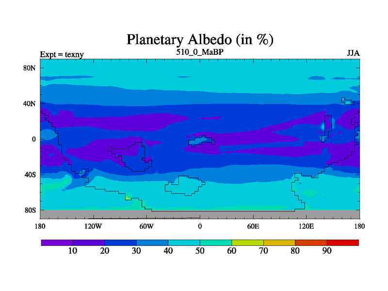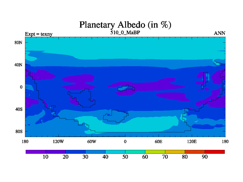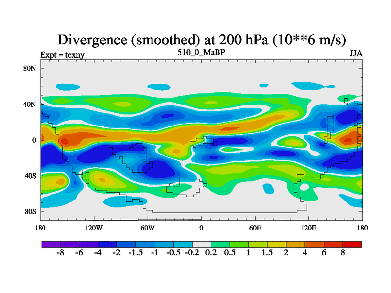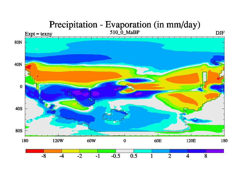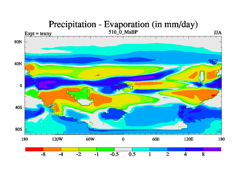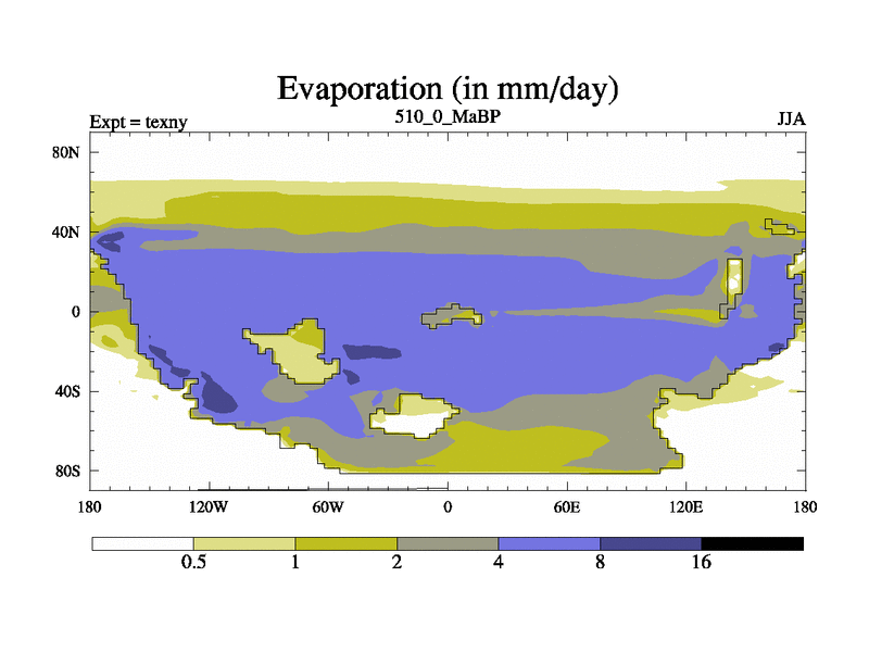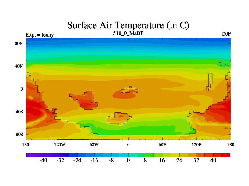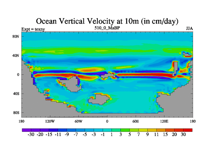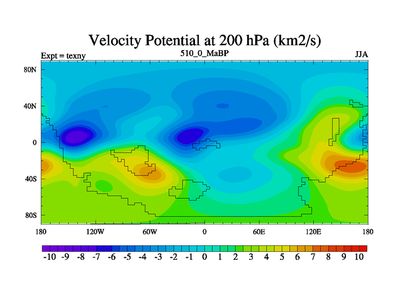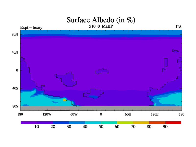 This is the 510.0 Ma simulation using the Scotese palaeogeographies. High output extension of the 5000 year spinup.