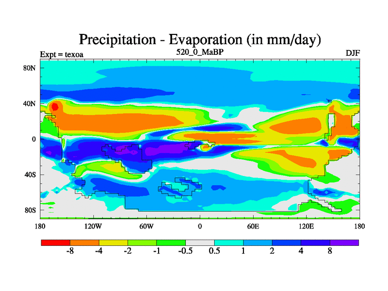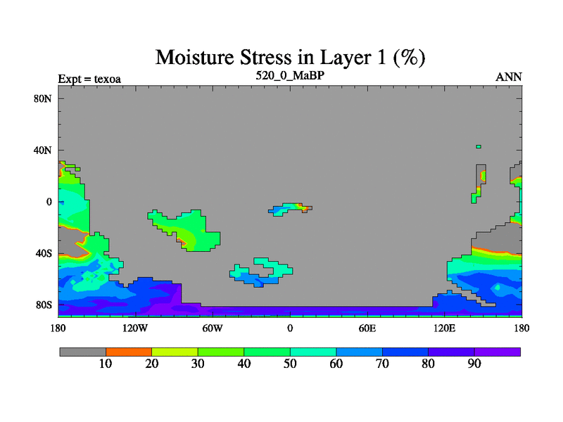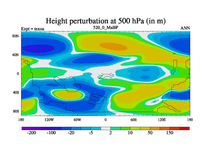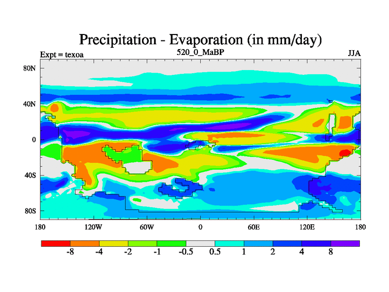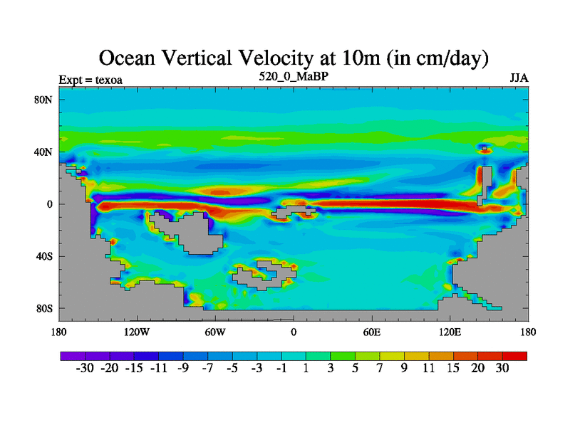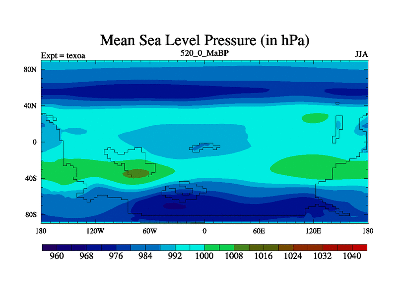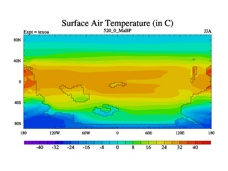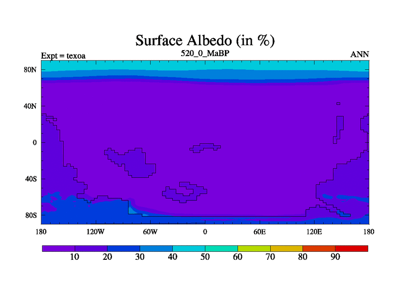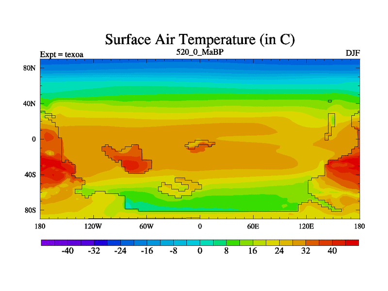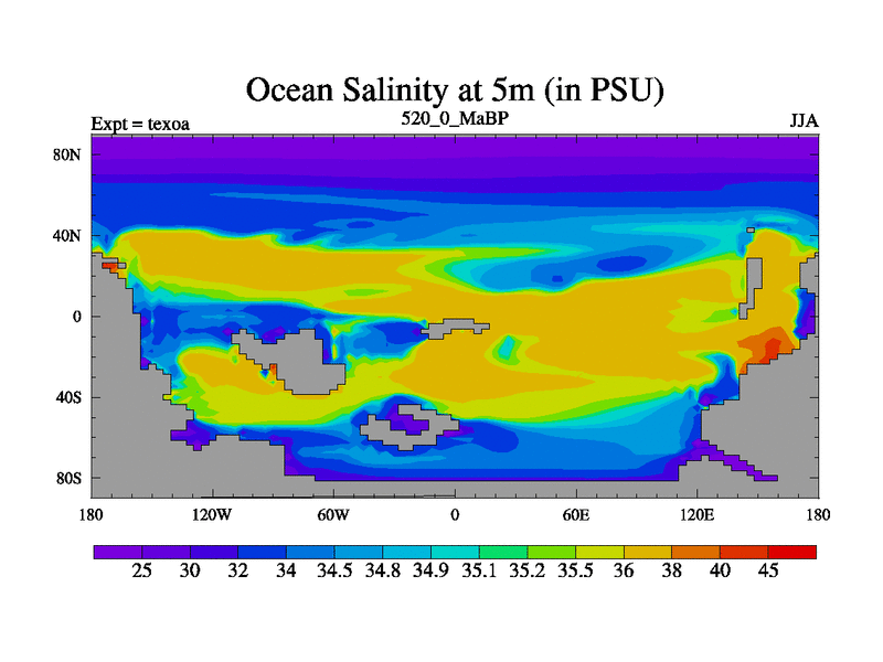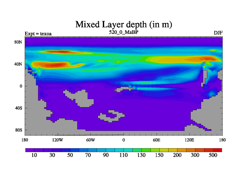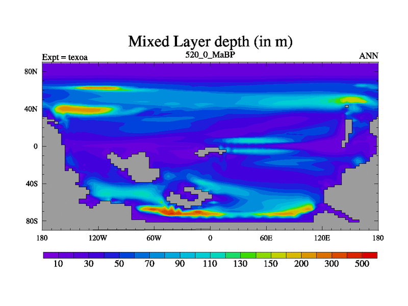 This is the 520.0 Ma simulation using the Scotese palaeogeographies. High output extension of the 5000 year spinup.