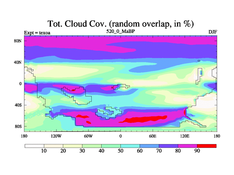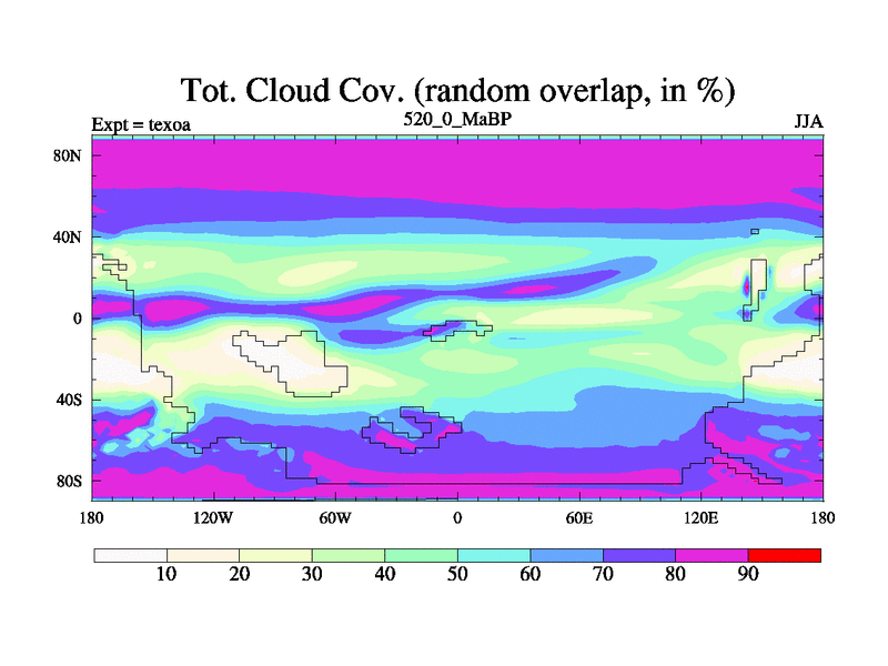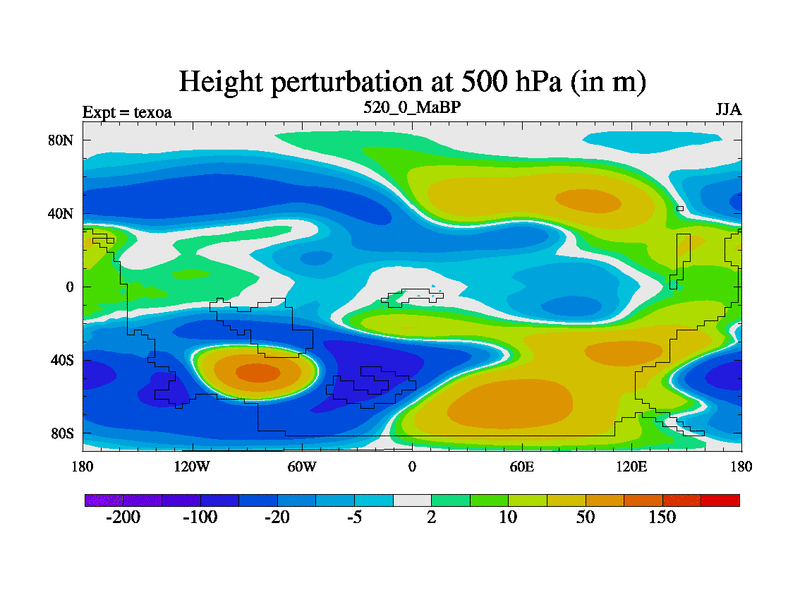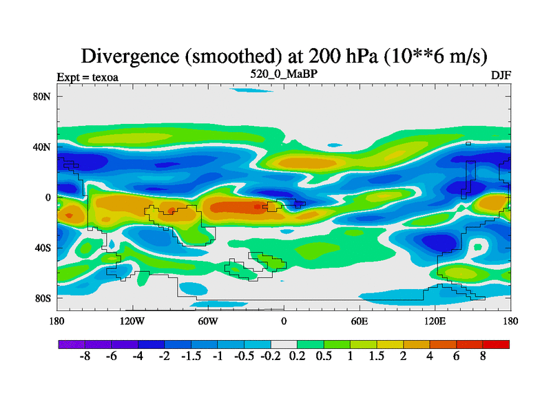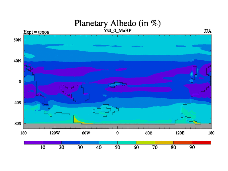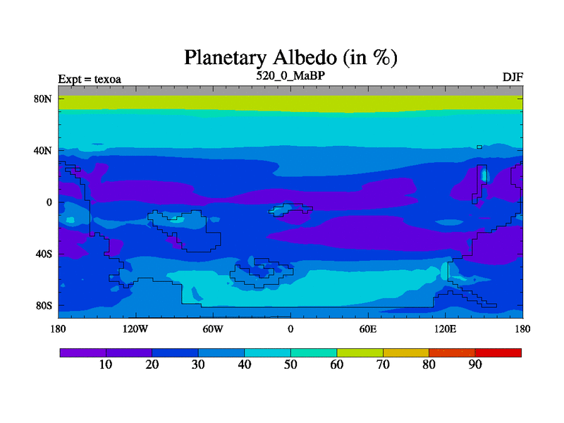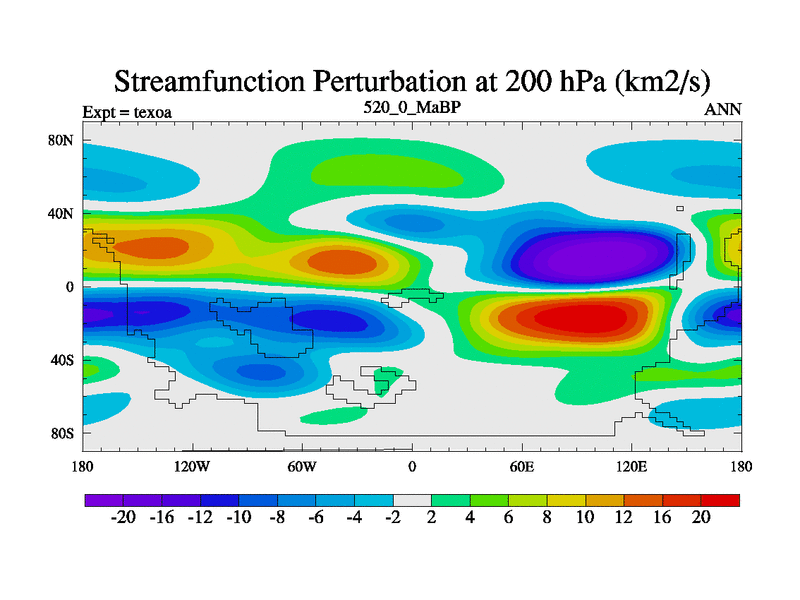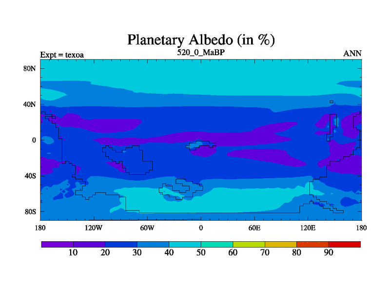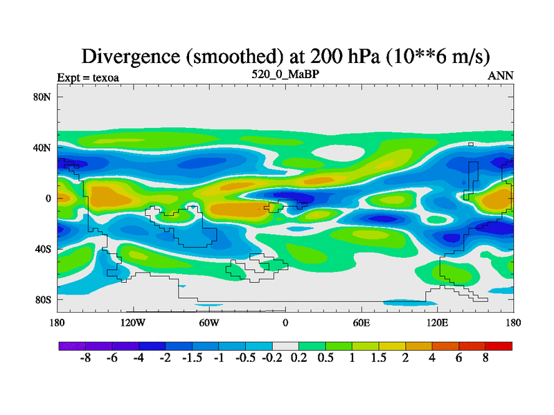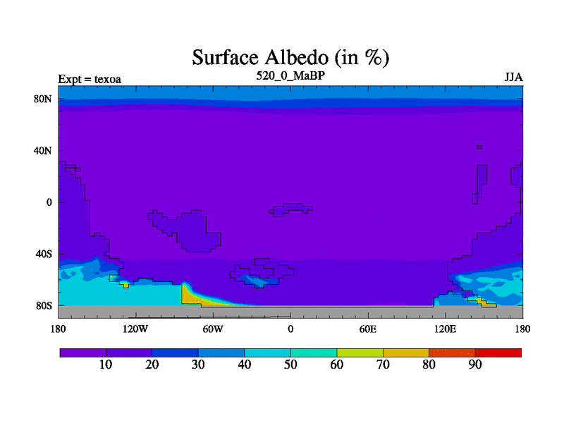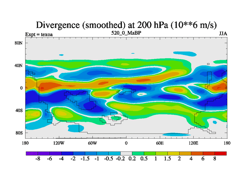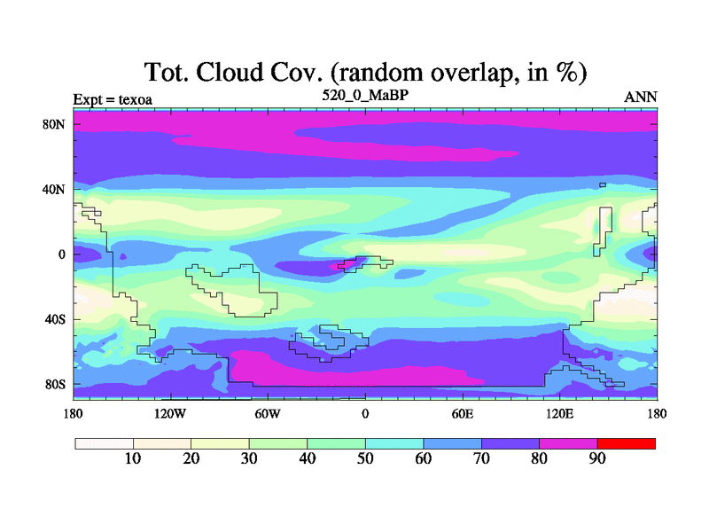 This is the 520.0 Ma simulation using the Scotese palaeogeographies. High output extension of the 5000 year spinup.