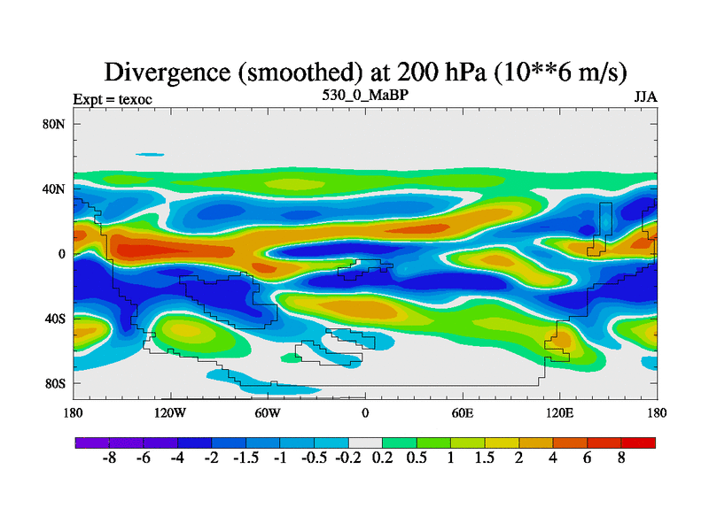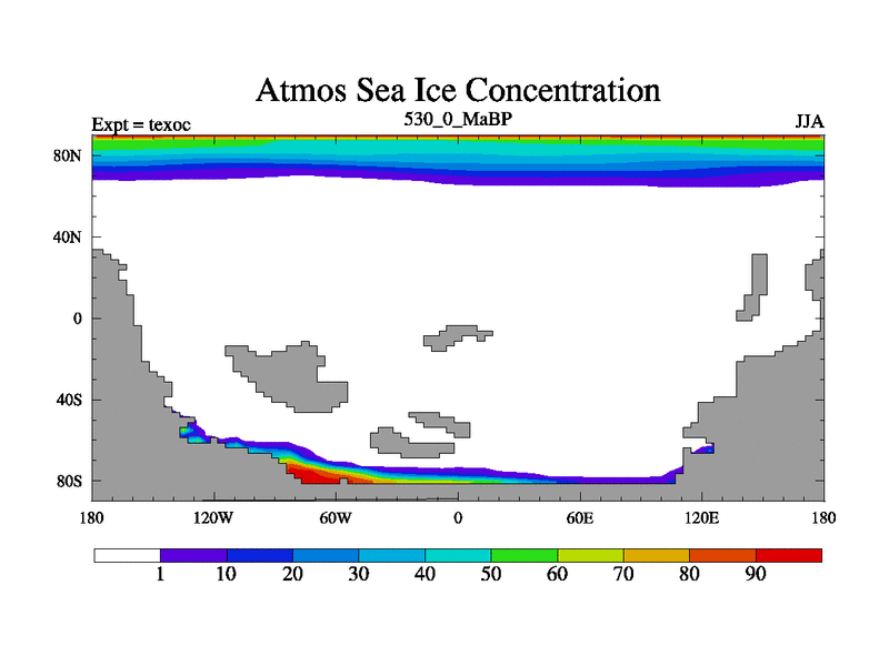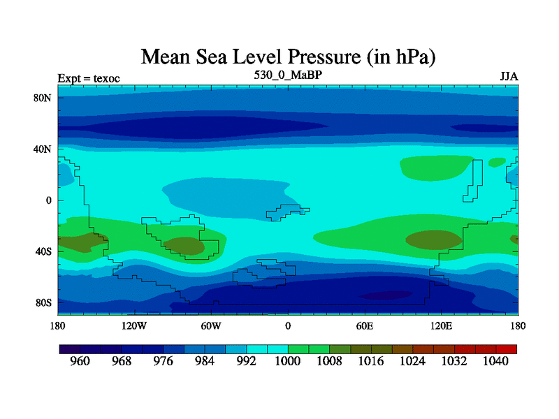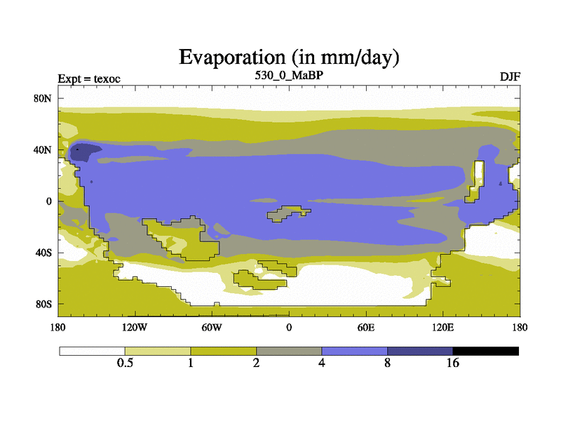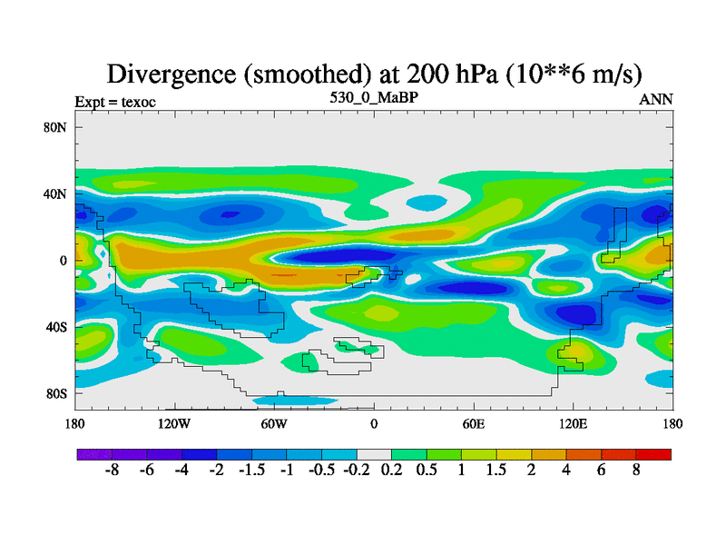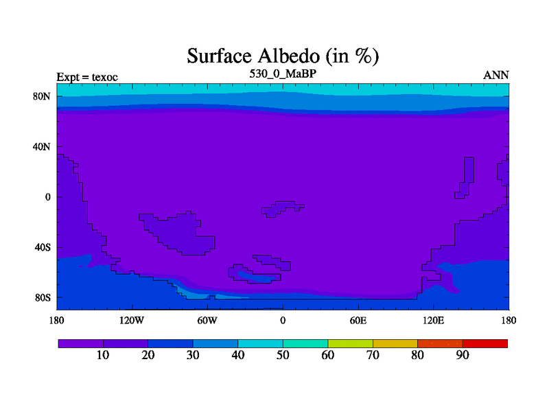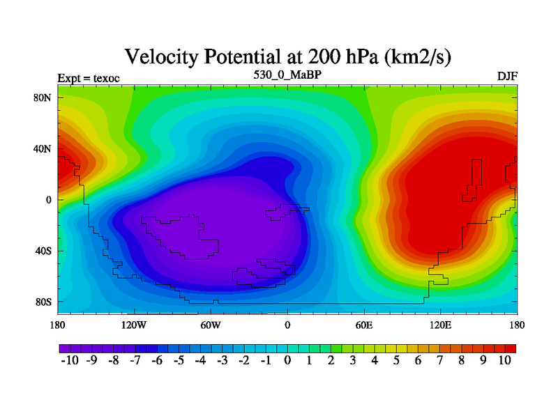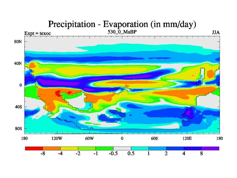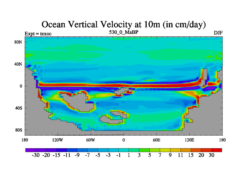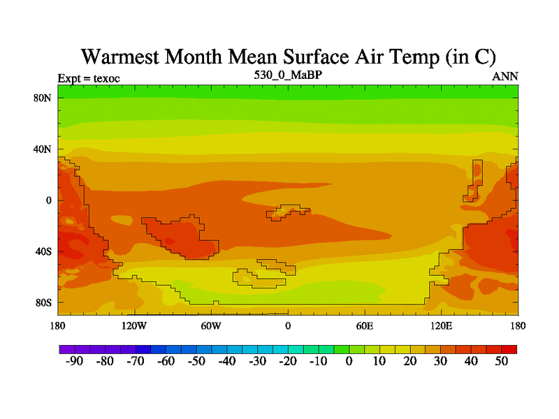 This is the 530.0 Ma simulation using the Scotese palaeogeographies. High output extension of the 5000 year spinup.