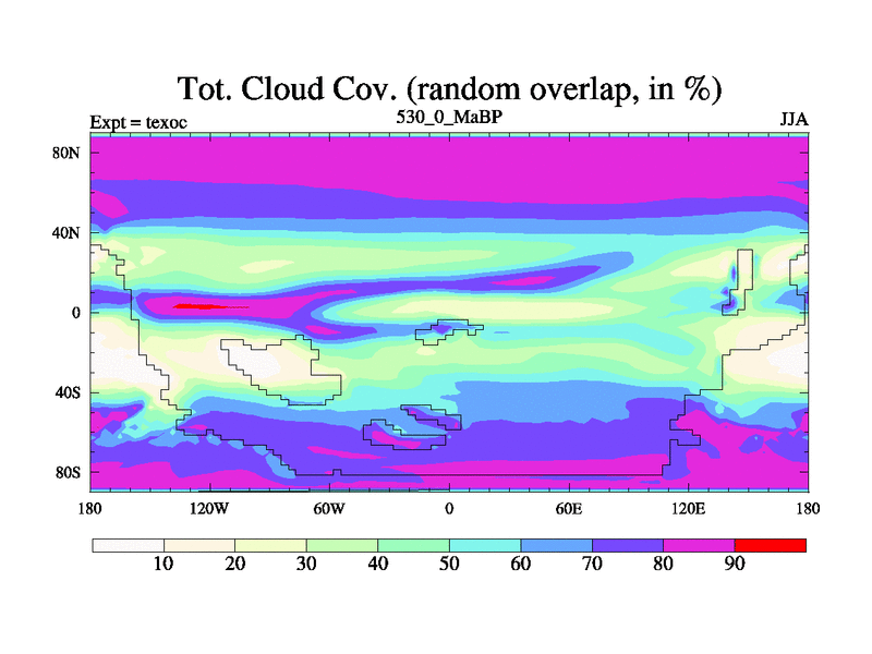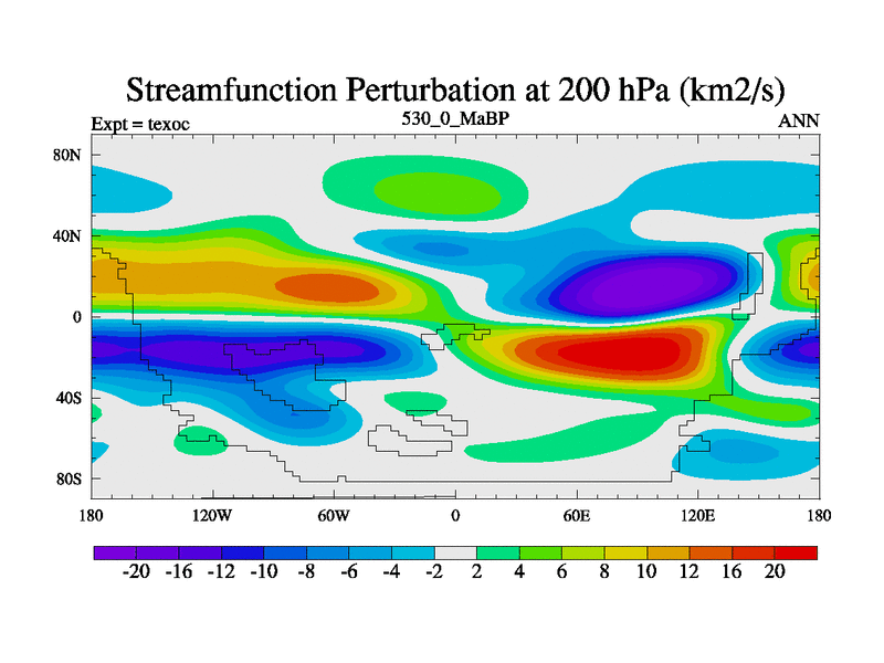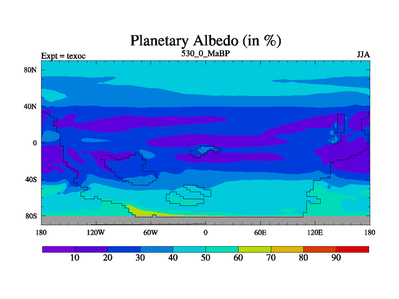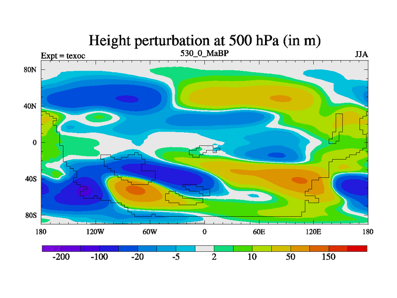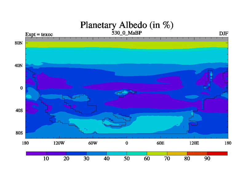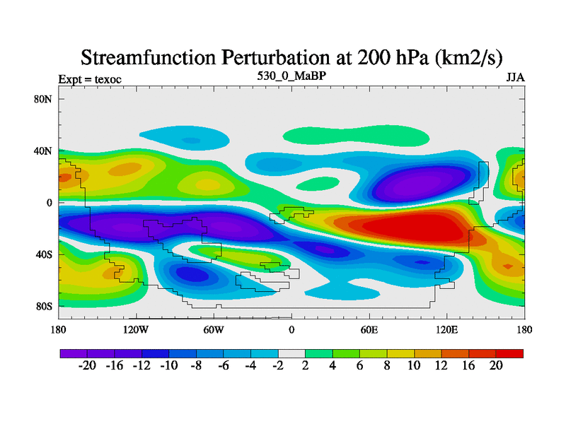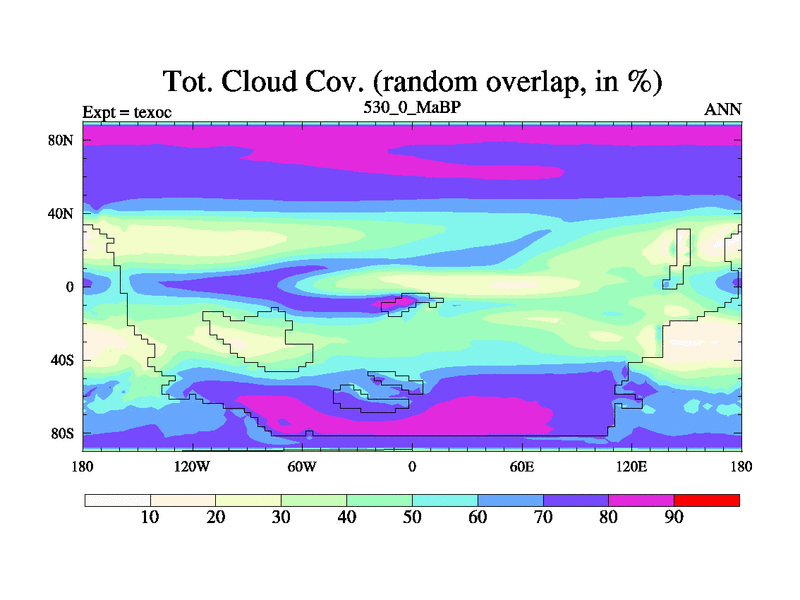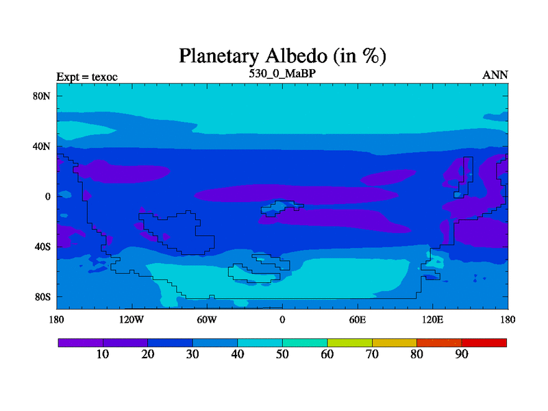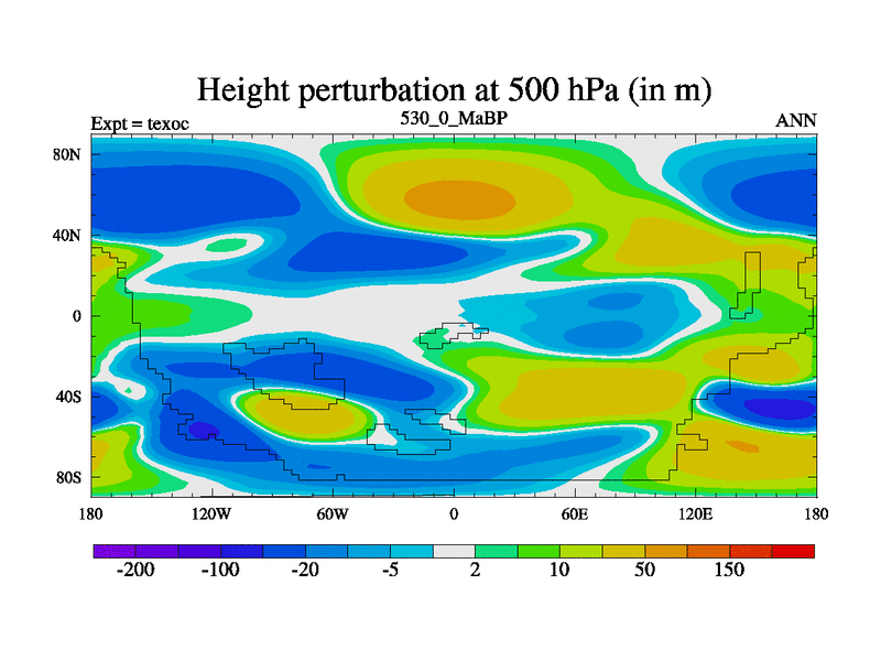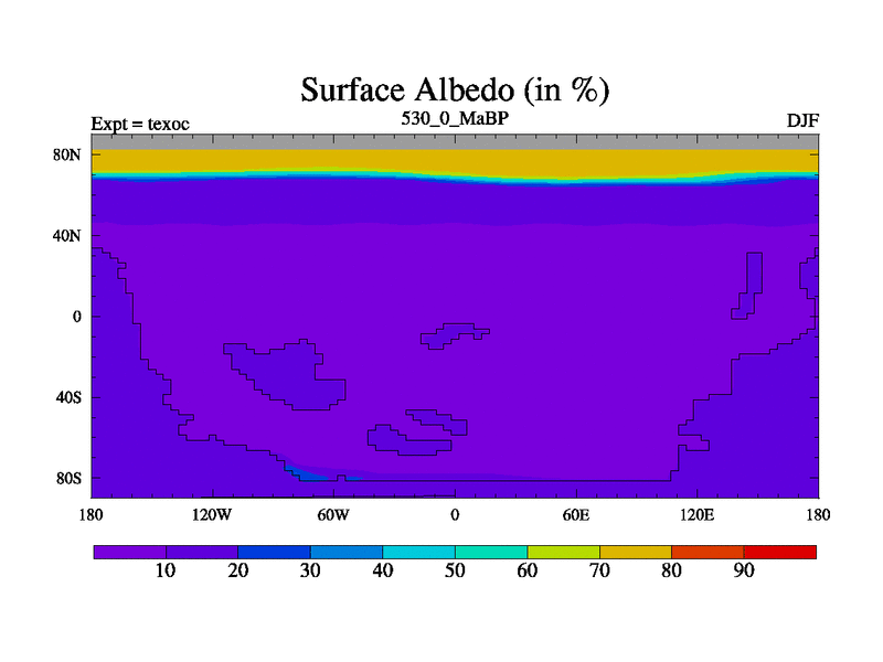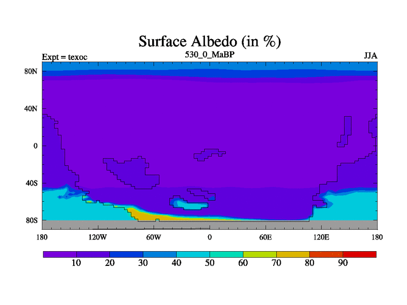 This is the 530.0 Ma simulation using the Scotese palaeogeographies. High output extension of the 5000 year spinup.