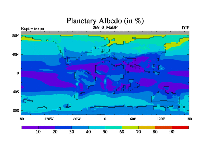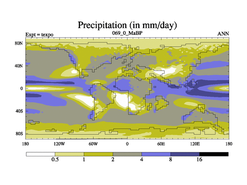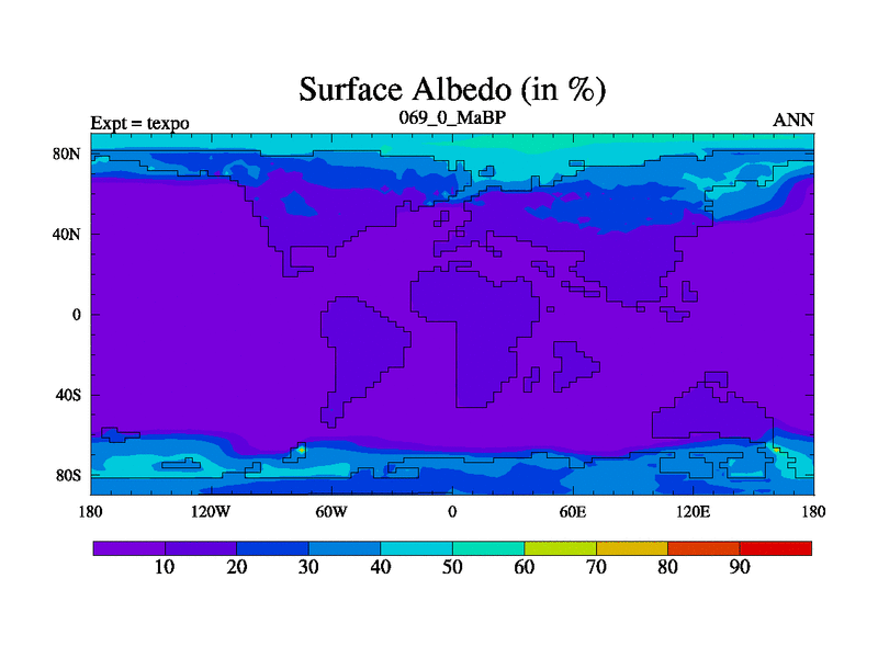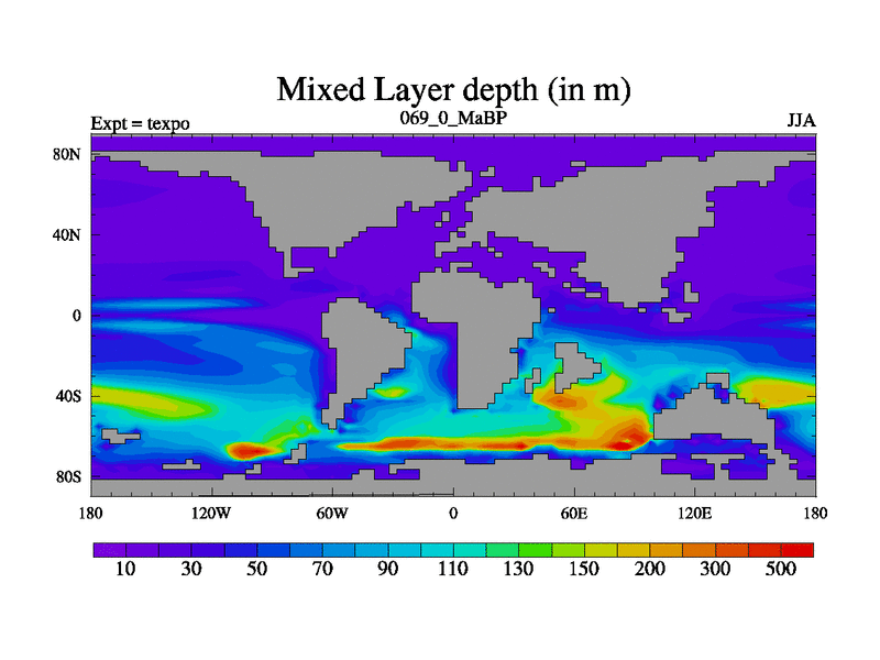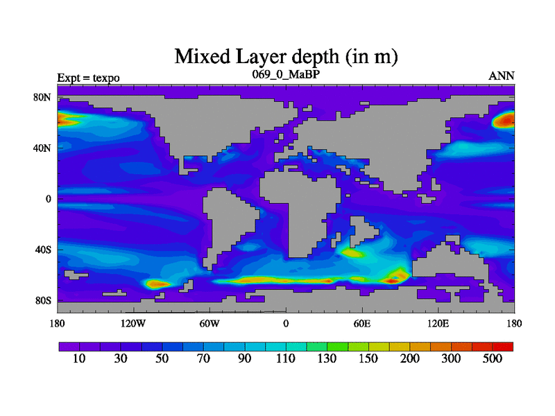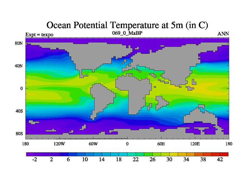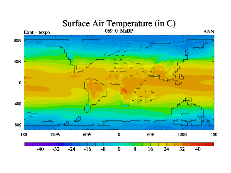 This is the 69.0 Ma simulation using the Scotese palaeogeographies.