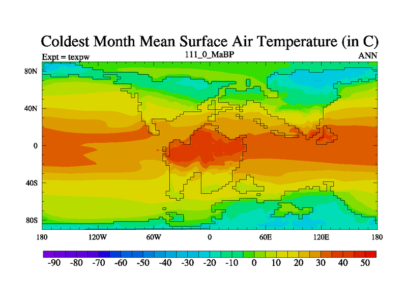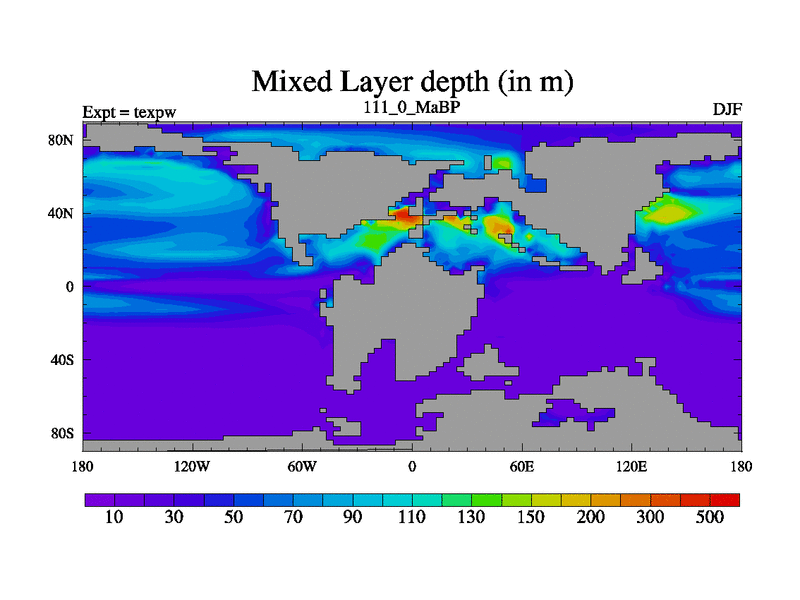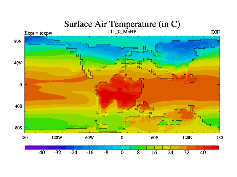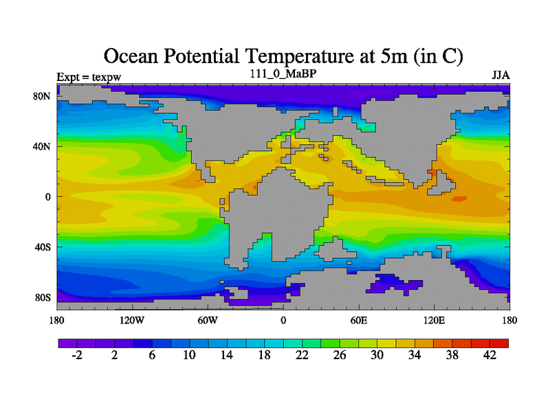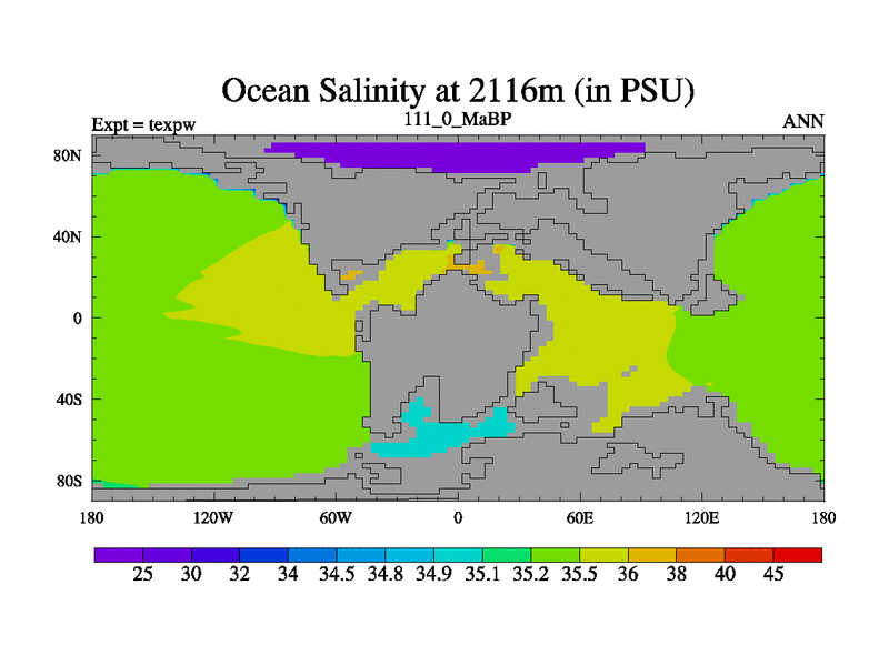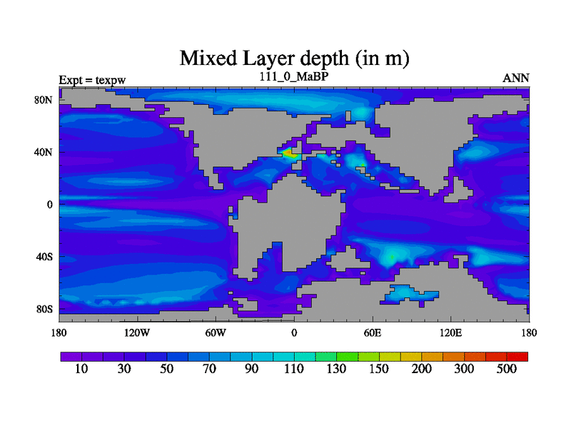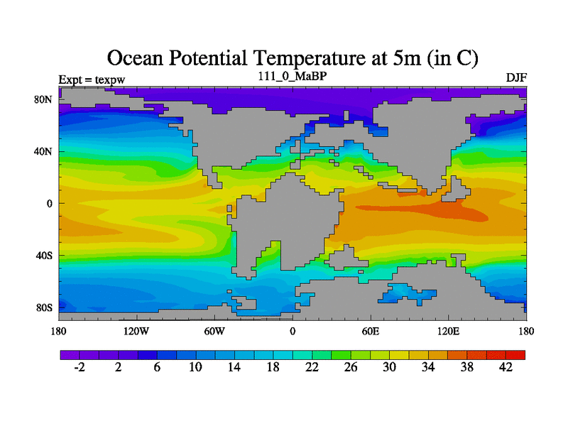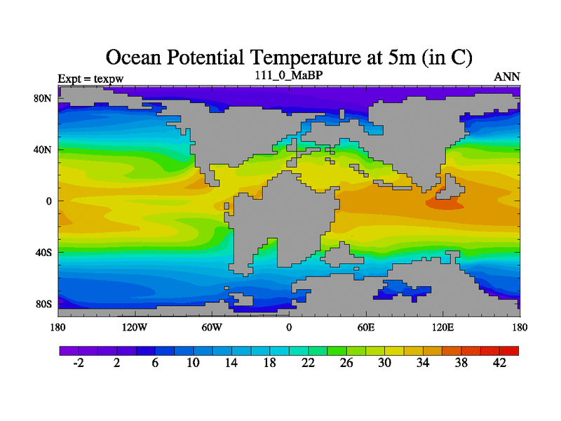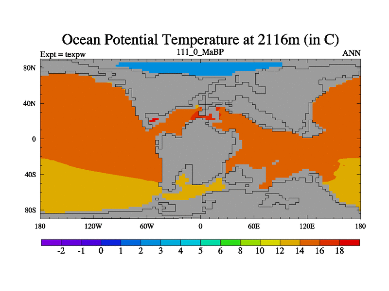 This is the 111.0 Ma simulation using the Scotese palaeogeographies.