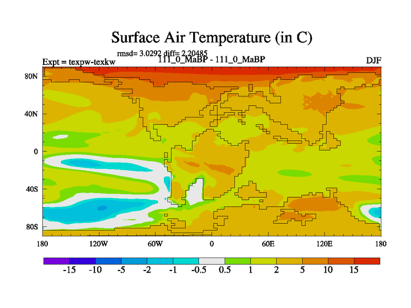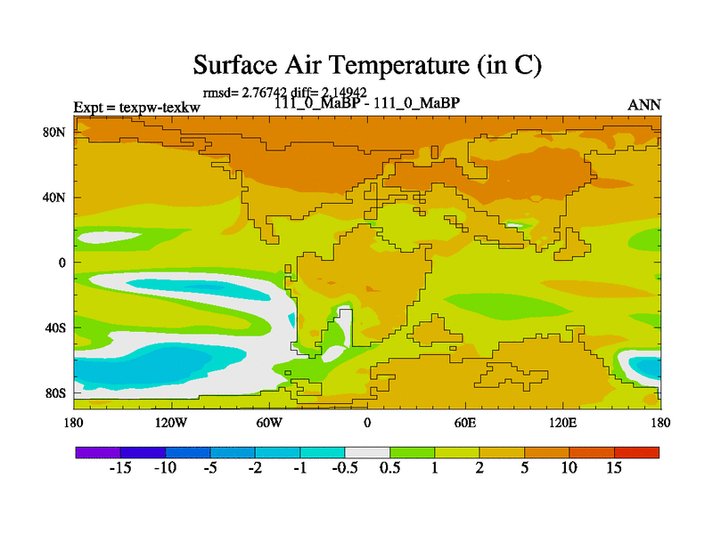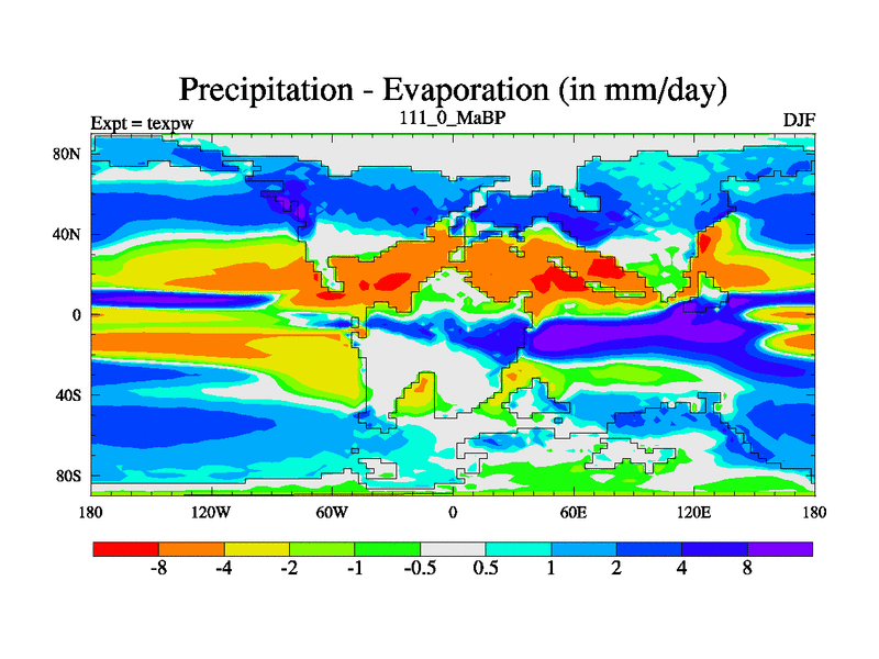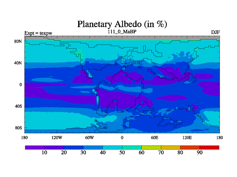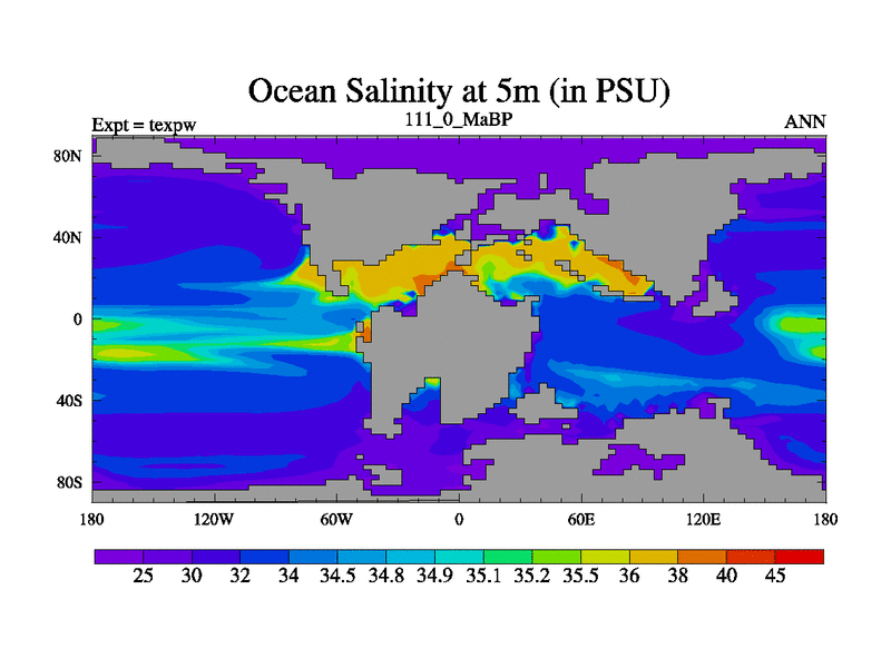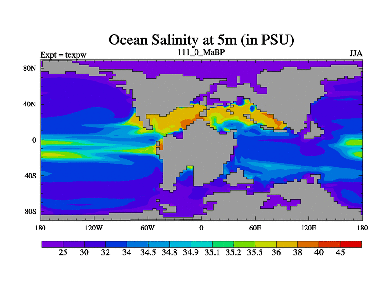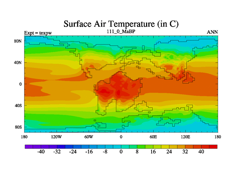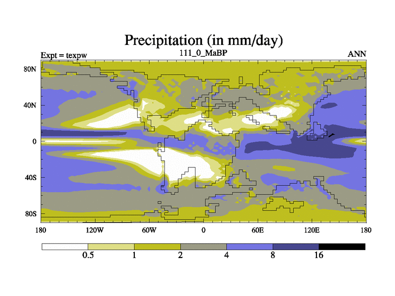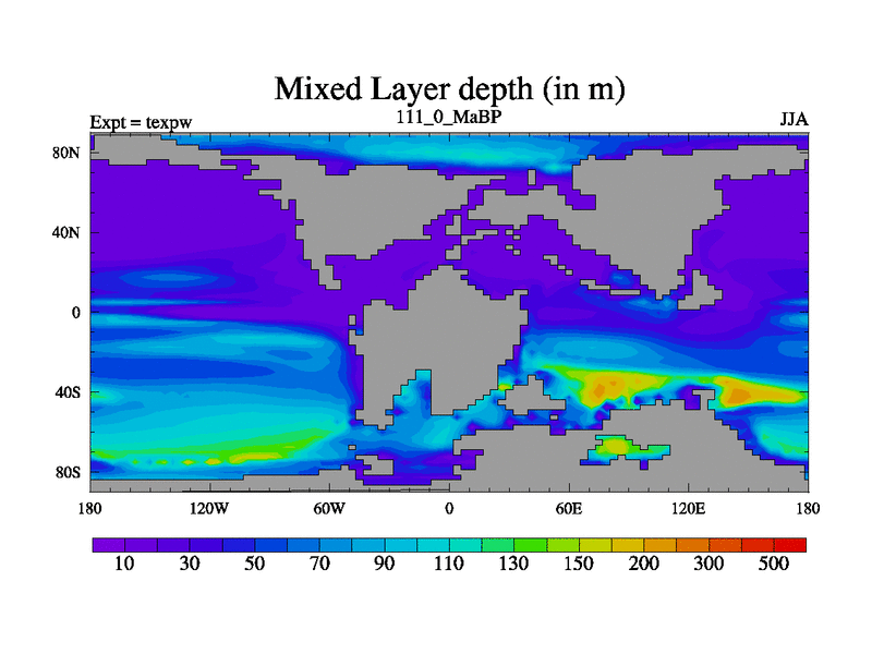 This is the 111.0 Ma simulation using the Scotese palaeogeographies.