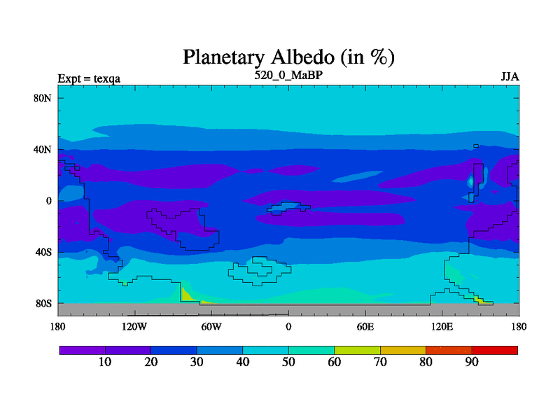 This is the 520.0 Ma simulation using the Scotese palaeogeographies.