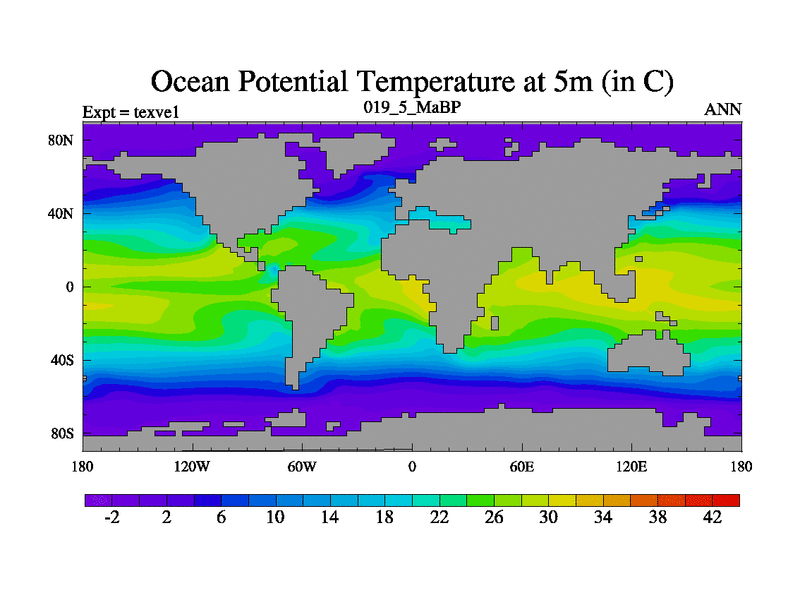 This is the 19.5 Ma simulation using the Scotese palaeogeographies.