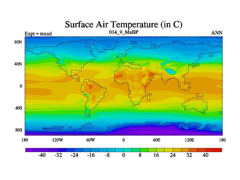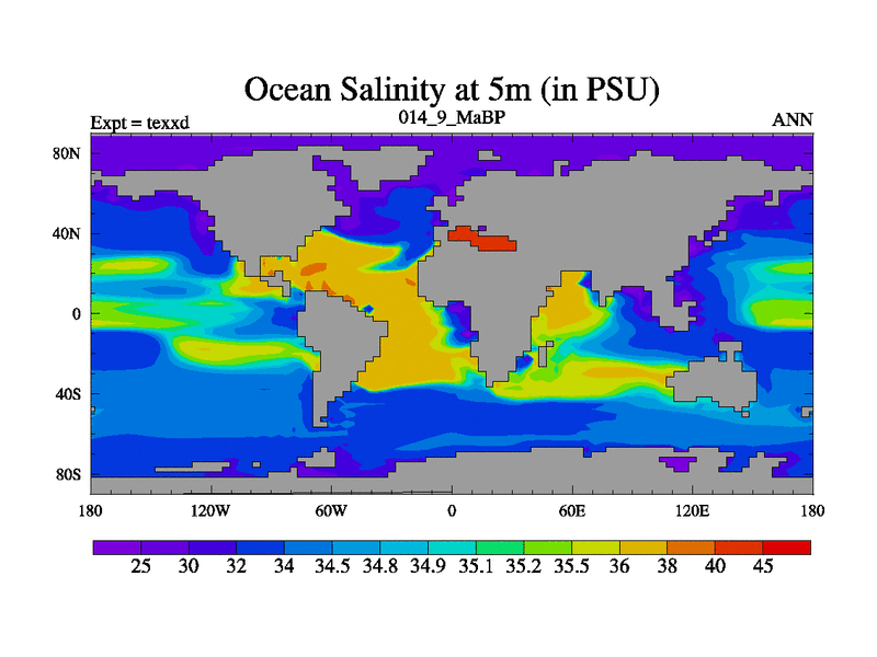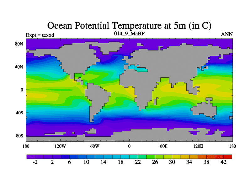 This is the 14.9 Ma simulation using the Scotese palaeogeographies.