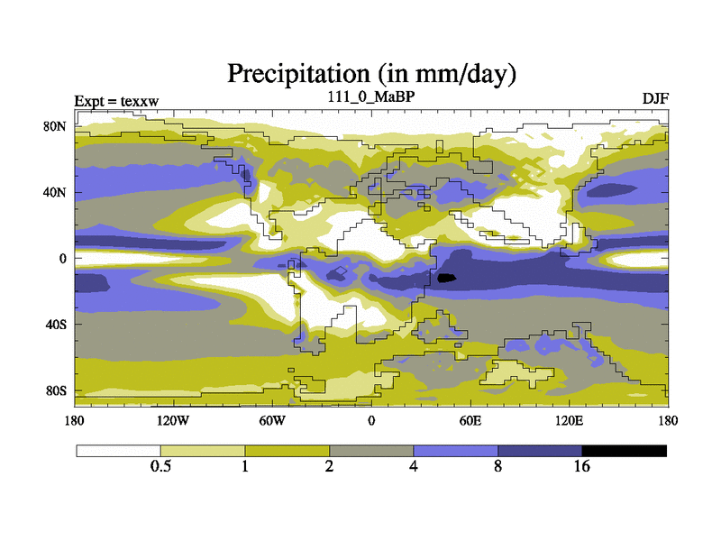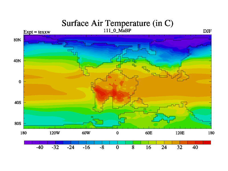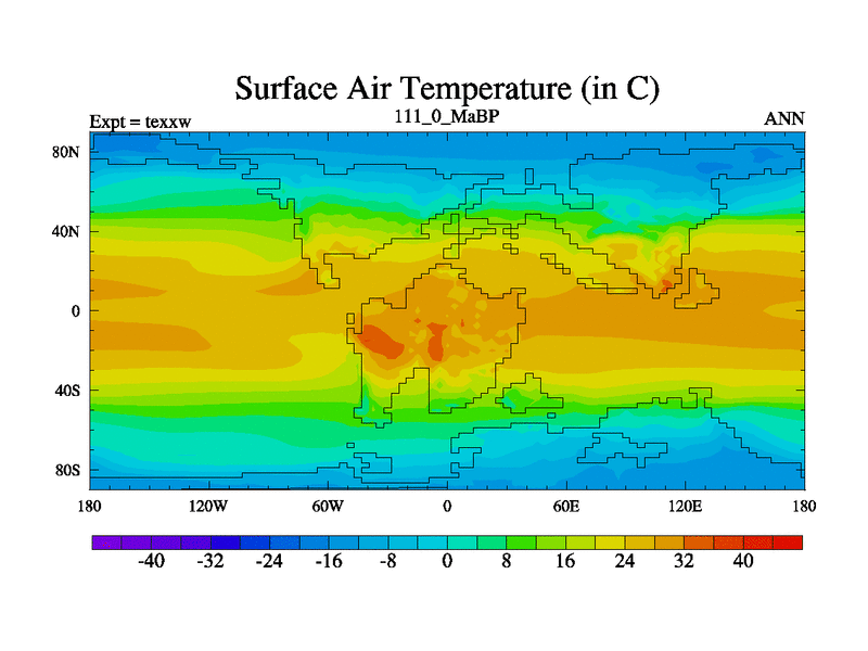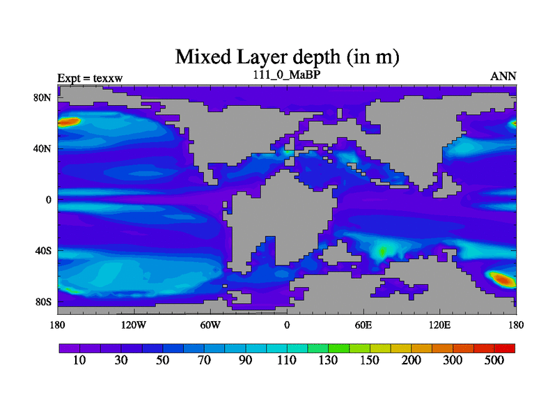This is the 111.0 Ma simulation using the Scotese palaeogeographies.
