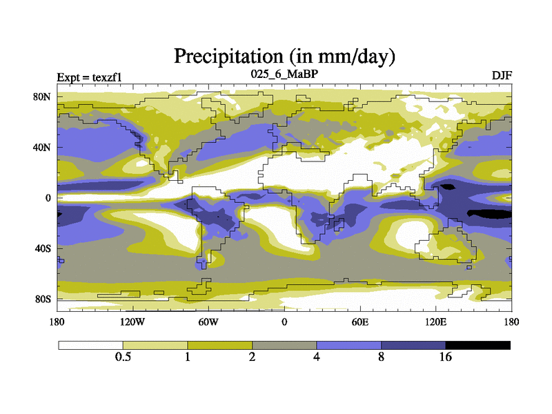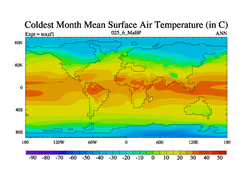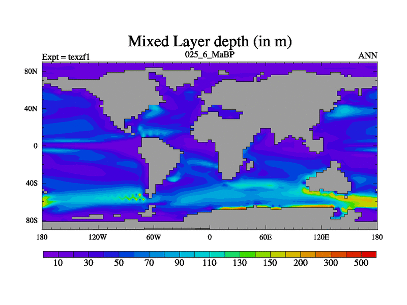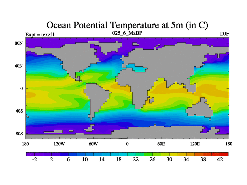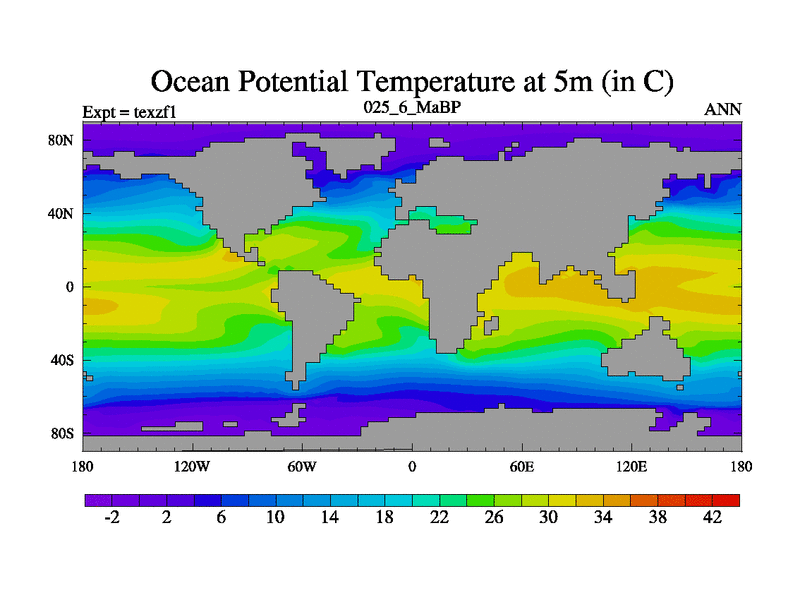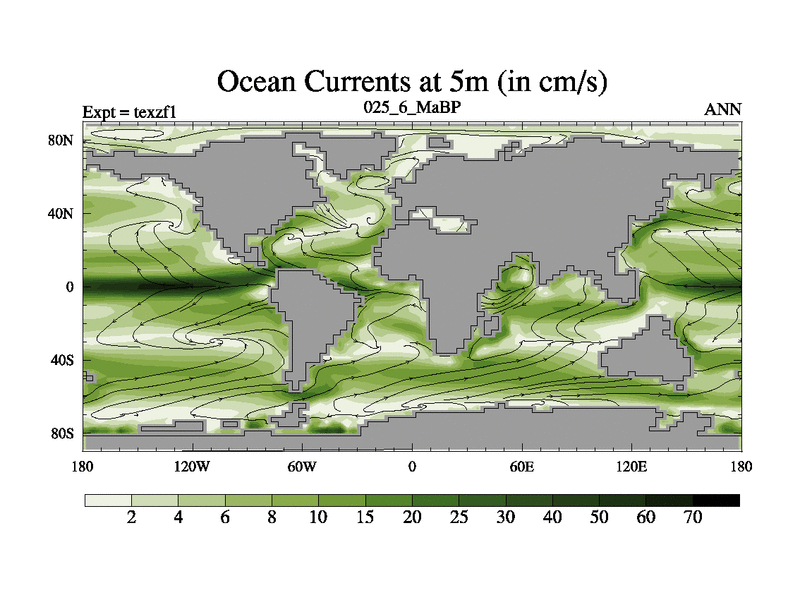 This is the 25.6 Ma simulation using the Scotese palaeogeographies. Extension of the tex[f..j] series.