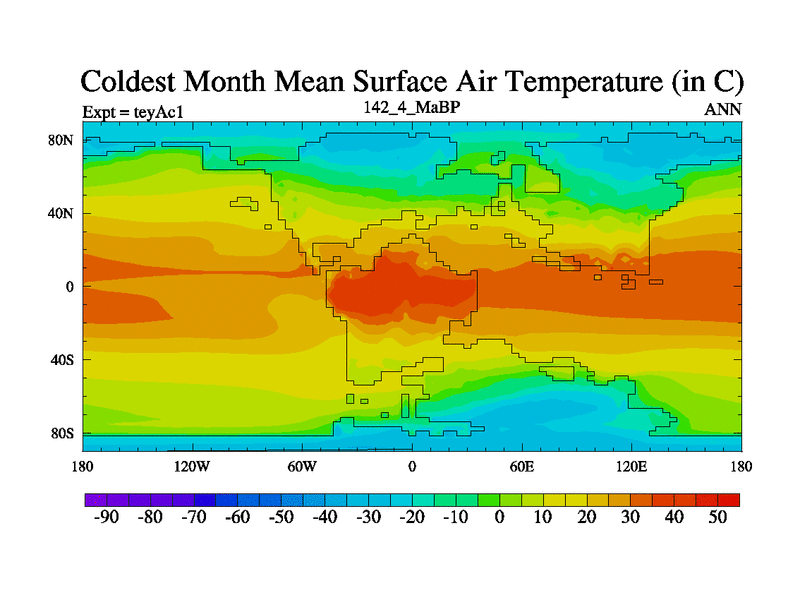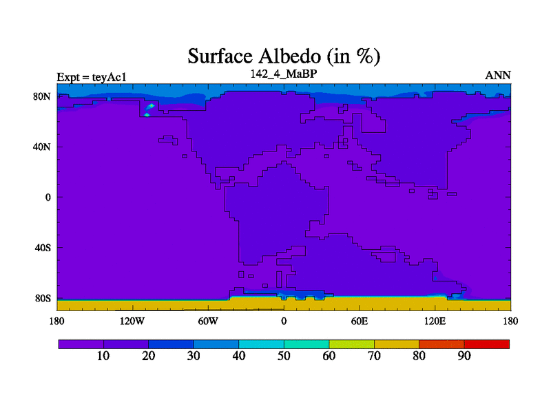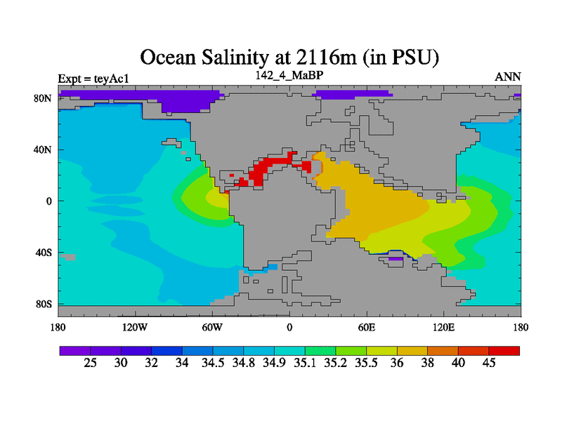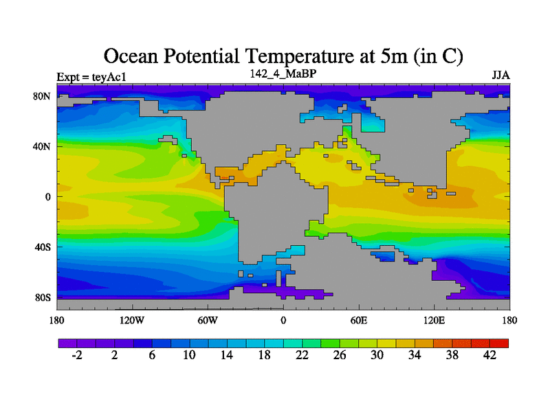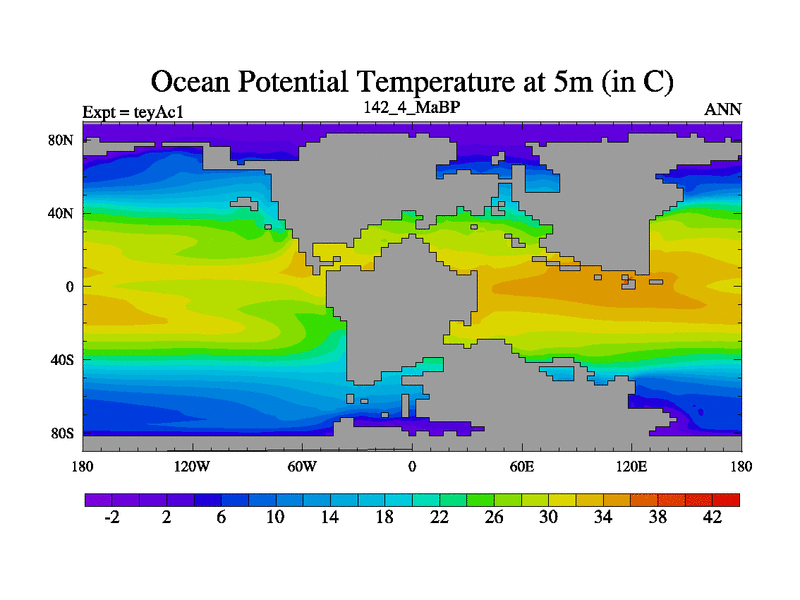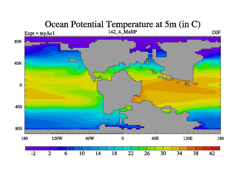 This is the 142.4 Ma simulation using the Scotese palaeogeographies. Extension of the tex[f..j] series.