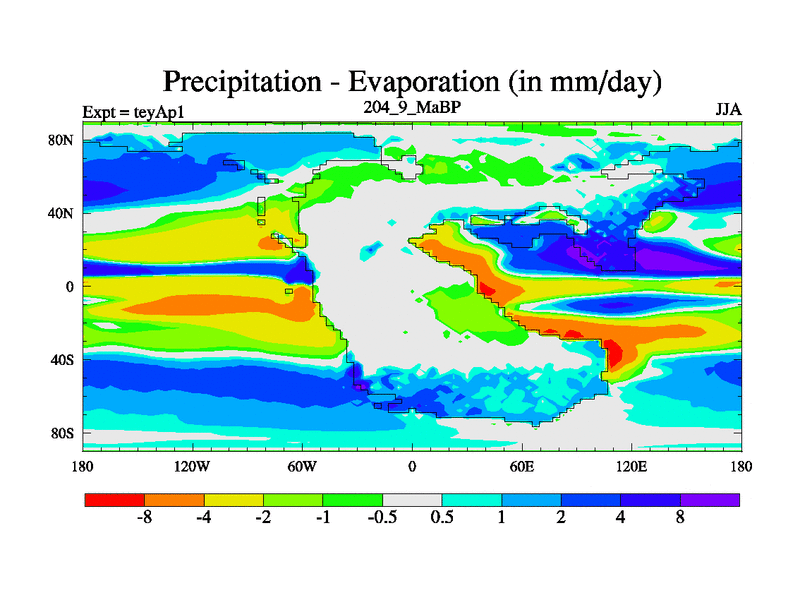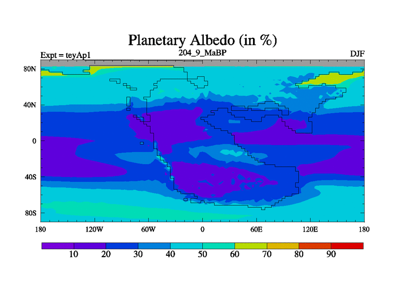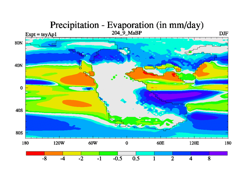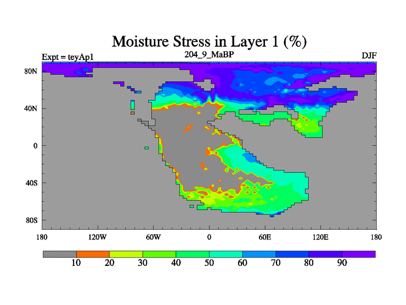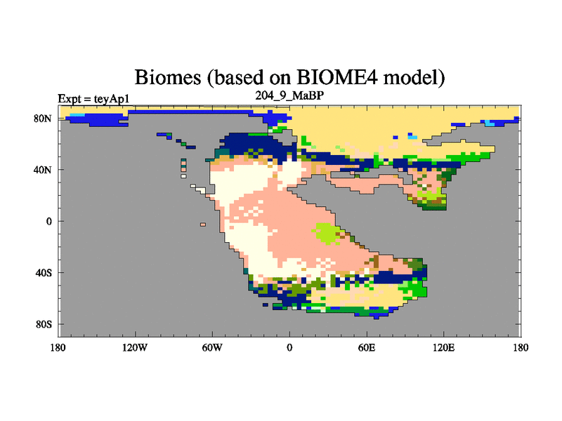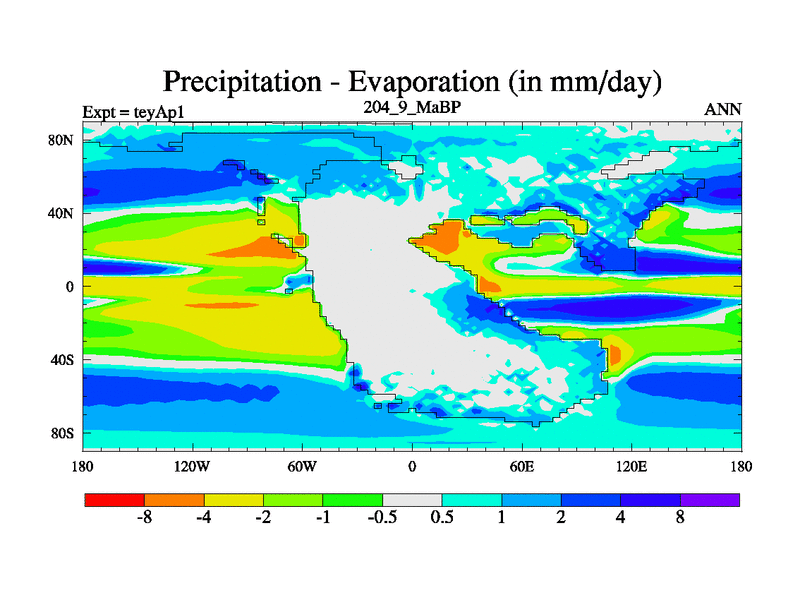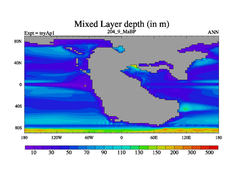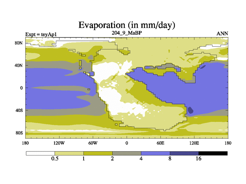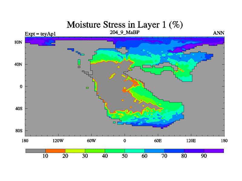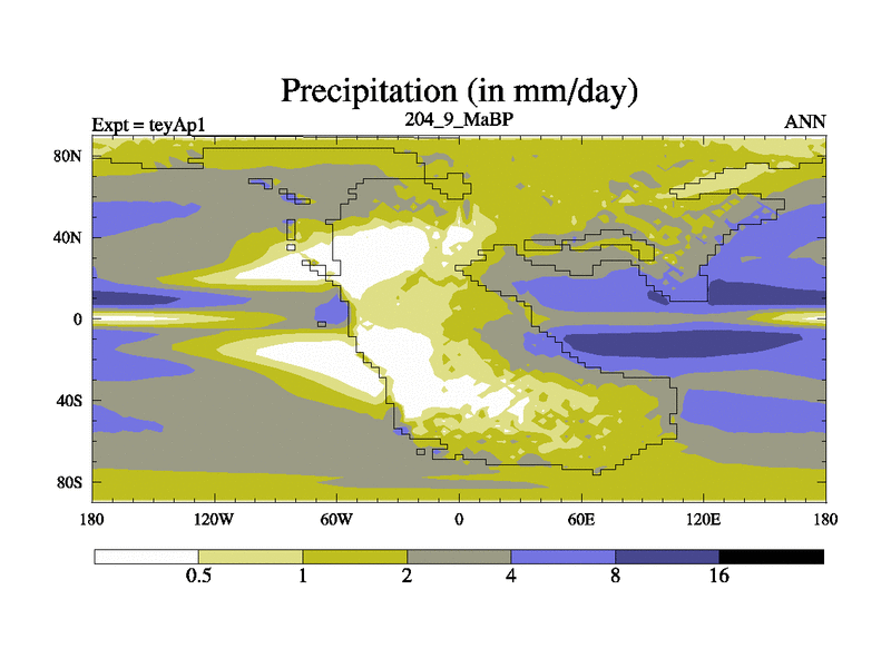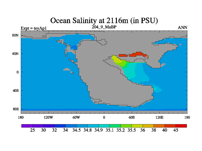 This is the 204.9 Ma simulation using the Scotese palaeogeographies. Extension of the tex[f..j] series.