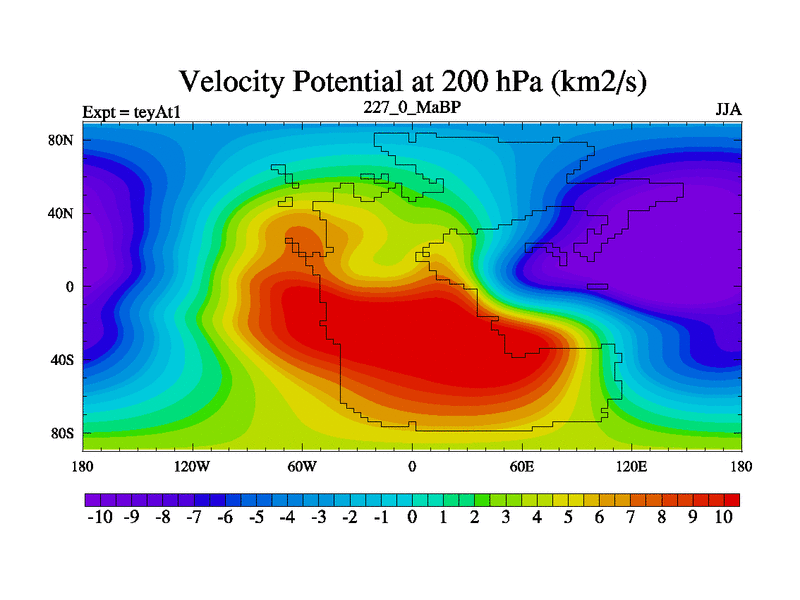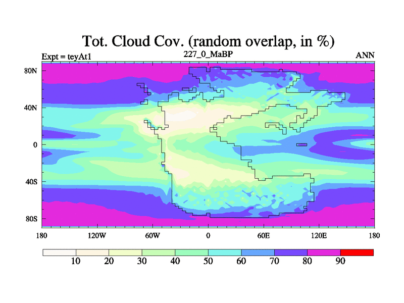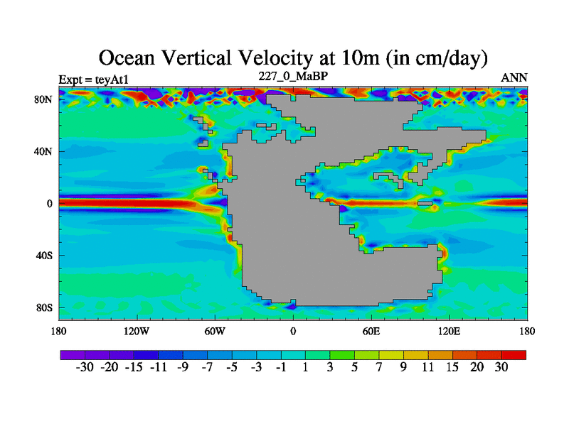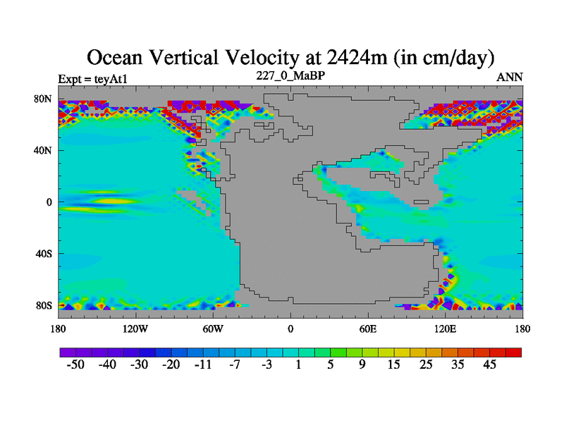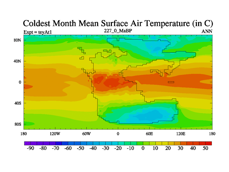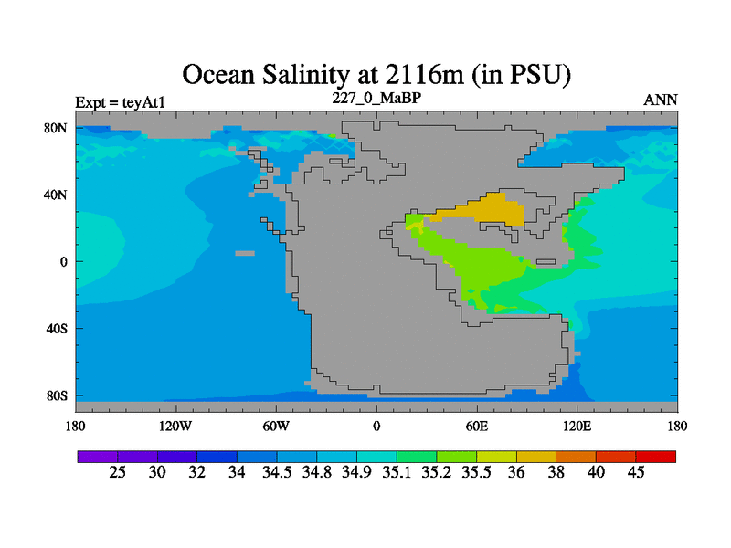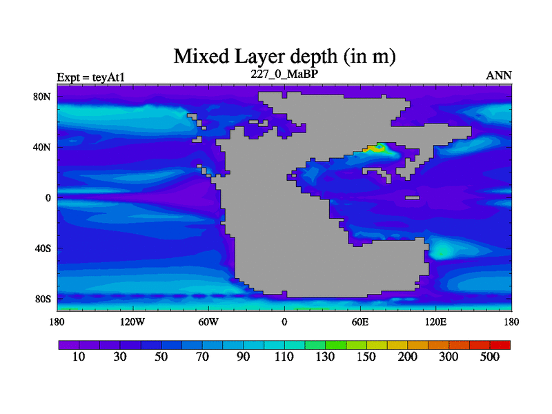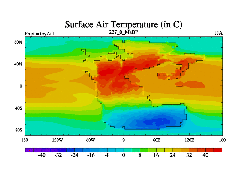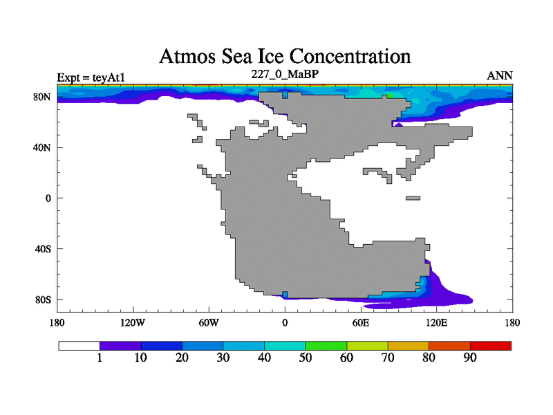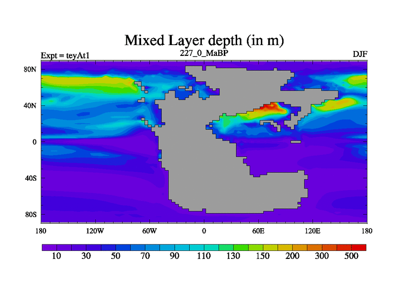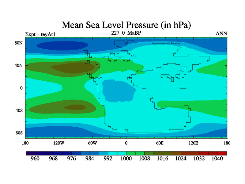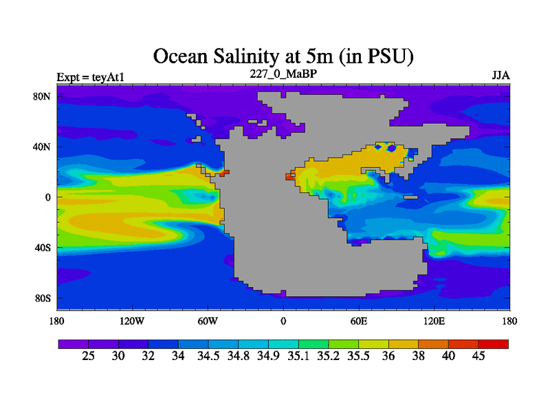 This is the 227.0 Ma simulation using the Scotese palaeogeographies. Extension of the tex[f..j] series.